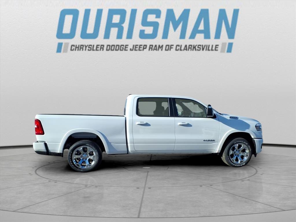 This NEW 2026 Bright White Clearcoat Ram 1500 Big Horn/Lone Star 4WD is well equipped and includes these features and benefits: Big Horn Level 2 Equipment Group (115V Auxiliary Power Outlet, 115V Auxiliary Rear Power Outlet, 12Touchscreen Display, 2nd Row in Floor Storage Bins, 3 Rear Seat Head Restraints, 4 Way Front Headrests, 400W Inverter, 4G LTE Wi-Fi Hot Spot, 9 Amplified Speakers with Subwoofer, Air Conditioning ATC with Dual Zone Control, Apple CarPlay, Auto Power-Folding Mirrors, Auto-Dimming Exterior Driver Mirror, Auto-Dimming Rear-View Mirror, Black Exterior Mirrors, Black Premium Power Mirrors, Body Color Fender Flares, Bucket Seats, Center Console Parts Module, Cluster 7.0TFT Color Display, Configurable Drive Mode, Connected Travel and Traffic Services, Connectivity - US/Canada, Convex Wide-Angle Exterior Mirror Insert, Deluxe Cloth Bucket Seats, Disassociated Touchscreen Display, Exterior Mirrors Courtesy Lamps, Exterior Mirrors with Heating Element, Exterior Mirrors with Supplemental Signals, Front Seat Back Map Pockets, Full Length Floor Console, Global Telematics Box Module, Glove Box Lamp, Google Android Auto, GPS Antenna Input, GPS Navigation, HD Radio, Heated Front Seats, Heated Steering Wheel, Integrated Center Stack Radio, Integrated Voice Command with Bluetooth, Leather Wrapped Steering Wheel, LED Dome Lamp with on/Off Switch, LED Footwell Lighting, Manual Adjust 4-Way Front Passenger Seat, Media Hub with 2 Charge Only USBs, Overhead LED Lamps, Power 2-Way Driver Lumbar Adjust, Power Adjust 8-Way Driver Seat, Power Adjustable Pedals, Premium Overhead Console, Radio: Uconnect 5 Navigation with 12.0Display, Rear 60/40 Folding Seat, Rear Center Armrest, Rear Power Sliding Window, Rear Window Defroster, Remote Tailgate Release, Security Alarm, SiriusXM Radio Service, SiriusXM with 360L, Steering Wheel Mounted Audio Controls, Sun Visors with Illuminated Vanity Mirrors, Universal Garage Door Opener, and USB Host Flip), Quick Order Package 21Z Big Horn, Sport Appearance Package (Black Interior Accents, Body Color Door Handles, Body Color Front Bumper, Body Color Rear Bumper with Step Pads, Body Color Tailgate Handle, Grille Surround 1 Body Color Texture 1 Black, and RAM Grille Badge - Chrome), Towing Technology Group (Trailer Hitch Line-Up Assist), Trailer Tow Group (Accent Color Tailgate Handle, Black Trailer Tow Power Mirrors, Manual Folding Exterior Mirrors, Manuarl Telescoping Mirrors, Mirror Clearance/Running Lights, Power-Adjus