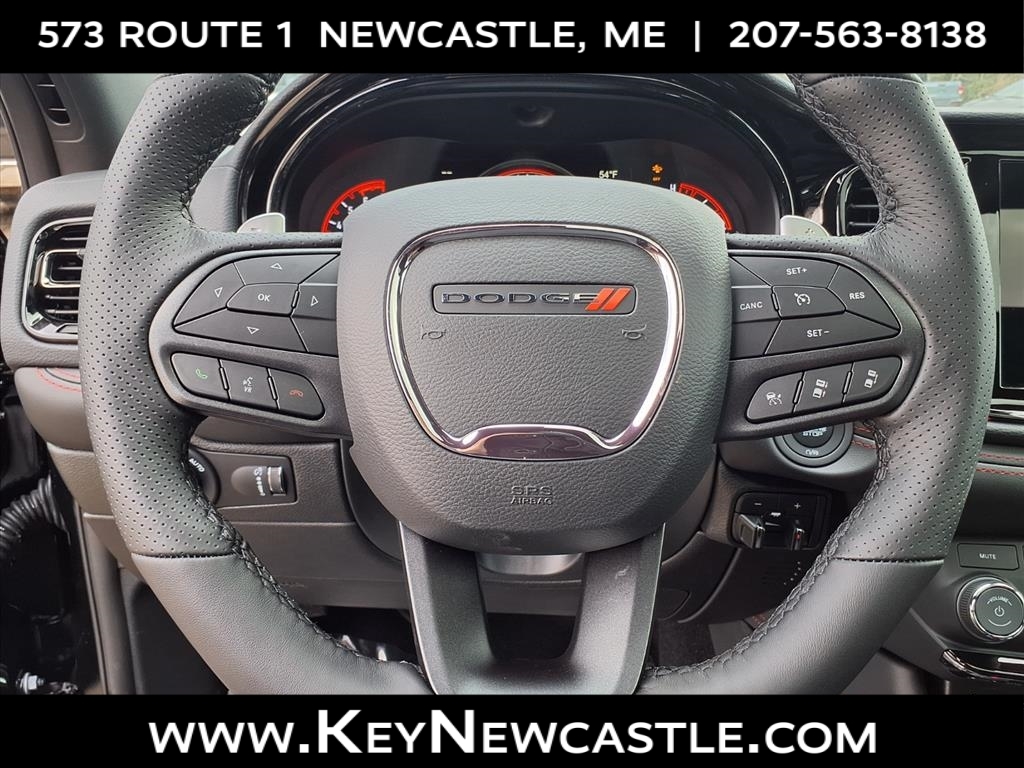 2026 Dodge Durango GT HEMI DB Black Crystal Clearcoat We believe there is more to buying a vehicle than worrying about the price. For that reason, Key Auto has simplified that process for our customers. When we price a vehicle, we take the following into consideration: 1) market conditions, 2) what the area dealers are selling them for, 3) NADA retail value. This way, when you leave a Key Auto Dealership, youre confident youve received the absolute best deal. Please call 207-563-8138 or come to Key Chrysler Dodge Jeep Ram of Newcastle today. AWD. Key Chrysler Dodge Jeep Ram Newcastle is proud to present you with another True Market Priced Vehicle. This 2026 Dodge Durango GT HEMI is loaded with the following Factory Options: AWD Blacktop Package (Gloss Black Badges), Quick Order Package 22T GT Plus (Blind Spot with Trailer Detection, Class IV Receiver Hitch, Exterior Mirrors with Heating Element, Exterior Mirrors with Memory, Exterior Mirrors with Supplemental Signals, Gloss Black Exterior Mirrors, LED Auxiliary Low Beam and Turn Signal, Power 6x9 Multi-Function Foldaway Mirrors, Red Accent Stitching, and Ventilated Front Seats), AWD, 3.09 Rear Axle Ratio, 3rd row seats: split-bench, 4-Wheel Disc Brakes, 9 Speakers, ABS brakes, Air Conditioning, Alloy wheels, AM/FM radio: SiriusXM w/360L, Apple CarPlay/Android Auto, Auto-dimming Rear-View mirror, Auto-leveling suspension, Automatic temperature control, Brake assist, Bumpers: body-color, Cloth Bucket Seats with Shift Insert, Compass, Delay-off headlights, Driver door bin, Driver vanity mirror, Dual front impact airbags, Dual front side impact airbags, Electronic Stability Control, Emergency communication system: Dodge Connect, Four wheel independent suspension, Front anti-roll bar, Front Bucket Seats, Front Center Armrest w/Storage, Front dual zone A/C, Front License Plate Bracket, Front reading lights, Fully automatic headlights, Garage door transmitter, Heated door mirrors, Heated Front seats, Heated steering wheel, Illuminated entry, Knee airbag, Leather steering wheel, Low tire pressure warning, Navigation System, Occupant sensing airbag, Outside temperature display, Overhead airbag, Overhead console, Panic alarm, ParkView Rear Back-Up Camera, Passenger door bin, Passenger vanity mirror, Power door mirrors, Power driver seat, Power Liftgate, Power steering, Power windows, Radio data system, Radio: Uconnect 5 Nav with 10.1Display, Rain sensing wipers, Rear air conditioning, Rear anti-roll bar, Rear Load