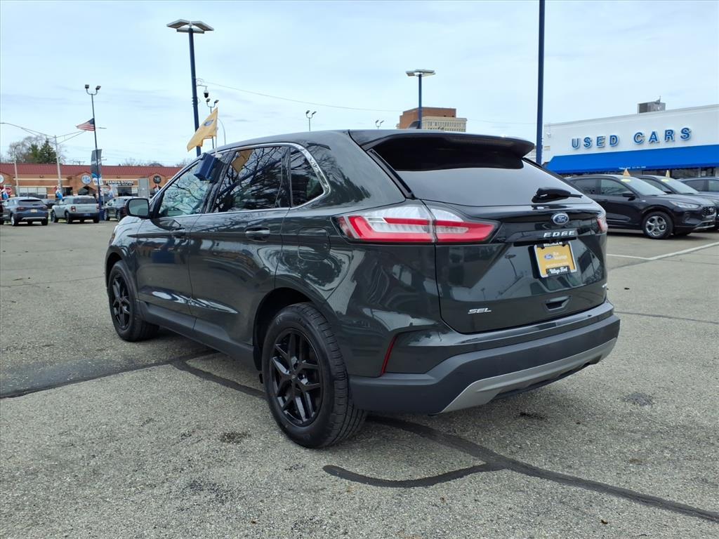 This vehicle is a 2023 Ford Edge SEL, with a low mileage of 16,193 miles. It has an impressive all wheel drive, 2.0 liter EcoBoost Turbo I4 250hp 280 lb-ft engine, and direct injection. The exterior is a striking forged green l9, while the interior features an ebony ve finish. This car has a fuel economy of 20 mpg in the city and 28 mpg on the highway, making it an efficient choice for drivers. It also comes with a crash test rating of 5 out of 5 stars, as well as many features such as touch screen display, Bluetooth audio connection, blind spot sensor, hill start assist, on demand four wheel drive, and leather seats. With its carfax report available, this car is sure to be a reliable and stylish choice for any driver. Contact Details: Village Ford, 23535 Michigan Ave, Dearborn, MI, 48124, internetleads@dealermail.com, (313) 565-3900.