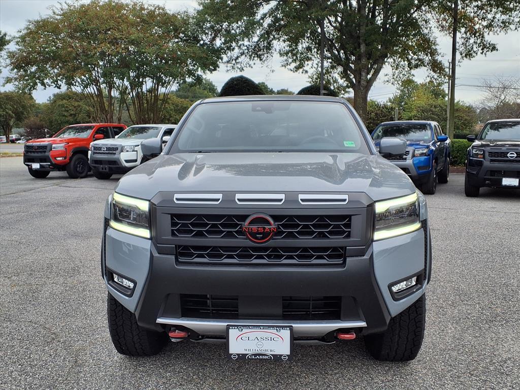 Recent Arrival! 2026 Nissan Frontier PRO-4X Boulder Gray Pearl 4WD 3.8L DI DOHC 24V V6 9-Speed Automatic with Overdrive 4WD, Fully Serviced To Current Date and Mileage, Service Records Available, Extended Service Programs Available, USB. Check out all these great options PRO-4X Convenience Package (Heated Steering Wheel, Intelligent Around View Monitor (I-AVM), and Wireless Charging for Personal Devices), 4WD, 17Painted Alloy Wheels, 3.692 Axle Ratio, 4-Wheel Disc Brakes, 6 Speakers, ABS brakes, Air Conditioning, Alloy wheels, AM/FM radio: SiriusXM, Anti-whiplash front head restraints, Auto High-beam Headlights, Automatic temperature control, Blind Spot Warning, Brake assist, Bumpers: body-color, Delay-off headlights, Driver door bin, Driver vanity mirror, Dual front impact airbags, Dual front side impact airbags, Electronic Stability Control, Electronic Tailgate Lock, Emergency communication system, Essentials Kit, Front anti-roll bar, Front Bucket Seats, Front Center Armrest, Front dual zone A/C, Front fog lights, Front reading lights, Front wheel independent suspension, Fully automatic headlights, Heated Front Bucket Seats, Illuminated entry, Knee airbag, Leather steering wheel, Low tire pressure warning, Mud Flaps, Occupant sensing airbag, Off-Road Style Step Rails, Overhead airbag, Overhead console, Panic alarm, Passenger door bin, Passenger vanity mirror, Power door mirrors, Power driver seat, Power passenger seat, Power steering, Power windows, Premium Paint, PRO Embroidered Premium Cloth Seat Trim, Radio data system, Radio: SXM/AM/FM/AUX/USB Audio System, Rear anti-roll bar, Rear seat center armrest, Rear side impact airbag, Rear step bumper, Remote keyless entry, Security system, Speed control, Speed-sensing steering, Split folding rear seat, Steering wheel mounted audio controls, Tachometer, Telescoping steering wheel, Tilt steering wheel, Traction control, Trip computer, Variably intermittent wipers, Voltmeter, and Wireless Apple CarPlay/Wireless Android Auto. Price does NOT include Tax, Title, License or Doc Fees. Price includes: $2000 - Nissan Customer Cash. Exp. 11/03/2025