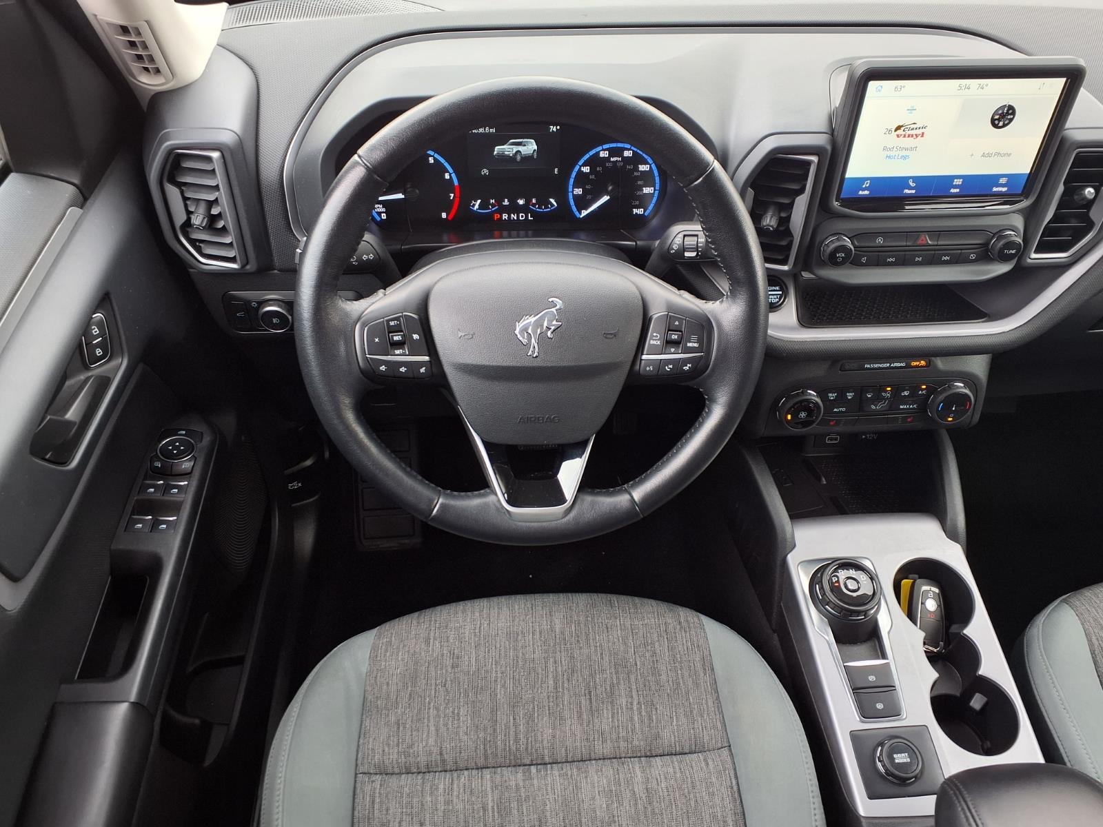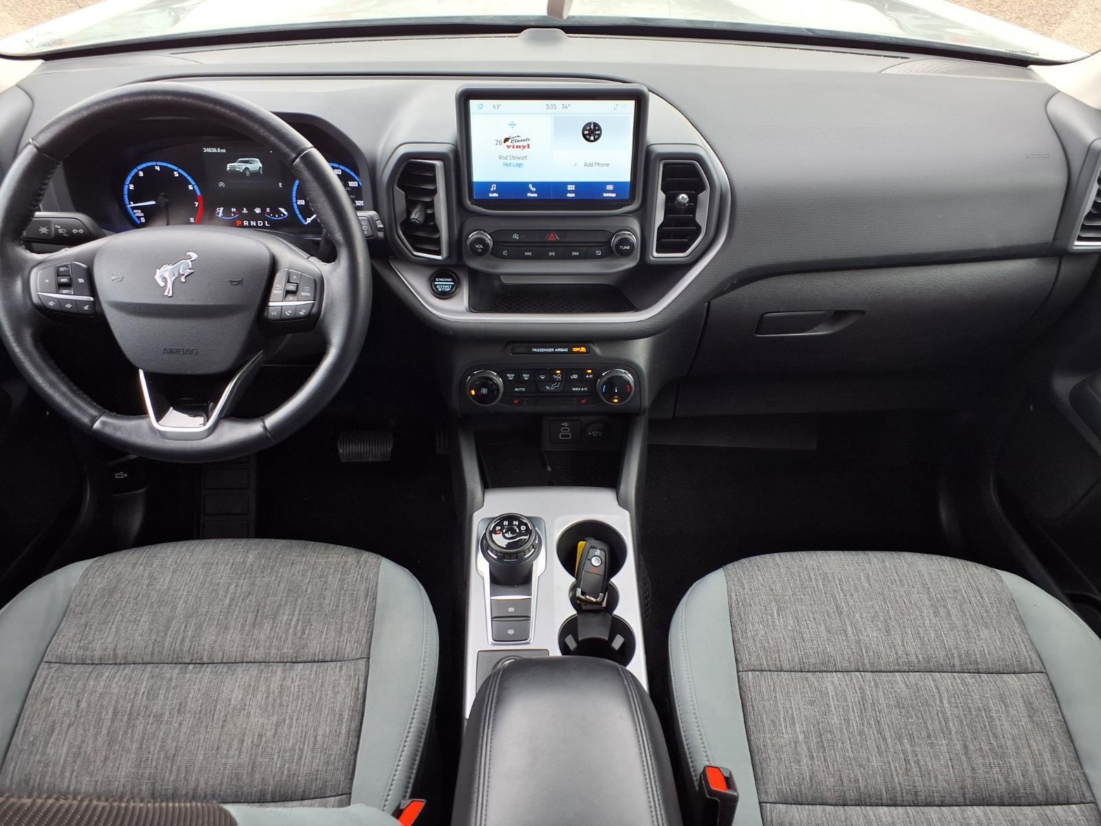 4 NEW TIRES!! CONVENIENCE PACKAGE $1,785.00 SUPPLEMENTAL PTC HEATER .REAR PARKING SENSORS .WIRELESS CHARGING PAD .HEATED FRONT SEATS .SECURICODE KEYLESS ENTRY PAD .LED FOG LAMPS .UNIVERSAL GARAGE DOOR OPENER .8-WAY POWER DRIVERS SEAT The Ford Bronco Sport Big Bend is a 2023 model car that has been driven 34,617 miles and is certified pre-owned. It features an all wheel drive, 1.5 liter EcoBoost Turbo I3 181hp 190 lb-ft engine with direct injection, and a cactus gray (ne) exterior. The vehicle has a fuel economy of 25 mpg in the city and 28 mpg on the highway, as well as an ebony (qh) interior. It also has a crash test rating of 5 out of 5 stars and comes with many features such as touch screen display, Bluetooth audio connection, blind spot sensor, hill start assist, on demand four wheel drive, Apple Carplay ready, and Bluetooth phone connectivity. This car is sure to provide an enjoyable driving experience! Call Bill Brown Ford Pre-owned at (734) 522-0030 to confirm availability and schedule a no-obligation test drive!