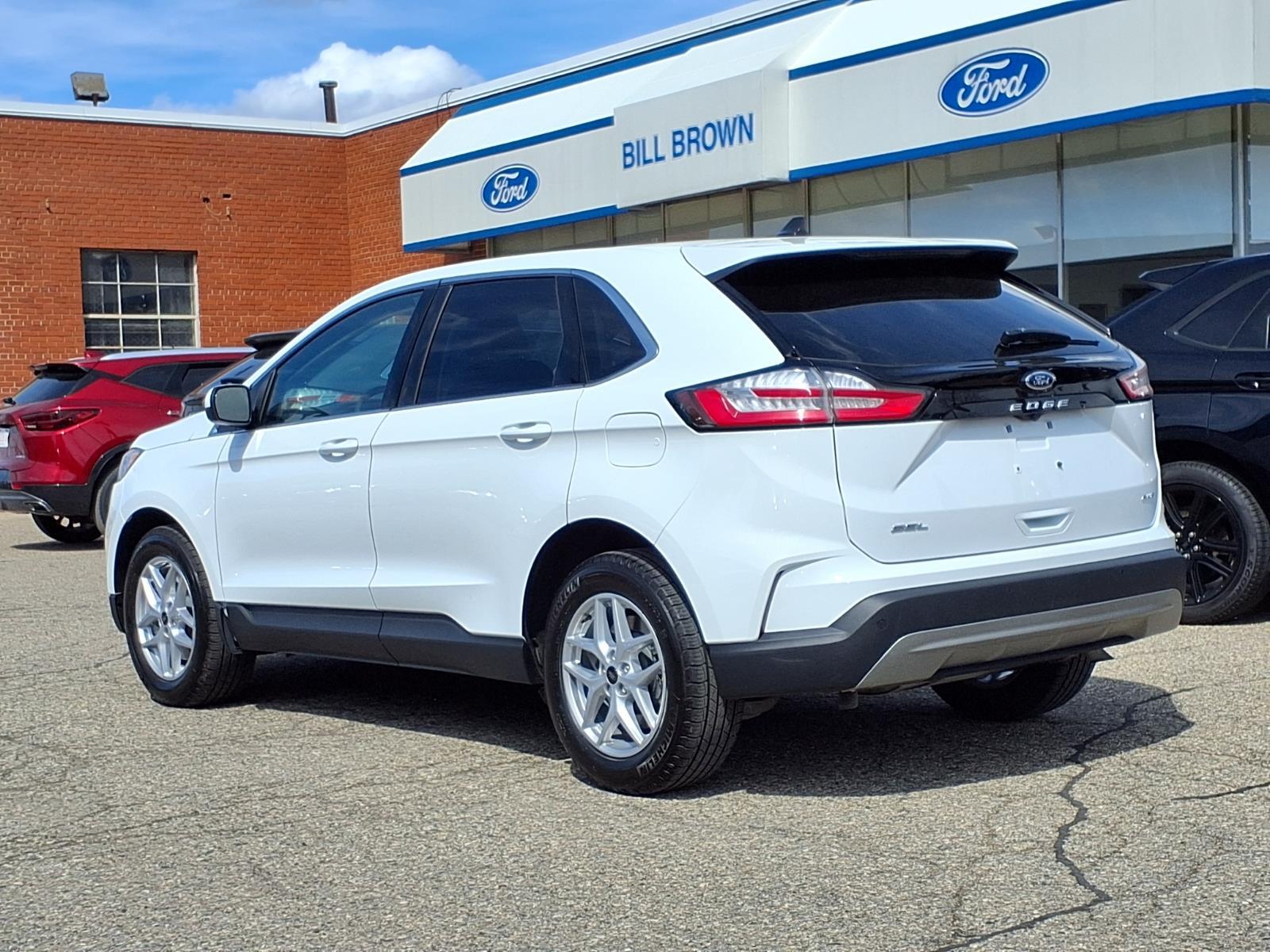 The Ford Edge SEL 2024 is a certified pre-owned vehicle with low mileage of 19,364 miles. It has an all wheel drive, 2.0 liter EcoBoost Turbo I4 250hp 275 lb-ft engine, and direct injection. The exterior is oxford white yz and the interior is ebony. This car has a crash test rating of 5 out of 5 stars and features such as touch screen display, Bluetooth audio connection, blind spot sensor, hill start assist, on demand four wheel drive, Bluetooth phone connectivity, and leather seats. With a fuel economy in city of 21 mpg and fuel economy on highway of 28 mpg, this car is sure to provide you with an efficient and reliable ride. Call Bill Brown Ford Pre-owned at (734) 522-0030 to confirm availability and schedule a no-obligation test drive!