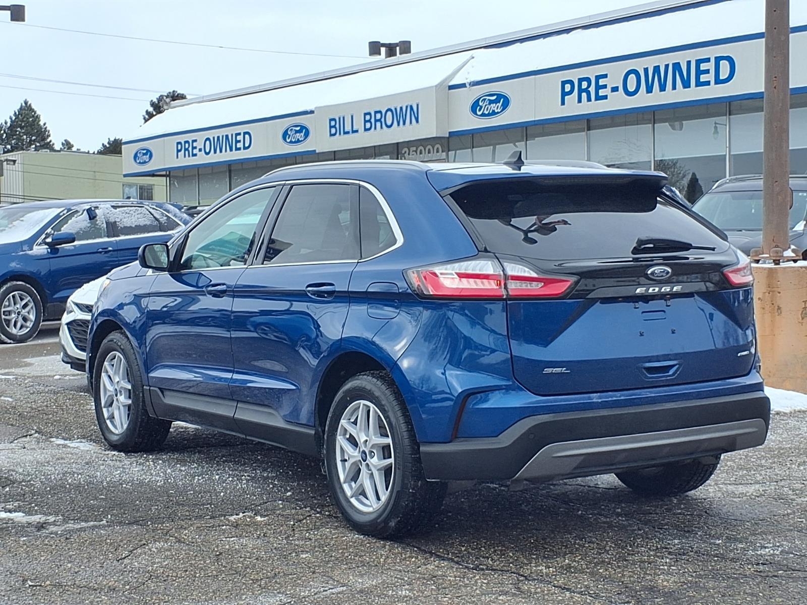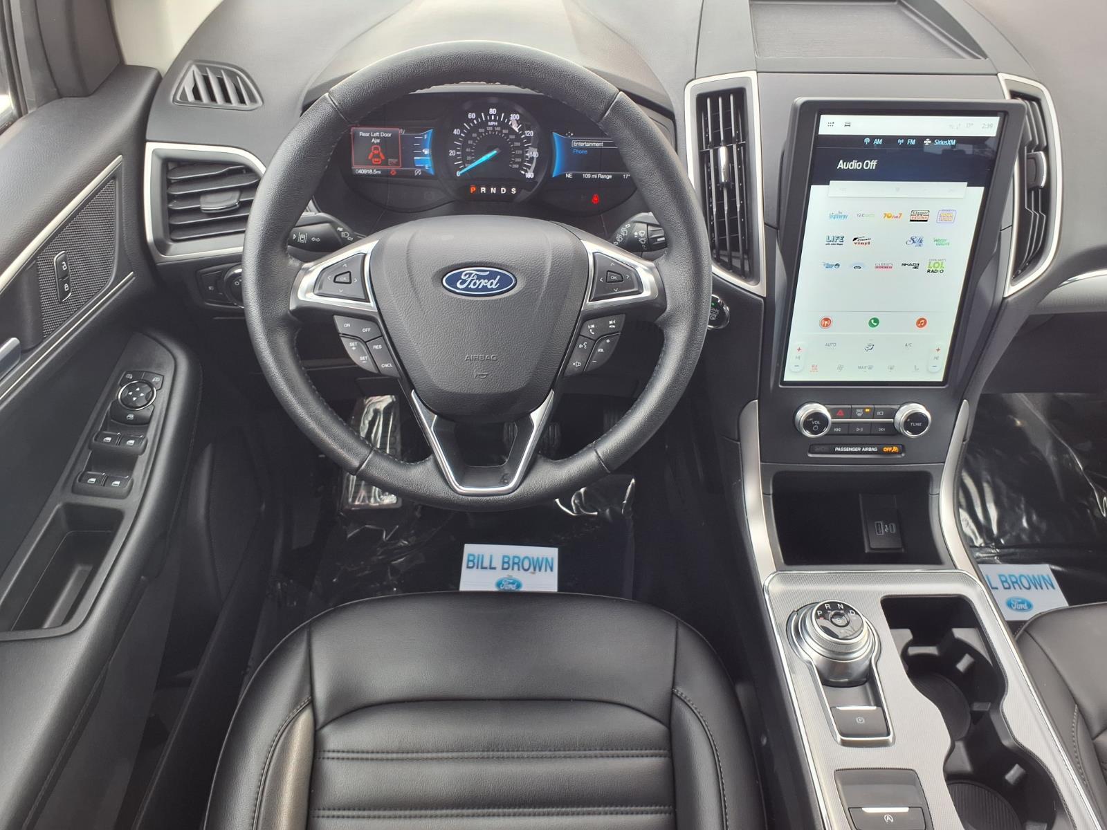 4 NEW TIRES!! CONVENIENCE PACKAGE $1,295.00 18 SPLT-SPK SLVR PTD ALUM WHEELS ROOF-RACK SIDE RAILS - SILVER $165.00 HEATED STEERING WHEEL $350.00 .POWER LIFTGATE .REMOTE START SYSTEM .UNIVERSAL GARAGE DOOR OPENER .WIRELESS CHARGING PAD This 2022 Ford Edge SEL is a certified pre-owned vehicle with an all-wheel drive, 2.0 liter EcoBoost Turbo I4 250hp 280 lb-ft engine, direct injection. It has an atlas blue (b3) exterior and an ebony interior. It has an impressive fuel economy of 20 mpg in the city and 28 mpg on the highway, making it an ideal choice for those who are looking to save money on gas. It also has a crash test rating of 5 out of 5 stars, making it a safe and reliable choice for those looking for peace of mind while on the road. This Edge SEL also comes equipped with many features such as touch screen display, Bluetooth audio connection, blind spot sensor, hill start assist, on demand four wheel drive, Bluetooth phone connectivity, and leather seats for added comfort and convenience. With 40,905 miles already driven, this car is sure to provide many years of reliable service. Call Bill Brown Ford Pre-owned at (734) 522-0030 to confirm availability and schedule a no-obligation test drive!