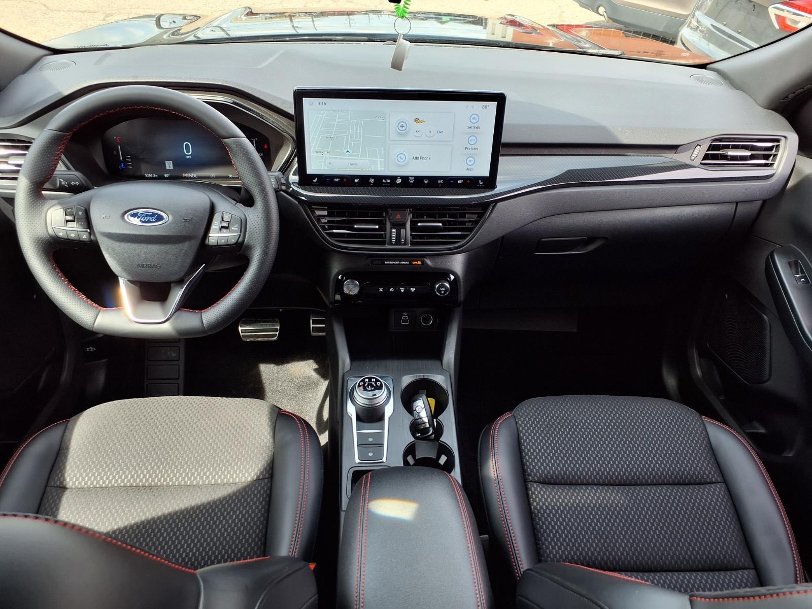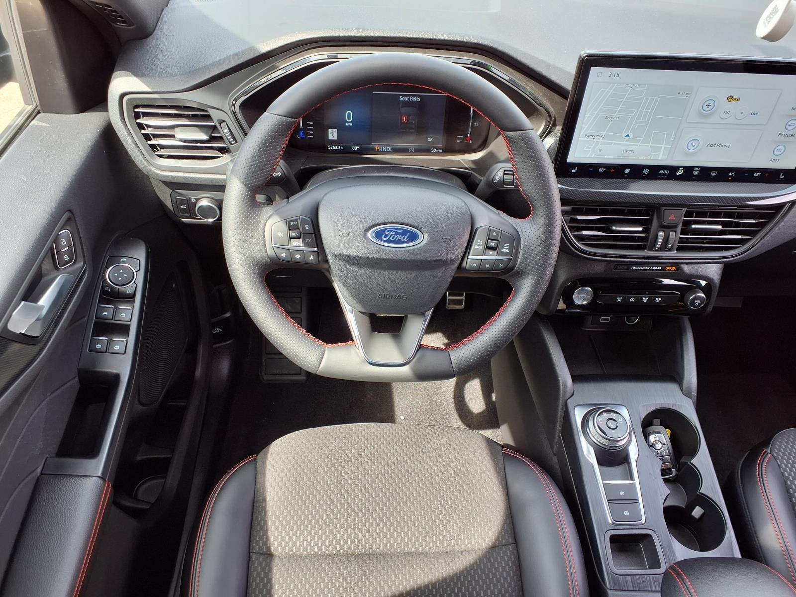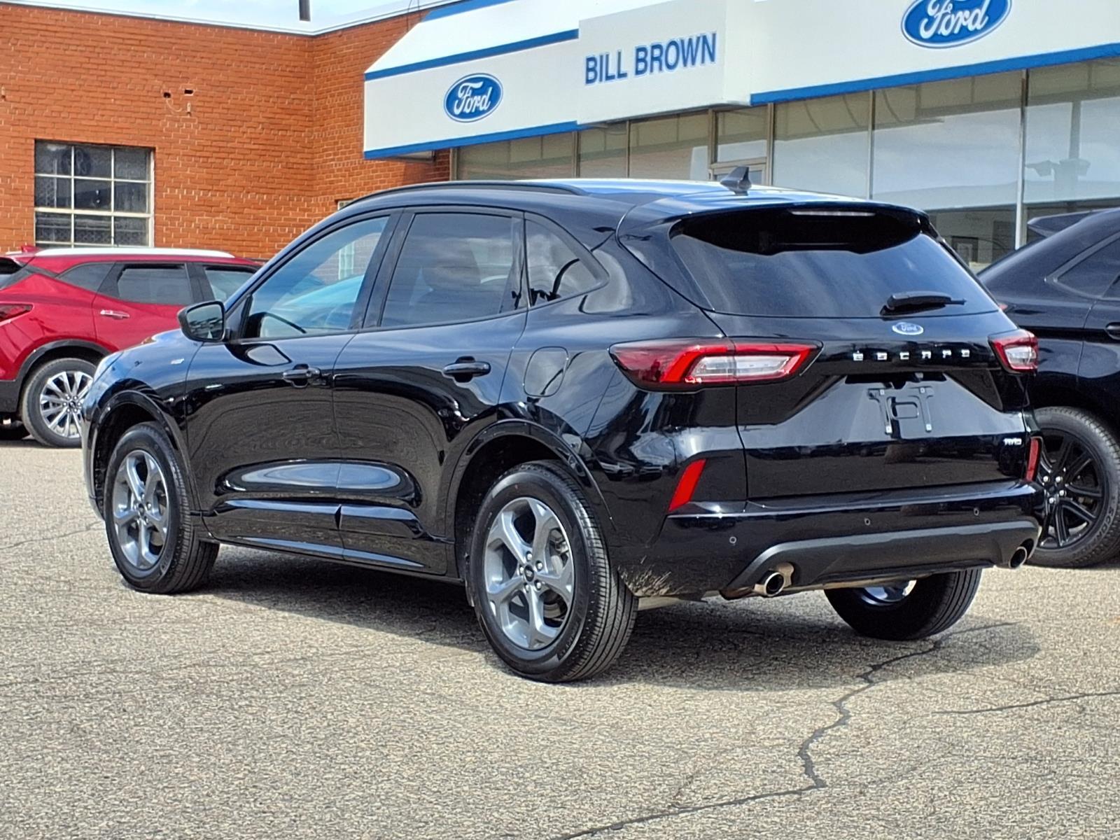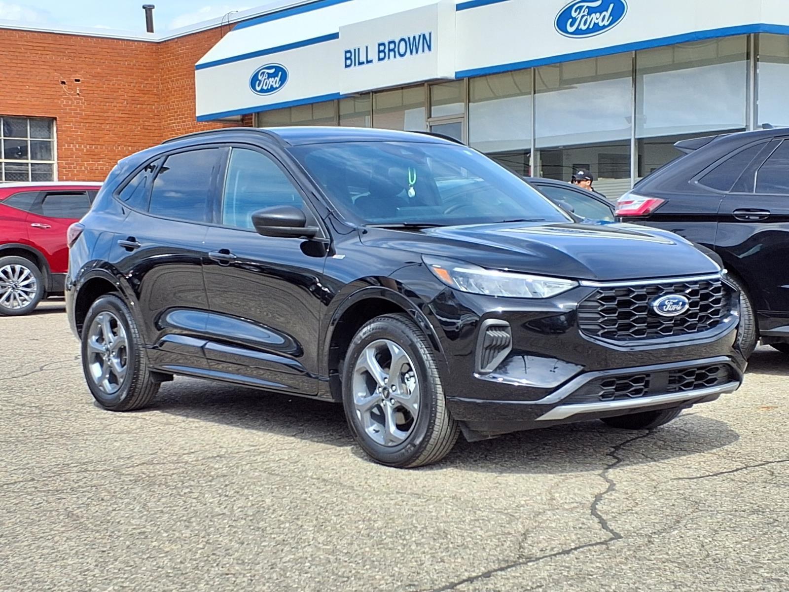 COLD WEATHER PACKAGE .HEATED STEERING WHEEL .MIRROR-PWR/HTD GLASS .REMOTE START SYSTEM .HEATED FRONT ROW SEATS SUPPLEMENTAL PTC HEATER TECH PACKAGE #1 $995.00 .EVASIVE STEERING ASSIST .CONNECTED NAV .LANE CENTERING ASSIST .REAR PARKING SENSORS .INTLGNT ADP SPEED CONTROL .13.2 TOUCHSCREEN The Ford Escape ST-Line is a vehicle of the future, made in 2024. It has low mileage with only 5,242 miles and is certified pre-owned. This car is equipped with an all wheel drive, 1.5 liter EcoBoost Turbo I3 180hp 199 lb-ft engine, and direct injection. The exterior is an agate black (um) while the interior features ebony w/red stitching (hm). It has a crash test rating of 5 out of 5 stars and offers great fuel economy in city (26 mpg) and on highway (32 mpg). The car also comes with many features such as touch screen display, Bluetooth audio connection, blind spot sensor, hill start assist, on demand four wheel drive, and Bluetooth phone connectivity. The Ford Escape ST-Line is truly a car of the future! Call Bill Brown Ford Pre-owned at (734) 522-0030 to confirm availability and schedule a no-obligation test drive!