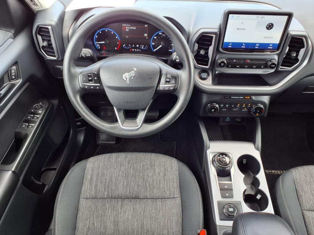 CARFAX One-Owner. Clean CARFAX. 2022 Ford Bronco Sport Air Conditioning, AM/FM radio: SiriusXM, Equipment Group 200A, Leather-Wrapped Steering Wheel, Overhead console, Panic alarm, Power steering, Power windows, Remote keyless entry, Roof rack: rails only, Security system.At Southgate Ford we sell for less and give you more!