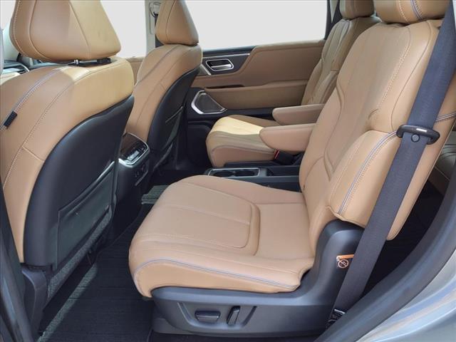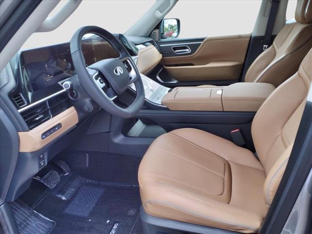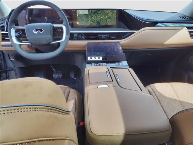 Inside the distinctive QX80 body is an interior long on luxury, including standard Infiniti Hard Drive Navigation System, Around View™ Monitor, Bose® 13-speaker Premium Audio System, available perforated semi-aniline leather seating and an available Tri-Zone Entertainment System with dual seven-inch color monitors, which allows different sources to be played at the same time. The QX80 also offers ample 1st row and class-leading 2nd row roominess.