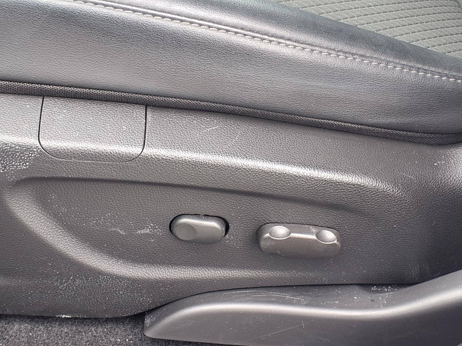A contemporary mix of dark and light tones distinguishes the cabin, which is accented with ice blue ambient lighting, select use of bright trim and wood-grain trim. Premium seats featuring high-density foam for greater comfort on long drives are trimmed with either a contemporary cloth/leatherette motif or available leather. Heated front seats and a heated steering wheel are available. The rear seat features a fold-down armrest with cup holders.