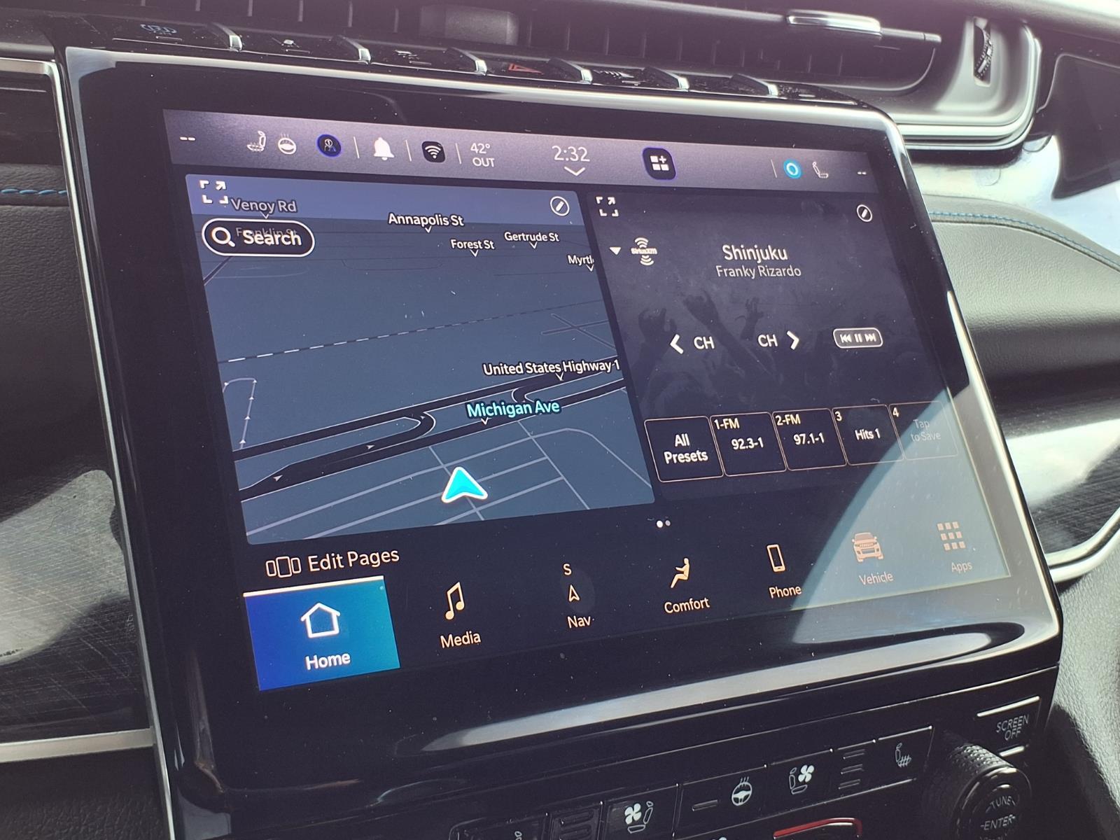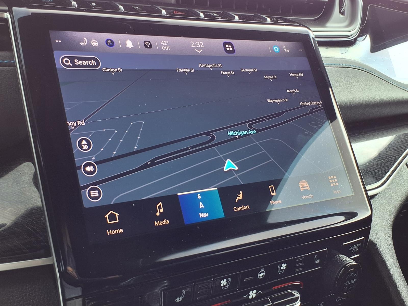 On the center console, drivers will find the leather-wrapped T-handle shifter for the eight-speed transmission that allows the driver to select two driving modes including Drive and Sport.