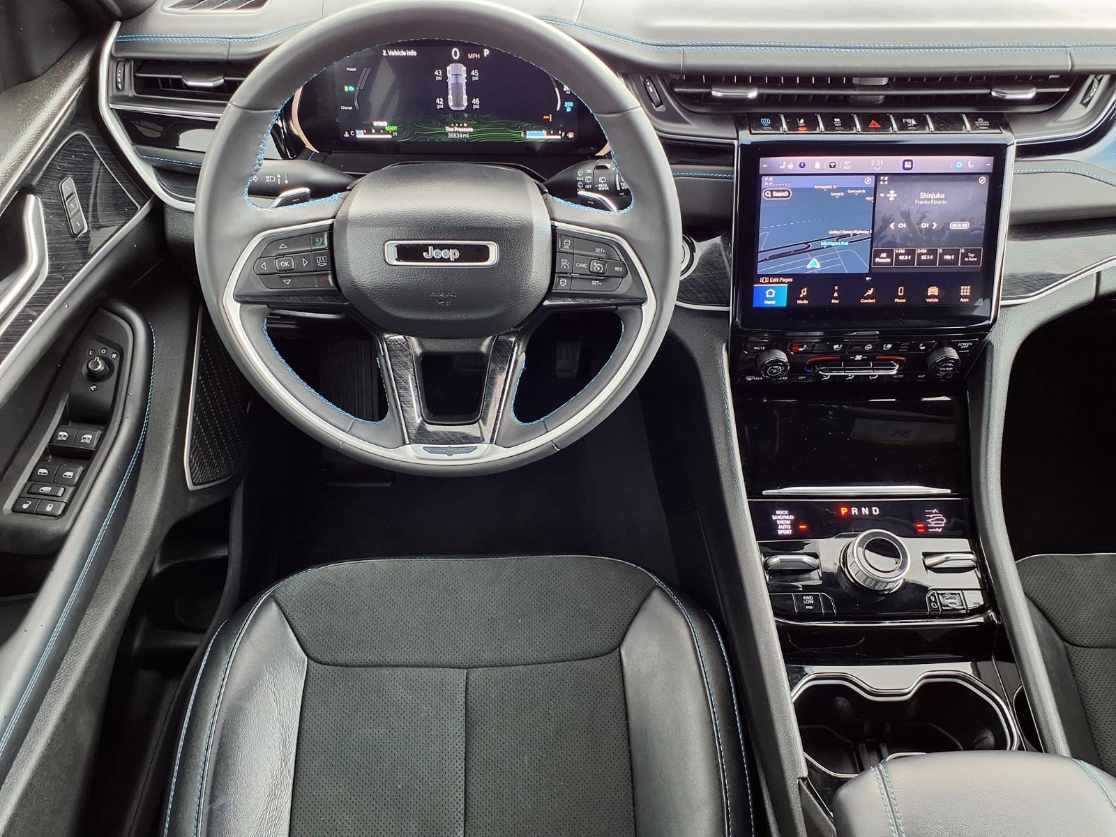 On the exterior, standard five-spoke 20-inch “Goliath” wheels are finished in Black Chrome with bright chrome center caps, while additional gloss black appointments include the SRT liftgate badge, Jeep hood and rear light bar badges, Grand Cherokee door badge, lower grille bezels and upper grille inserts.