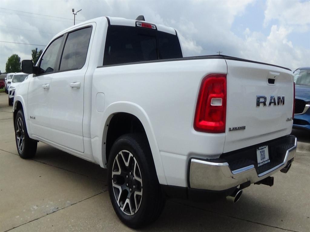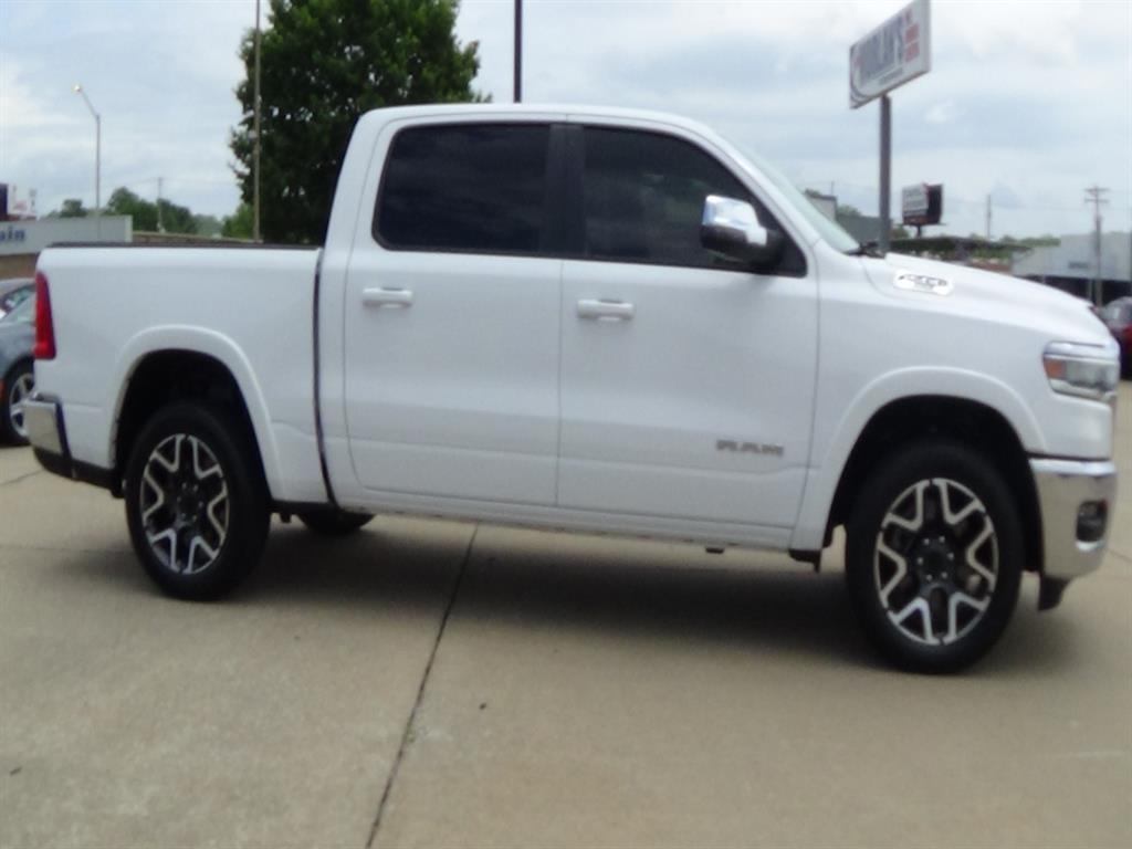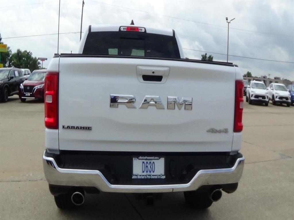 Thank you for considering John Morlan Chrysler! We are a family owned dealership and take pride in taking excellent care of our customers and offering world class customer service. This 2025 RAM Crew Cab 4x4 1500 Laramie Vehicle is a state-of-the-art motorcar that has been meticulously crafted to provide superior performance and comfort. Boasting a 4x4 Hurricane 3.0L Twin Turbo I6 420hp 469 lb-ft engine, this motorcar has driven 14,102 miles and is equipped with a bright white clear coat exterior. It also boasts an impressive fuel economy of 17 mpg in the city and 24 mpg on the highway, making it an ideal choice for those who need to travel long distances. The Vehicle also comes with a number of safety features such as blind spot sensor, hill start assist, part time with on demand four wheel drive, navigation system with voice recognition, and touch screen display. This Vehicle has been awarded a crash test rating of 4 out of 5 stars, making it the perfect choice for those looking for a reliable and safe ride. We appreciate the opportunity to serve you and look forward to hearing from you today.