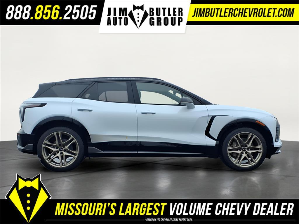 Price does not include tax, title, license, or administration fees. Price does include: $1000 - Customer Cash. Exp. 03/02/2026 $750 - Purchase Allowance for Current Eligible Non-GM Owners and Lessees. Exp. 03/02/2026 2026 Chevrolet Blazer EV SS SS Polar White Tricoat AWD 1-Speed Automatic Electric Motor 92/77 City/Highway MPG Please call today (888) 475-3191. We are proud to be a GM Mark of Excellence Dealership. Come see why we are the #1 Chevrolet dealership in the Midwest. On top of that we have also been awarded Dealer of the year the last 8 years. Proudly serving: St. Louis, South County, Webster Groves, Creve Coeur, Kirkwood, Maryland Heights, Sullivan, Rolla, Columbia, Fenton, Chesterfield, St. Charles, Kansas City, Springfield, Jefferson City, and all of great Missouri and Illinois. While we make every attempt to ensure pricing accuracy. Dealer not responsible for computer or human error, dealer reserves the right to change prices due to human or computer error. In order to put a 24 hour hold deposit on vehicles, Financing must be secured thru Jim Butler Chevrolet Business Office and Cash Deals must be Electronically Transferred within Six Hours. All-Weather Liner Package (All-Weather Cargo Area Liner and Front and Rear All-Weather Floor Liners), Tech Bronze Package (22Bronze Tech Wheels, Black Bodyside Decal, Black Hood Stinger Decal (LPO), Black Lug Nuts, Black Wheel Center Caps with Black Bowtie, Black Wheel Locks, Tire Pressure Monitoring System, and Wheels: 22Transit), 2-Way Front Passenger Power Lumbar Seat Adjuster, 2-Way Power Driver Lumbar Seat Adjuster, 4-Wheel Disc Brakes, 6-Way Power Front Passenger Seat Adjuster, 8 Speakers, 8-Way Power Driver Seat Adjuster, ABS brakes, Air Conditioning, Alloy wheels, AM/FM radio: SiriusXM with 360L, Auto High-beam Headlights, Auto-dimming door mirrors, Auto-dimming Rear-View mirror, Automatic temperature control, Brake assist, Bumpers: body-color, Compass, Delay-off headlights, Driver and Front Passenger Ventilated Seats, Driver door bin, Driver vanity mirror, Dual front impact airbags, Dual front side impact airbags, Electronic Stability Control, Emergency communication system: OnStar and Chevrolet connected services capable, Four wheel independent suspension, Front anti-roll bar, Front Bucket Seats, Front Center Armrest, Front dual zone A/C, Front reading lights, Fully automatic headlights, Garage door transmitter, Heads-Up Display, Heated door mirrors, Heated Driver and Front Passenger Seats