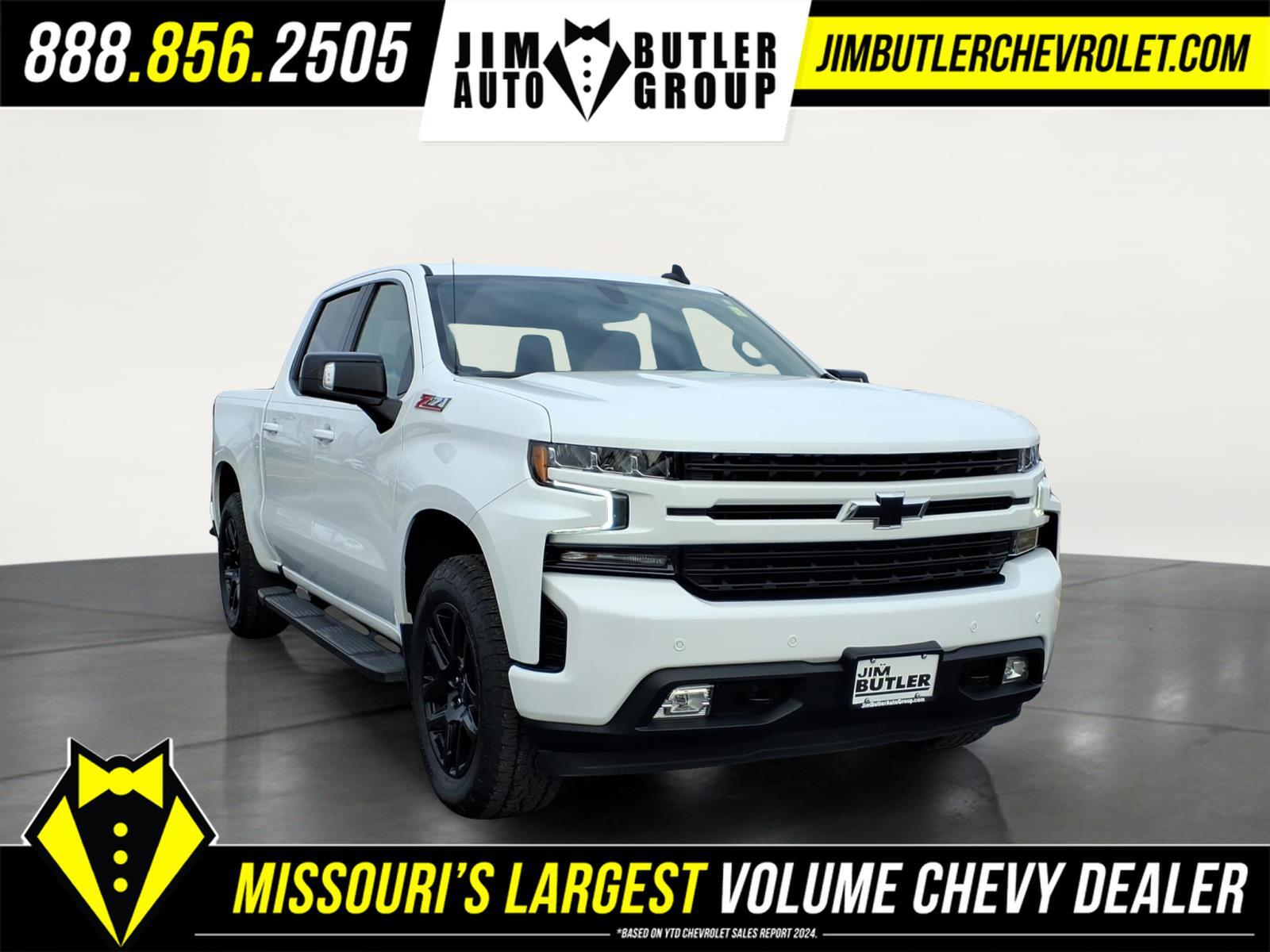 2022 Chevrolet Silverado 1500 LTD RST Summit White 8-Speed Automatic 4WD EcoTec3 5.3L V8 CARFAX One-Owner. Odometer is 22581 miles below market average! Priced below KBB Fair Purchase Price! Please call today (888) 475-3191. We are proud to be a GM Mark of Excellence Dealership. Come see why we are the #1 Chevrolet dealership in the Midwest. On top of that we have also been awarded Dealer of the year the last 8 years. Proudly serving: St. Louis, South County, Webster Groves, Creve Coeur, Kirkwood, Maryland Heights, Sullivan, Rolla, Columbia, Fenton, Chesterfield, St. Charles, Kansas City, Springfield, Jefferson City, and all of great Missouri and Illinois. While we make every attempt to ensure pricing accuracy. Dealer not responsible for computer or human error, dealer reserves the right to change prices due to human or computer error. In order to put a 24 hour hold deposit on vehicles, Financing must be secured thru Jim Butler Chevrolet Business Office and Cash Deals must be Electronically Transferred within Six Hours. Bed Protection Package (Chevytec Spray-On Black Bedliner and Rear Wheelhouse Liners), Blackout Package (LPO) (DISC) (Wheels: 205-Split Spoke High Gloss Black (LPO)), Cloth Rear Seat w/Storage Package, Convenience Package (10-Way Power Driver Seat w/Lumbar, Dual-Zone Automatic Climate Control, and Manual Tilt/Telescoping Steering Column), Convenience Package w/Buckets Seats (Floor Mounted Center Console and Front Bucket Seats), Dark Essentials Package (LPO) (Black Name Plates (LPO)), Preferred Equipment Group 1SP (12-Volt Rear Auxiliary Power Outlet, 2 USB Ports (First Row), 4.2Diagonal Color Display Driver Info Center, All-Star Edition, Auto-Locking Rear Differential, Bluetooth� For Phone, Body Color Grille, Chevrolet Connected Access Capable, Color-Keyed Carpeting Floor Covering, Compass, Deep-Tinted Glass, Electric Rear-Window Defogger, Electronic Cruise Control, EZ Lift Power Lock & Release Tailgate, Front Frame-Mounted Black Recovery Hooks, Front LED Fog Lamps, Front Rubberized Vinyl Floor Mats, Heated Driver & Front Outboard Passenger Seats, Heated Steering Wheel, High Gloss Black Mirror Caps, Keyless Open & Start, Leather Wrapped Steering Wheel, LED Cargo Area Lighting, OnStar & Chevrolet Connected Services Capable, Power Door Locks, Power Front Windows w/Driver Express Up/Down, Power Front Windows w/Passenger Express Down, Power Rear Windows w/Express Down, Rear 60/40 Folding Bench Seat (Folds Up), Rear Dual USB Charging-Only Por
