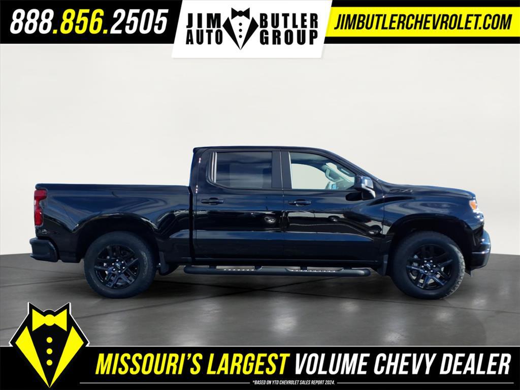 2025 Chevrolet Silverado 1500 RST Black 8-Speed Automatic 4WD EcoTec3 5.3L V8 CARFAX One-Owner. Clean CARFAX. Please call today (888) 475-3191. We are proud to be a GM Mark of Excellence Dealership. Come see why we are the #1 Chevrolet dealership in the Midwest. On top of that we have also been awarded Dealer of the year the last 8 years. Proudly serving: St. Louis, South County, Webster Groves, Creve Coeur, Kirkwood, Maryland Heights, Sullivan, Rolla, Columbia, Fenton, Chesterfield, St. Charles, Kansas City, Springfield, Jefferson City, and all of great Missouri and Illinois. While we make every attempt to ensure pricing accuracy. Dealer not responsible for computer or human error, dealer reserves the right to change prices due to human or computer error. In order to put a 24 hour hold deposit on vehicles, Financing must be secured thru Jim Butler Chevrolet Business Office and Cash Deals must be Electronically Transferred within Six Hours. All Star Edition Plus, Convenience Package (10-Way Power Driver Seat w/Lumbar, 120-Volt Bed Mounted Power Outlet, 120-Volt Interior Power Outlet, Dual Rear USB Ports (Charge Only), Dual-Zone Automatic Climate Control, Electric Rear-Window Defogger, Heated Driver & Front Outboard Passenger Seats, Heated Steering Wheel, Keyless Open & Start, LED Cargo Area Lighting, Manual Tilt/Telescoping Steering Column, Remote Vehicle Starter System, Theft Deterrent System (Unauthorized Entry), and Wrapped Steering Wheel), Convenience Package II (Hitch Guidance w/Hitch View, In-Vehicle Trailering System App, Power Sliding Rear Window w/Rear Defogger, Premium Bose 7-Speaker Sound System, and Universal Home Remote), Dark Essentials Package (LPO) (Black Name Plates (LPO)), High Capacity Suspension Package, Leather Package, Preferred Equipment Group 1SP (12.3Multicolor Reconfigurable Digital Display, 6-Speaker Audio System, All-Star Edition, Auto-Locking Rear Differential, Bluetooth� For Phone, Color-Keyed Carpeting Floor Covering, Deep-Tinted Glass, Electronic Cruise Control, EZ Lift Power Lock & Release Tailgate, Front Frame-Mounted Black Recovery Hooks, Front LED Fog Lamps, Front Rubberized Vinyl Floor Mats, HD Rear Vision Camera, Heated Power-Adjustable Outside Mirrors, High Gloss Black Mirror Caps, Inside Rear-View Mirror w/Tilt, Integrated Trailer Brake Controller, OnStar Services Capable, Power Front Windows w/Driver Express Up/Down, Power Front Windows w/Passenger Express Down, Power Rear Windows w/Express Down, Rear 60/40 Foldin