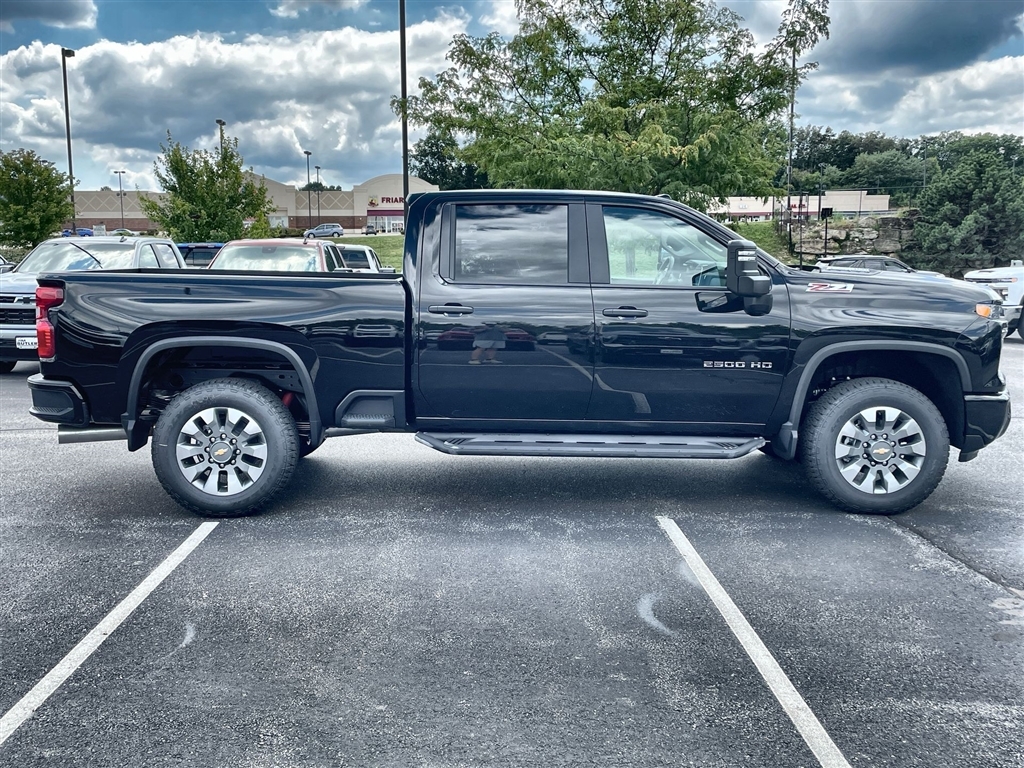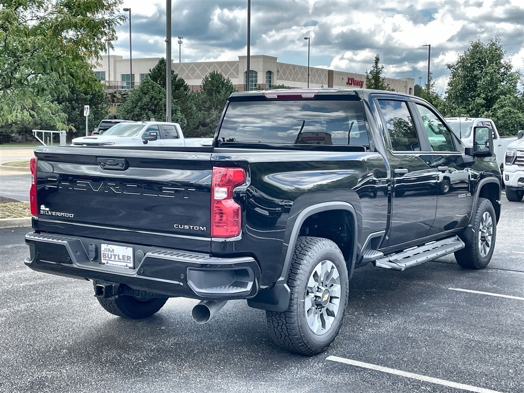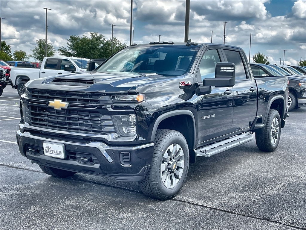 Price does not include tax, title, license, or administration fees. Price does include: $500 - Customer Cash. Exp. 11/03/2025 2025 Chevrolet Silverado 2500HD Custom Custom Black 4WD 10-Speed Automatic Duramax 6.6L V8 Turbodiesel Please call today (888) 475-3191. We are proud to be a GM Mark of Excellence Dealership. Come see why we are the #1 Chevrolet dealership in the Midwest. On top of that we have also been awarded Dealer of the year the last 8 years. Proudly serving: St. Louis, South County, Webster Groves, Creve Coeur, Kirkwood, Maryland Heights, Sullivan, Rolla, Columbia, Fenton, Chesterfield, St. Charles, Kansas City, Springfield, Jefferson City, and all of great Missouri and Illinois. While we make every attempt to ensure pricing accuracy. Dealer not responsible for computer or human error, dealer reserves the right to change prices due to human or computer error. In order to put a 24 hour hold deposit on vehicles, Financing must be secured thru Jim Butler Chevrolet Business Office and Cash Deals must be Electronically Transferred within Six Hours. Custom Convenience Package (10-Way Power Driver Seat Adjuster w/Lumbar, 120-Volt Bed Mounted Power Outlet, 120-Volt Interior Power Outlet, Dual Rear USB Ports (Charge Only), Electric Rear-Window Defogger, EZ Lift Power Lock & Release Tailgate, LED Cargo Area Lighting, Remote Vehicle Starter System, and Unauthorized Entry Theft-Deterrent System), Custom Value Package (Auto-Dimming Inside Rear-View Mirror and Heated & Auto-Dimming Vertical Trailering Mirrors), CX Safety Package (Lane Change Alert w/Side Blind Zone Alert, Rear Cross Traffic Alert, and Ultrasonic Front & Rear Park Assist), Preferred Equipment Group 1CX (170 Amp Alternator, 2-Speed Electronic Shift Transfer Case, 3.5Diagonal Monochromatic Display DIC, Black Mirror Caps, Bluetooth� For Phone, Chevrolet Connected Access Capable, Color-Keyed Carpeting Floor Covering, Compass, Deep-Tinted Glass, Electronic Cruise Control w/Set & Resume Speed, Front Rub