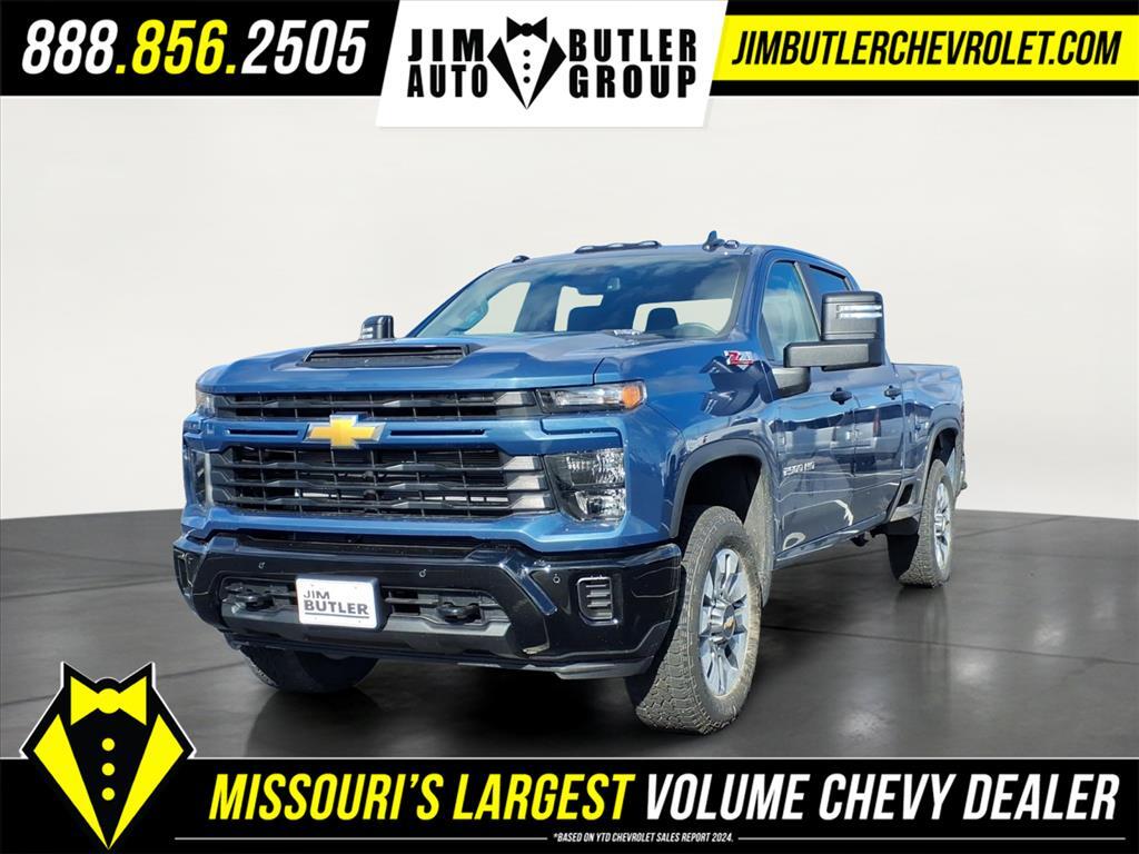 2026 Chevrolet Silverado 2500HD Custom Custom Lakeshore Blue Metallic 4WD 10-Speed Automatic 6.6L V8 Please call today (888) 475-3191. We are proud to be a GM Mark of Excellence Dealership. Come see why we are the #1 Chevrolet dealership in the Midwest. On top of that we have also been awarded Dealer of the year the last 8 years. Proudly serving: St. Louis, South County, Webster Groves, Creve Coeur, Kirkwood, Maryland Heights, Sullivan, Rolla, Columbia, Fenton, Chesterfield, St. Charles, Kansas City, Springfield, Jefferson City, and all of great Missouri and Illinois. While we make every attempt to ensure pricing accuracy. Dealer not responsible for computer or human error, dealer reserves the right to change prices due to human or computer error. In order to put a 24 hour hold deposit on vehicles, Financing must be secured thru Jim Butler Chevrolet Business Office and Cash Deals must be Electronically Transferred within Six Hours. Custom Convenience Package (10-Way Power Driver Seat Adjuster with Lumbar, 120-Volt Bed Mounted Power Outlet, 120-Volt Interior Power Outlet, Dual Rear USB Ports (charge Only), Electric Rear-Window Defogger, EZ Lift Power Lock and Release Tailgate, LED Cargo Area Lighting, Remote Vehicle Starter System, and Unauthorized Entry Theft-Deterrent System), Custom Value Package (Auto-Dimming Inside Rear-View Mirror and Heated and Auto-Dimming Vertical Trailering Mirrors), CX Safety Package (Lane Change Alert with Side Blind Zone Alert, Rear Cross Traffic Alert, and Ultrasonic Front and Rear Park Assist), Gooseneck/5th Wheel Prep Package (Black Chevytec Spray-on Bedliner), Preferred Equipment Group 1CX (170 Amp Alternator, 2-Speed Electronic Shift Transfer Case, 3.5Diagonal Monochromatic Display DIC, 3.73 Rear Axle Ratio, Black Mirror Caps, Bluetooth� For Phone, Chevrolet Connected Access Capable, Color-Keyed Carpeting Floor Covering, Compass, Deep-Tinted Glass, Durabed Pickup Bed, Electronic Cruise Control with Set and Resume Speed, Front Rubberized Vinyl Floor Mats, HD Rear Vision Camera, Heated Vertical Trailering Mirrors, Locking Tailgate, Manual Tailgate Function with No EZ Lift, Manual Tilt-Wheel Steering Column, OnStar Services Capable, Power Door Locks, Power Front Windows with Driver Express Up/Down, Power Front Windows with Passenger Express Down, Power Rear Windows with Express Down, Push Button Start, Rear 60/40 Folding Bench Seat (folds Up), Rear Rubberized Vinyl Floor Mats, Remote Keyless Entry, SiriusXM with 360L Tria