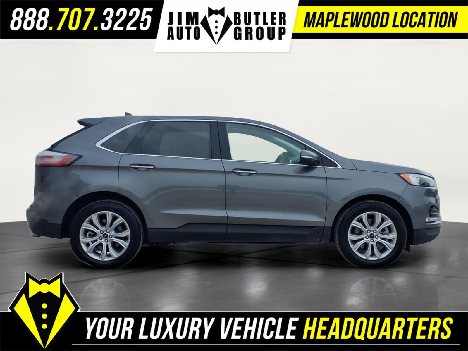 2024 Ford Edge Titanium Gray Metallic 8-Speed Automatic AWD EcoBoost 2.0L I4 GTDi DOHC Turbocharged VCT Equipment Group 300A. CARFAX One-Owner. Clean CARFAX. Please call today (888) 475-3191. We are proud to be a GM Mark of Excellence Dealership. Come see why we are the #1 Chevrolet dealership in the Midwest. On top of that we have also been awarded Dealer of the year the last 8 years. Proudly serving: St. Louis, South County, Webster Groves, Creve Coeur, Kirkwood, Maryland Heights, Sullivan, Rolla, Columbia, Fenton, Chesterfield, St. Charles, Kansas City, Springfield, Jefferson City, and all of great Missouri and Illinois. While we make every attempt to ensure pricing accuracy. Dealer not responsible for computer or human error, dealer reserves the right to change prices due to human or computer error. In order to put a 24 hour hold deposit on vehicles, Financing must be secured thru Jim Butler Chevrolet Business Office and Cash Deals must be Electronically Transferred within Six Hours. Equipment Group 300A, 12 Speakers, 3.80 Axle Ratio, 4-Wheel Disc Brakes, ABS brakes, ActiveX-Trimmed Heated Sport Bucket Seats, Air Conditioning, Alloy wheels, AM/FM radio: SiriusXM with 360L, Auto High-beam Headlights, Auto-dimming Rear-View mirror, Automatic temperature control, Brake assist, Bumpers: body-color, Compass, Delay-off headlights, Driver door bin, Driver vanity mirror, Dual front impact airbags, Dual front side impact airbags, Electronic Stability Control, Emergency communication system: SYNC 4 911 Assist, FordPass Connect, Four wheel independent suspension, Front anti-roll bar, Front Bucket Seats, Front Center Armrest w/Storage, Front dual zone A/C, Front fog lights, Front reading lights, Fully automatic headlights, Garage door transmitter, Heated door mirrors, Heated front seats, Heated steering wheel, Illuminated entry, Knee airbag, Leather steering wheel, Low tire pressure warning, Memory seat, Occupant sensing airbag, Outside temperature display, Overhead airbag, Overhead console, Panic alarm, Passenger door bin, Passenger vanity mirror, Power door mirrors, Power driver seat, Power Liftgate, Power passenger seat, Power steering, Power windows, Radio: B&O Sound System by Bang & Olufsen, Rain sensing wipers, Rear anti-roll bar, Rear reading lights, Rear seat center armrest, Rear window defroster, Rear window wiper, Remote keyless entry, Security system, SiriusXM w/360L, Speed control, Speed-Sensitive Wipers, Split folding rear seat, Spoiler, Steering whee
