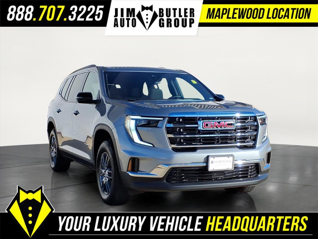 2025 GMC Acadia Elevation Sterling Metallic 8-Speed Automatic FWD 2.5L DOHC CARFAX One-Owner. Clean CARFAX. Priced below KBB Fair Purchase Price! Please call today (888) 475-3191. We are proud to be a GM Mark of Excellence Dealership. Come see why we are the #1 Chevrolet dealership in the Midwest. On top of that we have also been awarded Dealer of the year the last 8 years. Proudly serving: St. Louis, South County, Webster Groves, Creve Coeur, Kirkwood, Maryland Heights, Sullivan, Rolla, Columbia, Fenton, Chesterfield, St. Charles, Kansas City, Springfield, Jefferson City, and all of great Missouri and Illinois. While we make every attempt to ensure pricing accuracy. Dealer not responsible for computer or human error, dealer reserves the right to change prices due to human or computer error. In order to put a 24 hour hold deposit on vehicles, Financing must be secured thru Jim Butler Chevrolet Business Office and Cash Deals must be Electronically Transferred within Six Hours. Preferred Equipment Group 4SC, 12 Speakers, 18x 7.5Aluminum Wheels, 2-Way Driver Power Lumbar Seat Adjuster, 3.49 Final Drive Axle Ratio, 3rd row seats: split-bench, 4-Way Manual Front Passenger Seat Adjuster, 4-Wheel Disc Brakes, 8-Passenger Seating (2-3-3 Seating Configuration), 8-Way Power Driver Seat Adjuster, ABS brakes, Air Conditioning, Alloy wheels, AM/FM radio: SiriusXM with 360L, Apple CarPlay/Android Auto, Auto High-beam Headlights, Auto-dimming Rear-View mirror, Automatic temperature control, Bodyside moldings, Bose Premium 12-Speaker System with Sub-Woofer, Brake assist, Bumpers: body-color, Cloth Seat Trim, Compass, Delay-off headlights, Driver door bin, Driver vanity mirror, Dual front impact airbags, Dual front side impact airbags, Electronic Stability Control, Emergency communication system: OnStar Services capable, Exterior Parking Camera Rear, Four wheel independent suspension, Front anti-roll bar, Front Bucket Seats, Front Center Armrest, Front dual zone A/C, Front fog lights, Front License Plate Bracket, Front reading lights, Fully automatic headlights, Heated door mirrors, Heated Driver and Front Passenger Seats, Heated front seats, Heated steering wheel, Illuminated entry, Leather steering wheel, Low tire pressure warning, Navigation System, Occupant sensing airbag, Outside temperature display, Overhead airbag, Overhead console, Panic alarm, Passenger door bin, Passenger vanity mirror, Power door mirrors, Power driver seat, Power Liftgate, Power steering, Po