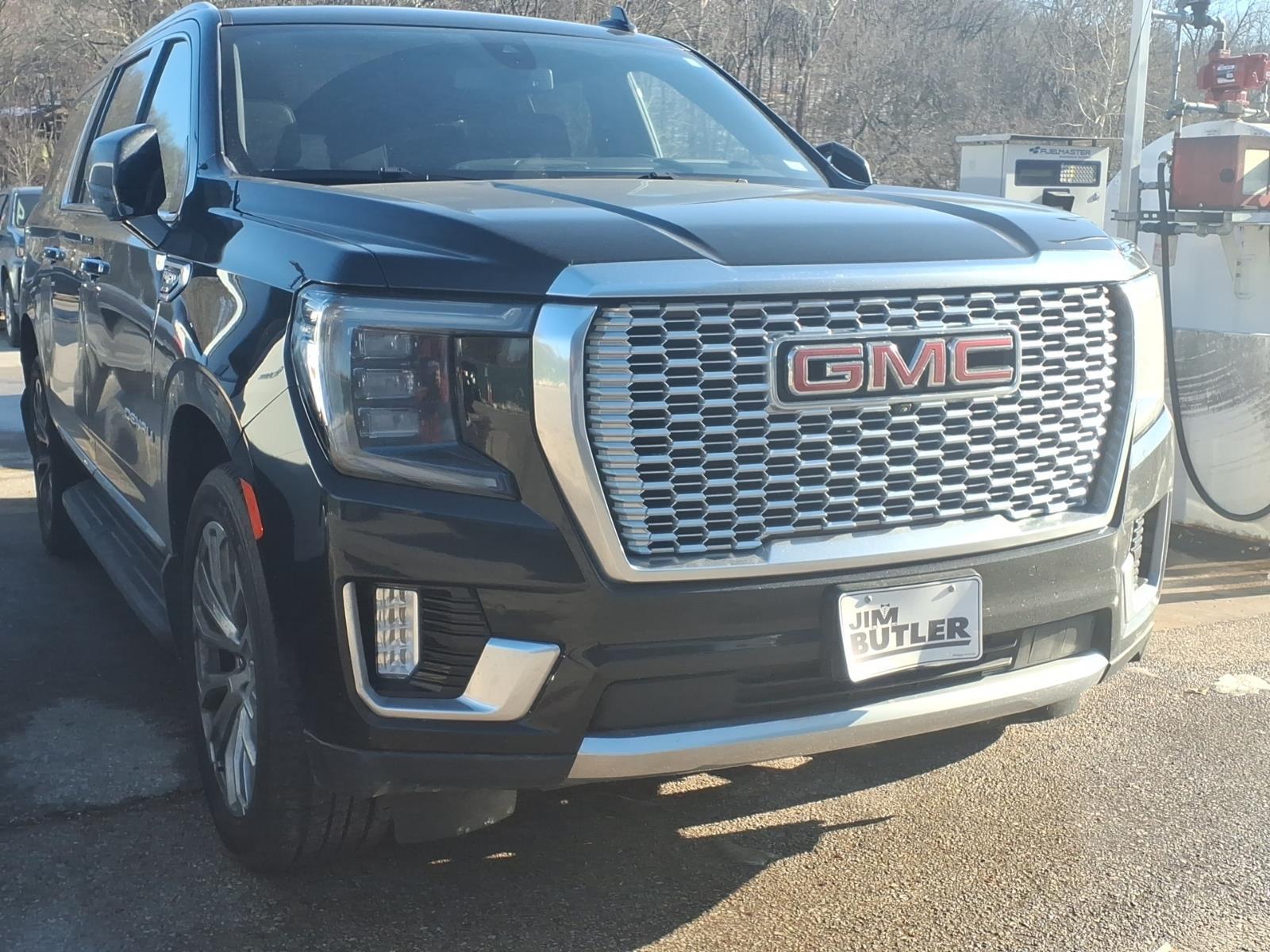 2021 GMC Yukon XL Denali Onyx Black 10-Speed Automatic with Overdrive 4WD EcoTec3 6.2L V8 Clean CARFAX. Odometer is 37257 miles below market average! Please call today (888) 475-3191. We are proud to be a GM Mark of Excellence Dealership. Come see why we are the #1 Chevrolet dealership in the Midwest. On top of that we have also been awarded Dealer of the year the last 8 years. Proudly serving: St. Louis, South County, Webster Groves, Creve Coeur, Kirkwood, Maryland Heights, Sullivan, Rolla, Columbia, Fenton, Chesterfield, St. Charles, Kansas City, Springfield, Jefferson City, and all of great Missouri and Illinois. While we make every attempt to ensure pricing accuracy. Dealer not responsible for computer or human error, dealer reserves the right to change prices due to human or computer error. In order to put a 24 hour hold deposit on vehicles, Financing must be secured thru Jim Butler Chevrolet Business Office and Cash Deals must be Electronically Transferred within Six Hours. Preferred Equipment Group 5SA (12-Way Power Seat Adjusters, 15Diagonal Multi-Color Head-Up Display, 2 Presets For Outside Rearview Mirrors, 3rd Row 60/40 Power-Folding Split-Bench Seat, Bright Front & Rear Door Sill Plates, Chrome Door Handles w/Body-Color Strip, Dual Exhaust System, Galvano Bodyside Moldings, Hands-Free Power Programmable Rear Liftgate, HD Surround Vision, Heated & Ventilated Driver & Front Passenger Seats, Heated 2nd Row Outboard Position Seats, Heated Automatic Steering Wheel, Heated Driver & Front Passenger Seats, Hill Descent Control, Inside Rear-View Auto-Dimming Mirror, Outside Heated Power-Adjustable Mirrors, Power Release 2nd Row Bucket Seats, Power Tilt & Telescopic Steering Column, Rear Pedestrian Alert, Safety Alert Seat, and Universal Home Remote), 14 Speakers, 3.23 Rear Axle Ratio, 3rd row seats: split-bench, 4-Wheel Disc Brakes, ABS brakes, Adaptive suspension, Air Conditioning, Alloy wheels, AM/FM radio: SiriusXM with 360L, Apple CarPlay/Android Auto, Auto High-beam Headlights, Auto-dimming door mirrors, Auto-dimming Rear-View mirror, Auto-leveling suspension, Automatic Emergency Braking, Automatic temperature control, Bodyside moldings, Bose 14-Speaker Surround w/CenterPoint, Brake assist, Bumpers: body-color, Compass, Delay-off headlights, Driver door bin, Driver vanity mirror, Dual front impact airbags, Dual front side impact airbags, Electronic Stability Control, Emergency communication system: OnStar and GMC connected services capable, Follo