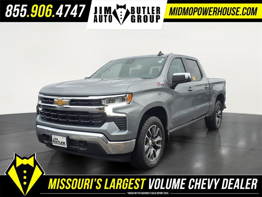 Clean CARFAX. CARFAX One-Owner. Sterling Gray Metallic 2023 Chevrolet Silverado 1500 LT LT1 EcoTec3 5.3L V8 4WD 10-Speed Automatic Odometer is 24224 miles below market average! Want to find out more Schedule a test drive today! Jim Butler is the Used Car Powerhouse! Please call today (800) 688-1925. Proudly serving: Linn, Jefferson City, Loose Creek, Owensville, Gerald, Washington, Hermann, Chamois, Belle, St. James, Vienna, Freeburg, Westphalia, Meta, St. Elizabeth, St. Thomas, Wardsville, Bland, Rich Fountain, Koeltztown, Argyle, Taos, Eugene, Russellville, Brazito, Lohman, St. Martins, Centertown, Holts Summit, New Bloomfield, Ashland, Fulton, and all of Missouri and beyond! We are the CHEVY POWERHOUSE!!Convenience Package (10-Way Power Driver Seat w/Lumbar, 120-Volt Bed Mounted Power Outlet, 120-Volt Instrument Panel Power Outlet, Dual Rear USB Ports (Charge Only), Dual-Zone Automatic Climate Control, Heated Driver & Front Outboard Passenger Seats, Heated Steering Wheel, Keyless Open & Start, and Wrapped Steering Wheel), Preferred Equipment Group 1LT (12.3Multicolor Reconfigurable Digital Display, All-Star Edition, Auto-Locking Rear Differential, Bluetooth� For Phone, Chevrolet Connected Access Capable, Chrome Mirror Caps, Color-Keyed Carpeting Floor Covering, Compass, Deep-Tinted Glass, Electrical Steering Column Lock, Electronic Cruise Control, EZ Lift Power Lock & Release Tailgate, Front Frame-Mounted Black Recovery Hooks, Front Rubberized Vinyl Floor Mats, HD Rear Vision Camera, Heated Power-Adjustable Outside Mirrors, Inside Rear-View Mirror w/Tilt, LED Cargo Area Lighting, OnStar & Chevrolet Connected Services Capable, Power Front Windows w/Driver Express Up/Down, Power Front Windows w/Passenger Express Down, Power Rear Windows w/Express Down, Rear 60/40 Folding Bench Seat (Folds Up), Rear Rubberized-Vinyl Floor Mats, SiriusXM w/360L, Standard Tailgate, Steering Wheel Audio Controls, Wi-Fi Hot Spot Capable, and Wireless Phone Projection), Protection Package (Chevytec Spray-On Black Bedliner and Rear Wheelhouse Liners), Remote Start Package (Electric Rear-Window Defogger, Remote Vehicle Starter System, and Theft Deterrent System (Unauthorized Entry)), Standard Suspension Package, Trailering Package (Hitch Guidance), Z71 Off-Road & Protection Package (All-Weather Floor Liner (LPO) (AAK)), Z71 Off-Road Package (Dual Exhaust w/Polished Outlets, Heavy-Duty Air Filter, Hill Descent Control, Off-Road Suspension, and Wheels: 18x 8.5Bright Silver