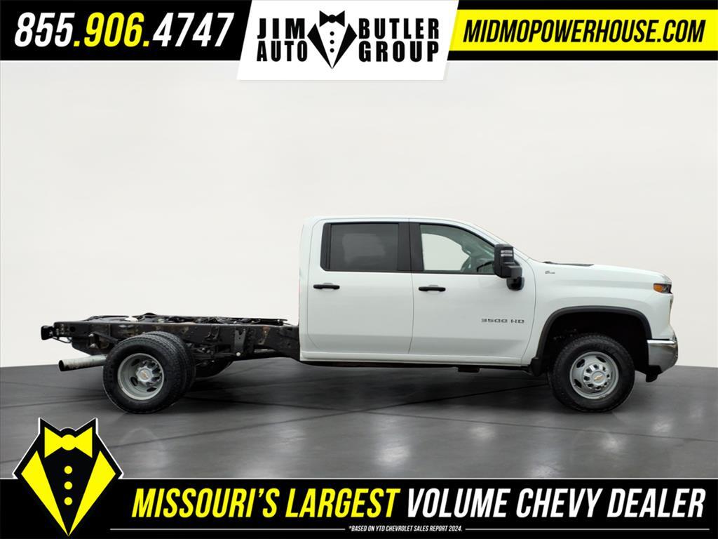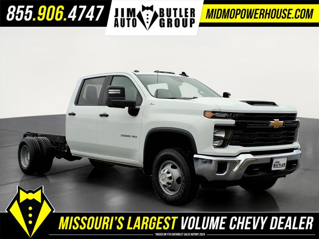 Clean CARFAX. CARFAX One-Owner. Summit White 2024 Chevrolet Silverado 3500HD Work Truck Duramax 6.6L V8 Turbodiesel 4WD 10-Speed Automatic Want to find out more Schedule a test drive today! Jim Butler is the Used Car Powerhouse! Please call today (800) 688-1925. Proudly serving: Linn, Jefferson City, Loose Creek, Owensville, Gerald, Washington, Hermann, Chamois, Belle, St. James, Vienna, Freeburg, Westphalia, Meta, St. Elizabeth, St. Thomas, Wardsville, Bland, Rich Fountain, Koeltztown, Argyle, Taos, Eugene, Russellville, Brazito, Lohman, St. Martins, Centertown, Holts Summit, New Bloomfield, Ashland, Fulton, and all of Missouri and beyond! We are the CHEVY POWERHOUSE!!Preferred Equipment Group 1WT (170 Amp Alternator, 2-Speed Electronic Shift Transfer Case, 3.5Diagonal Monochromatic Display DIC, Black Front Bumper, Black Mirror Caps, Bluetooth� For Phone, Compass Located In Instrument Cluster, High-Visibility Molded in Black Outside Mirrors, Manual Tilt-Wheel Steering Column, Power Rear Windows w/Express Down, Rear 60/40 Folding Bench Seat (Folds Up), Rubberized-Vinyl Floor Covering, and Solar Absorbing Tinted Glass), Snow Plow Prep Package (220 Amp Alternator), Suspension Package, WT Convenience Package (Deep-Tinted Glass, Electric Rear-Window Defogger, and Steering Wheel Mounted Electronic Cruise Control), 120-Volt (400 Watts) Interior Power Outlet, 17Painted Steel Wheels, 4-Way Manual Driver Seat Adjuster, 4-Way Manual Passenger Seat Adjuster, 4-Wheel Disc Brakes, 40 Gallon (151L) Rear Only Fuel Tank, 6 Speakers, 6-Speaker Audio System Feature, ABS brakes, Air Conditioning, AM/FM radio, Apple CarPlay/Android Auto, Auto High-beam Headlights, Auto-Dimming Inside Rear-View Mirror, Brake assist, Compass, Delay-off headlights, Driver door bin, Dual front impact airbags, Dual front side impact airbags, Dual Rear USB Ports (Charge Only), Dual rear wheels, Electronic Stability Control, Engine Block Heater, Exhaust Brake, Front 40/20/40 Split-Bench Seat, Front anti-roll bar, Front Center Armrest w/Storage, Front Chrome Bumper, Front Grille Bar w/Black Mesh Inserts, Front License Plate Kit, Front reading lights, Front wheel independent suspension, Fully automatic headlights, Heavy-Duty 80 Amp-Hr Battery, Illuminated entry, Low tire pressure warning, Manual Tilt Inside Rearview Mirror, Manual Tilt-Wheel/Telescoping Steering Column, Occupant sensing airbag, OnStar & Chevrolet Connected Services Capable, Outside temperature display, Overhead airbag, Overhead