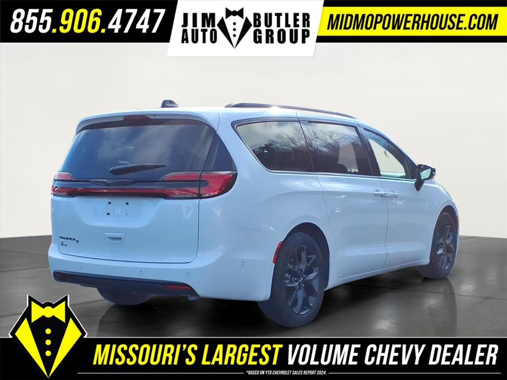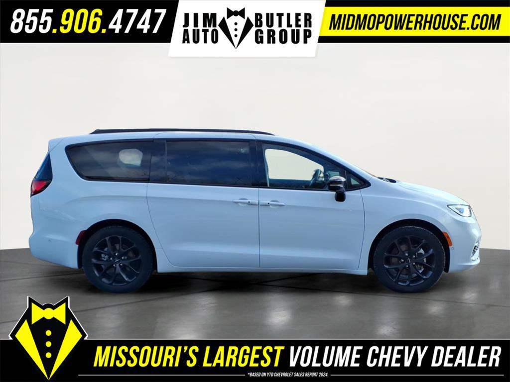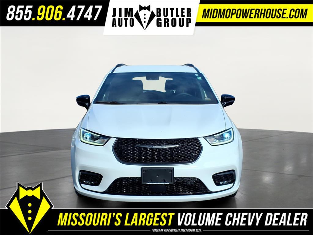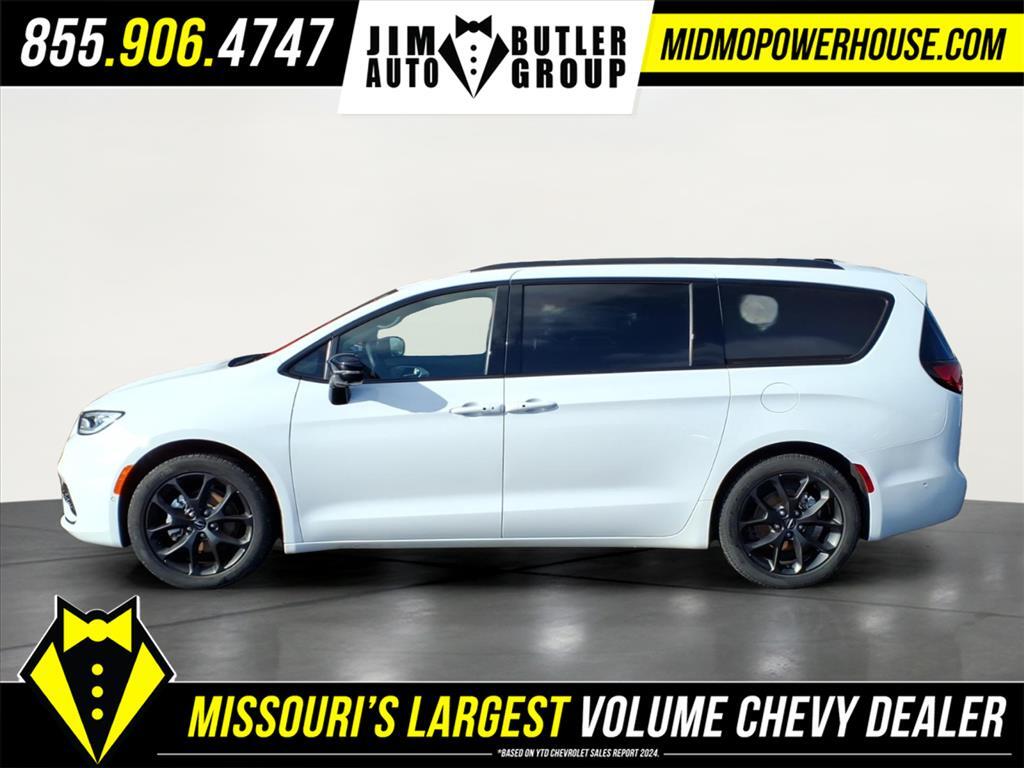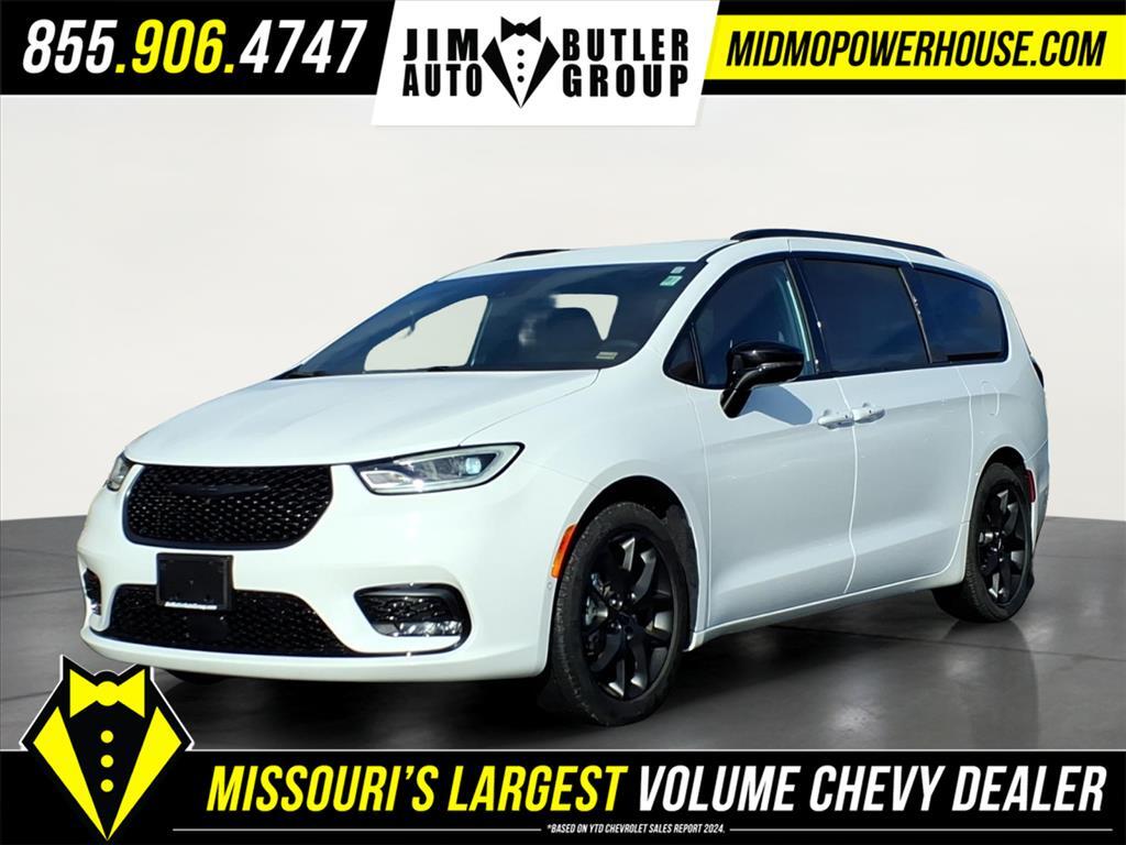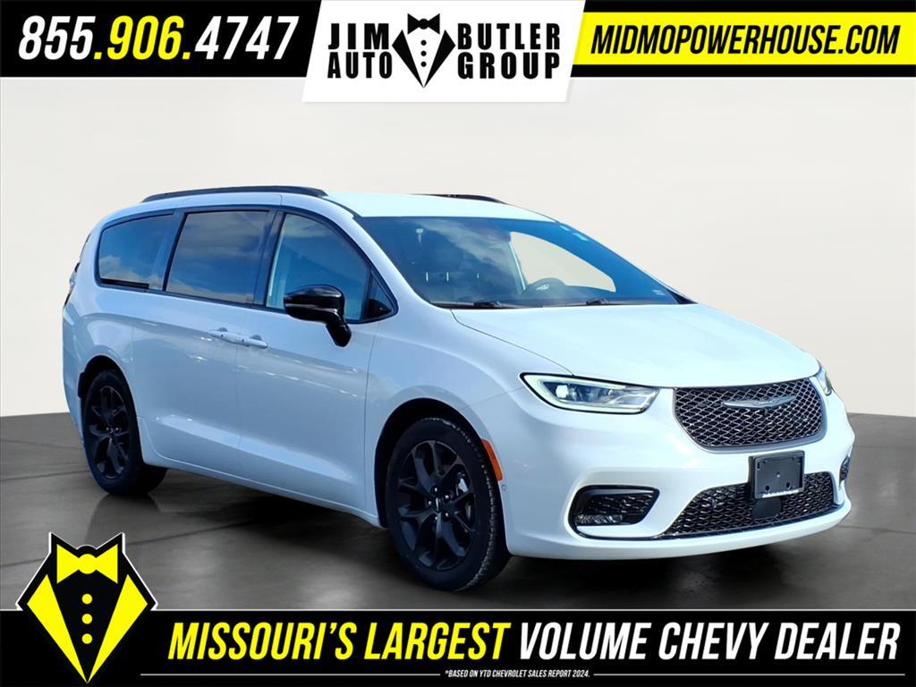 Clean CARFAX. CARFAX One-Owner. Priced below KBB Fair Purchase Price! Bright White Clearcoat 2024 Chrysler Pacifica Touring L 3.6L V6 24V VVT FWD 9-Speed 948TE Automatic Odometer is 34278 miles below market average! 19/28 City/Highway MPG Want to find out more Schedule a test drive today! Jim Butler is the Used Car Powerhouse! Please call today (800) 688-1925. Proudly serving: Linn, Jefferson City, Loose Creek, Owensville, Gerald, Washington, Hermann, Chamois, Belle, St. James, Vienna, Freeburg, Westphalia, Meta, St. Elizabeth, St. Thomas, Wardsville, Bland, Rich Fountain, Koeltztown, Argyle, Taos, Eugene, Russellville, Brazito, Lohman, St. Martins, Centertown, Holts Summit, New Bloomfield, Ashland, Fulton, and all of Missouri and beyond! We are the CHEVY POWERHOUSE!!Quick Order Package 27L, S Appearance Package (Anodized Ice Cave Accents, Anodized Ink Badging, Black Day Light Opening Moldings, Black Stow N Place Roof Rack, Caprice Leatherette w/S Logo, Piano Black Interior Accents, Premium Fascia Upper/Lower Grille w/Black Surround, Premium Rear Fascia Black, S Badge, and Wheels: 20x 7.5S-Model Aluminum Design 1), Safety Sphere (360 Surround View Camera System, Parallel & Perpendicular Park Assist w/Stop, and ParkSense Front/Rear Park Assist w/Stop), 10.1Touchscreen Display, 17x 7.0Aluminum Wheels, 3.25 Axle Ratio, 3rd row seats: split-bench, 4-Wheel Disc Brakes, 6 Speakers, ABS brakes, Air Conditioning, Alloy wheels, AM/FM radio: SiriusXM, Apple CarPlay, Apple CarPlay/Android Auto, Automatic temperature control, Black Seats, Brake assist, Bumpers: body-color, Caprice Leatherette Bucket Seats, Compass, Delay-off headlights, Disassociated Touchscreen Display, Driver door bin, Driver vanity mirror, Drivers Seat Mounted Armrest, Dual front impact airbags, Dual front side impact airbags, Electronic Stability Control, Four wheel independent suspension, Front anti-roll bar, Front Bucket Seats, Front dual zone A/C, Front fog lights, Front reading lights, Fully automatic headlights, Google Android Auto, GPS Antenna Input, Heated door mirrors, Heated front seats, Heated steering wheel, Illuminated entry, Integrated Active Noise Cancellation, Integrated Center Stack Radio, Knee airbag, Low tire pressure warning, Memory seat, Occupant sensing airbag, Outside temperature display, Overhead airbag, Overhead console, Panic alarm, ParkView Rear Back-Up Camera, Passenger door bin, Passenger seat mounted armrest, Passenger vanity mirror, Power door mirrors, Pow