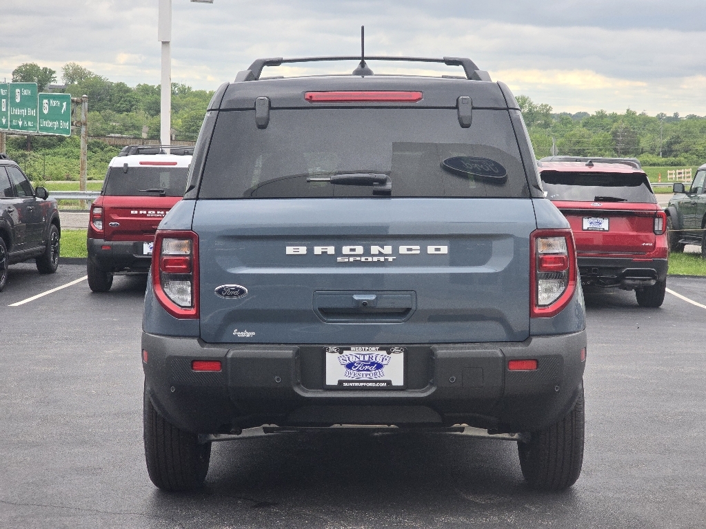 Suntrup Ford now offers Lifetime Powertrain Protection on all eligible New and Pre-Owned Vehicles. It's no secret that people are keeping their vehicles longer and driving them farther than ever before. Because we want you to be our customer for life, our Ford dealership in St. Louis, MO is proud to provide Lifetime Powertrain Protection on our vehicles at no additional cost. We want you to have the peace of mind that comes from knowing you are covered for the cost of critical mechanical breakdowns. See dealer for details. $8,270 off MSRP! 2025 Ford Bronco Sport Outer Banks 4-Wheel Disc Brakes, 6 Speakers, ABS brakes, Air Conditioning, Alloy wheels, AM/FM radio: SiriusXM, AM/FM Stereo, Auto High-beam Headlights, Auto-dimming Rear-View mirror, Automatic temperature control, Brake assist, Compass, Delay-off headlights, Driver door bin, Driver vanity mirror, Dual front impact airbags, Dual front side impact airbags, Electronic Stability Control, Emergency communication system: SYNC 4 911 Assist, Four wheel independent suspension, Front anti-roll bar, Front Bucket Seats, Front Center Armrest, Front Driver/Passenger Seat Back Map Pockets, Front dual zone A/C, Front fog lights, Front reading lights, Fully automatic headlights, Garage door transmitter, Heated door mirrors, Heated front seats, Heated steering wheel, Illuminated entry, Knee airbag, Low tire pressure warning, Memory seat, Occupant sensing airbag, Outside temperature display, Overhead airbag, Overhead console, Panic alarm, Passenger door bin, Passenger vanity mirror, Power door mirrors, Power driver seat, Power passenger seat, Power steering, Power windows, Premium Trimmed Front Bucket Seats w/Ebony/Roast, Radio data system, Rain sensing wipers, Rear anti-roll bar, Rear Parking Sensors, Rear reading lights, Rear seat center armrest, Rear window defroster, Rear window wiper, Remote keyless entry, Security system, SiriusXM, Speed control, Speed-sensing steering, Speed-Sensitive Wipers, Split folding rear seat, Steering wheel mounted audio controls, SYNC 4 w/Enhanced Voice Recognition, Tachometer, Telescoping steering wheel, Tilt steering wheel, Traction control, Trip computer, Variably intermittent wipers, Wheels: 18 Ebony Black-Painted Aluminum. Azure Gray Metallic 4WD 8-Speed Automatic 1.5L EcoBoost25/30 City/Highway MPG