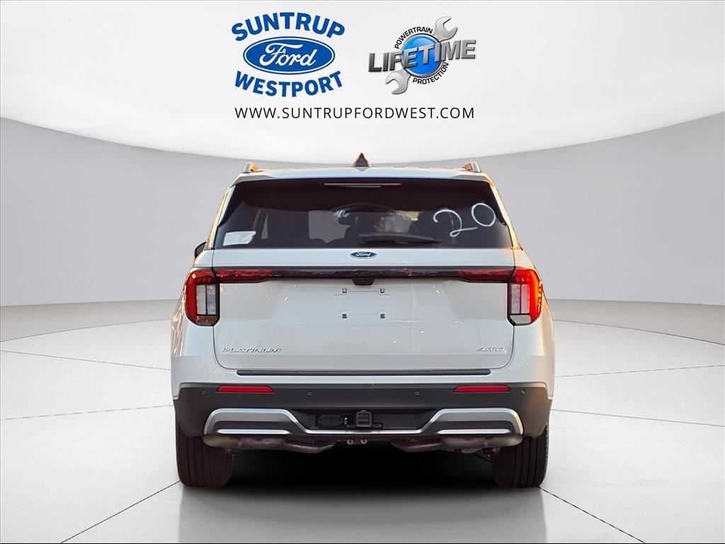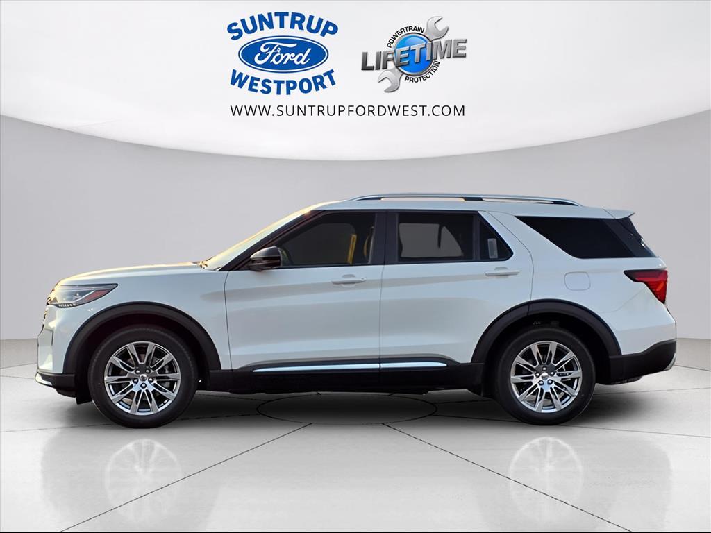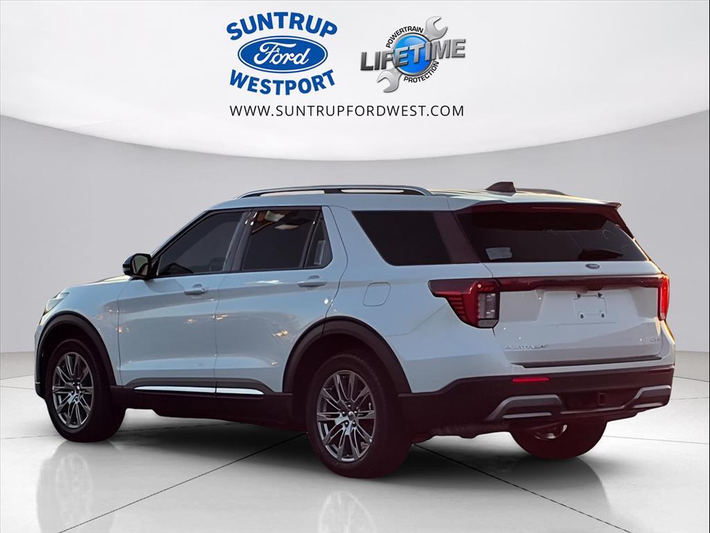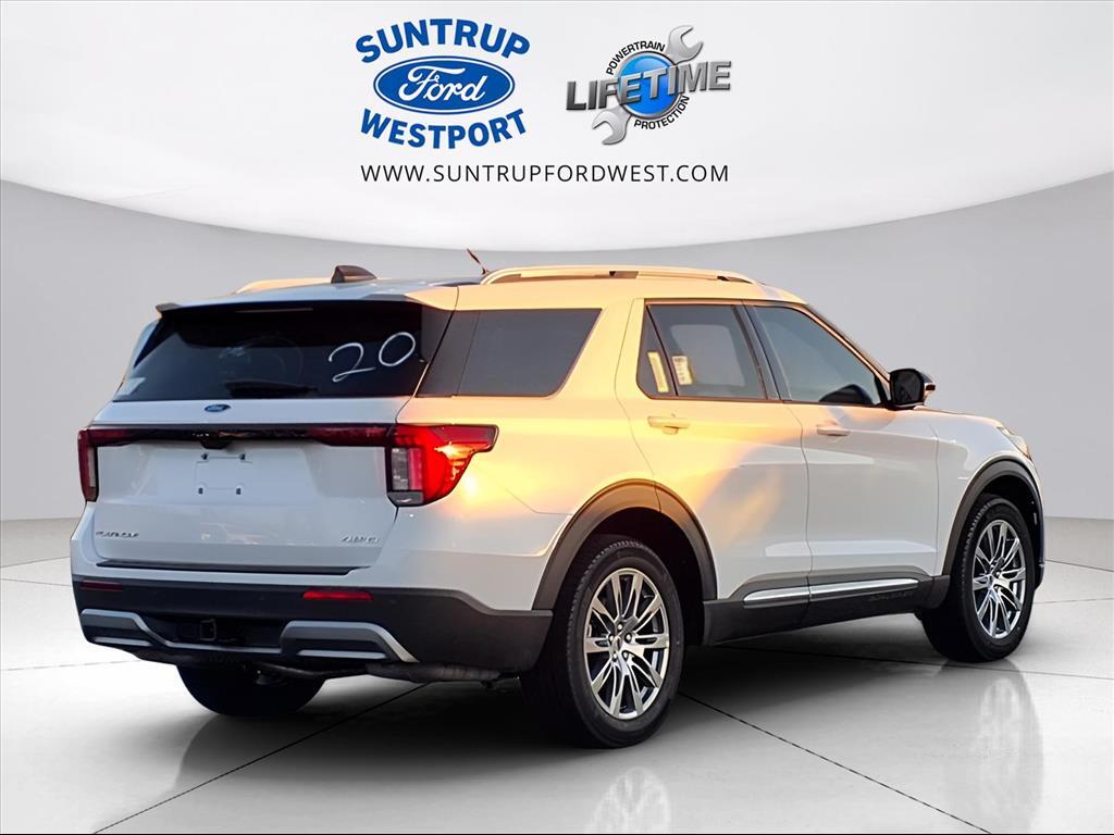Suntrup Ford now offers Lifetime Powertrain Protection on all eligible New and Pre-Owned Vehicles. It's no secret that people are keeping their vehicles longer and driving them farther than ever before. Because we want you to be our customer for life, our Ford dealership in St. Louis, MO is proud to provide Lifetime Powertrain Protection on our vehicles at no additional cost. We want you to have the peace of mind that comes from knowing you are covered for the cost of critical mechanical breakdowns. See dealer for details. $5,686 off MSRP! 2026 Ford Explorer Platinum 4WD, 14 Speakers, 3rd row seats: bench, 4-Wheel Disc Brakes, ABS brakes, ActiveX Trimmed Captain's Chairs, Air Conditioning, Alloy wheels, AM/FM radio: SiriusXM with 360L, Apple CarPlay/Android Auto, Auto High-beam Headlights, Auto-dimming door mirrors, Auto-dimming Rear-View mirror, Automatic temperature control, Brake assist, Bumpers: body-color, Compass, Delay-off headlights, Driver door bin, Driver vanity mirror, Dual front impact airbags, Dual front side impact airbags, Electronic Stability Control, Emergency communication system: 911 Assist, Equipment Group 600A Standard Package, Exterior Parking Camera Rear, Four wheel independent suspension, Front anti-roll bar, Front Bucket Seats, Front Center Armrest, Front dual zone A/C, Front fog lights, Front License Plate Bracket, Front reading lights, Fully automatic headlights, Garage door transmitter, Heated door mirrors, Heated front seats, Heated rear seats, Heated steering wheel, Illuminated entry, Knee airbag, Leather steering wheel, Low tire pressure warning, Memory seat, Navigation System, Occupant sensing airbag, Outside temperature display, Overhead airbag, Overhead console, Panic alarm, Passenger door bin, Passenger vanity mirror, Power door mirrors, Power driver seat, Power Liftgate, Power passenger seat, Power steering, Power windows, Radio data system, Rain sensing wipers, Rear air conditioning, Rear anti-roll bar, Rear reading lights, Rear window defroster, Rear window wiper, Remote keyless entry, SecuriCode Keyless Entry Keypad, Security system, Speed control, Speed-sensing steering, Speed-Sensitive Wipers, Split folding rear seat, Spoiler, Steering wheel mounted audio controls, Tachometer, Telescoping steering wheel, Tilt steering wheel, Traction control, Trip computer, Turn signal indicator mirrors, Variably intermittent wipers, Ventilated front seats, Wheels: 20 Luster Nickel-Painted Aluminum, 4WD. White Metallic 4WD 10-Sp