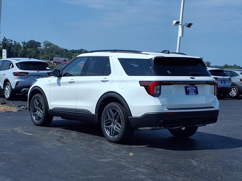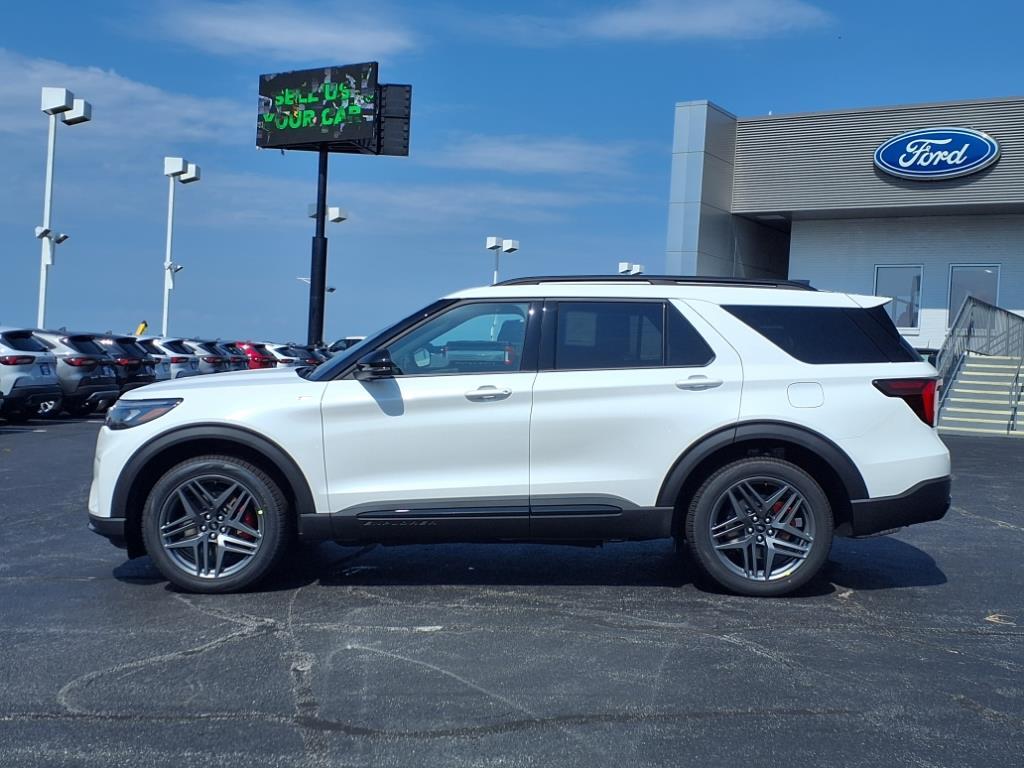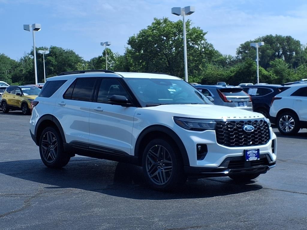 Suntrup Ford now offers Lifetime Powertrain Protection on all eligible New and Pre-Owned Vehicles. It's no secret that people are keeping their vehicles longer and driving them farther than ever before. Because we want you to be our customer for life, our Ford dealership in St. Louis, MO is proud to provide Lifetime Powertrain Protection on our vehicles at no additional cost. We want you to have the peace of mind that comes from knowing you are covered for the cost of critical mechanical breakdowns. See dealer for details. $7,422 off MSRP! 2025 Ford Explorer ST-Line ** APPLE CARPLAY **, ** ANDROID AUTO **, Explorer ST-Line, 4D Sport Utility, 4WD, 110V/150W AC Power Outlet, 2nd Row Captain's Chairs w/E-Z Entry & Armrest, 2nd Row Heated Seats, 3rd row seats: bench, Ambient Lighting, Apple CarPlay/Android Auto, Auto-Dimming Interior Rear-View Mirror, Brake assist, Electronic Stability Control, Equipment Group 300A Standard Package, Exterior Parking Camera Rear, Four wheel independent suspension, Front fog lights, Fully automatic headlights, Heated front seats, Memory Driver's Seat, Navigation System, Panoramic Vista Roof w/Power Shade, Performance Brakes, Power Liftgate, Power-Folding Sideview Mirrors w/Autofold, Premium Package, Radio: B&O Sound System by Bang & Olufsen, Rain-Sensing Wipers (Front Only), Red Painted Perf Front & Rear Brake Calipers, Remote keyless entry, Security system, Speed control, ST-Line Street Pack, Steering wheel mounted audio controls, Traction control, Wheels: 21 Magnetite-Painted Aluminum, Wireless Charging Pad, 10 Speakers, 3.58 Non-Limited Slip Rear Axle, 4-Wheel Disc Brakes, ABS brakes, Air Conditioning, Auto High-beam Headlights, Automatic temperature control, Bumpers: body-color, Compass, Delay-off headlights, Driver door bin, Driver vanity mirror, Dual front impact airbags, Dual front side impact airbags, Emergency communication system: 911 Assist, Front & 2nd Rows Floor Liners w/Carpet Floor Mats, Front anti-roll bar, Front Bucket Seats, Front Center Armrest, Front dual zone A/C, Front License Plate Bracket, Front reading lights, Garage door transmitter, Heated door mirrors, Heated steering wheel, Heated Unique Cloth Captain's Chairs, Illuminated entry, Knee airbag, Leather steering wheel, Low tire pressure warning, Occupant sensing airbag, Outside temperature display, Overhead airbag, Overhead console, Panic alarm, Passenger door bin, Passenger vanity mirror, Power door mirrors, Power driver seat, Power passenger seat,