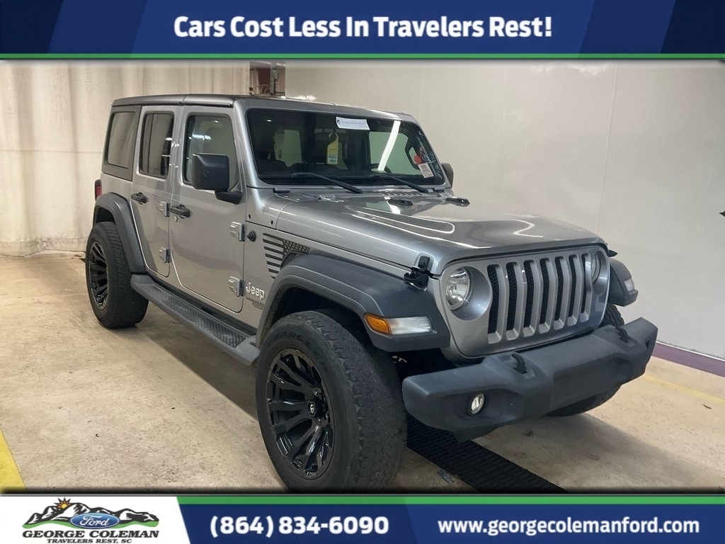 2018 Jeep Wrangler Unlimited Sport S Wrangler Unlimited Sport S, 4D Sport Utility, 3.6L V6 24V VVT, 8-Speed Automatic, 4WD, Billet Silver Metallic Clearcoat, Black Cloth, 8 Speakers, Air Conditioning, Automatic Headlamps, Black 3-Piece Hard Top, Convenience Group, Deep Tint Sunscreen Windows, Delay-off headlights, Freedom Panel Storage Bag, Front 1-Touch Down Power Windows, Front Bucket Seats, Leather Wrapped Steering Wheel, ParkView Rear Back-Up Camera, Power Heated Mirrors, Quick Order Package 24S Sport S, Radio: Uconnect 3 w/5Display, Rear Window Defroster, Rear Window Wiper/Washer, Remote Keyless Entry, Security Alarm, Speed Sensitive Power Locks, Sun Visors w/Illuminated Vanity Mirrors, Universal Garage Door Opener, Wheels: 17x 7.5Tech Silver Aluminum. Clean CARFAX. Odometer is 13961 miles below market average! Unlimited Sport S Certification Program Details: Ford Blue Advantage: Blue Certified * 139 Point Inspection * Transferable Warranty * Vehicle History * Warranty Deductible: $100 * Roadside Assistance * Limited Warranty: 3 Month/4,000 Mile (whichever comes first) after new car warranty expires or from certified purchase date * and 11,000 FordPass Rewards Points to use toward first maintenance visit Awards: * 2018 KBB.com 10 Most Awarded Brands *Cars Cost Less In Travelers Rest!! **Have A FREE VEHICLE HISTORY REPORT sent directly to your email upon request or view IMMEDIATELY at our home website www.georgecolemanford.com ** Come by soon to drive this vehicle or EMAIL SMOSTELLER@COLEMANFORD.NET for more information!! George Coleman Ford has been operating continuously in our present location since 1930!!