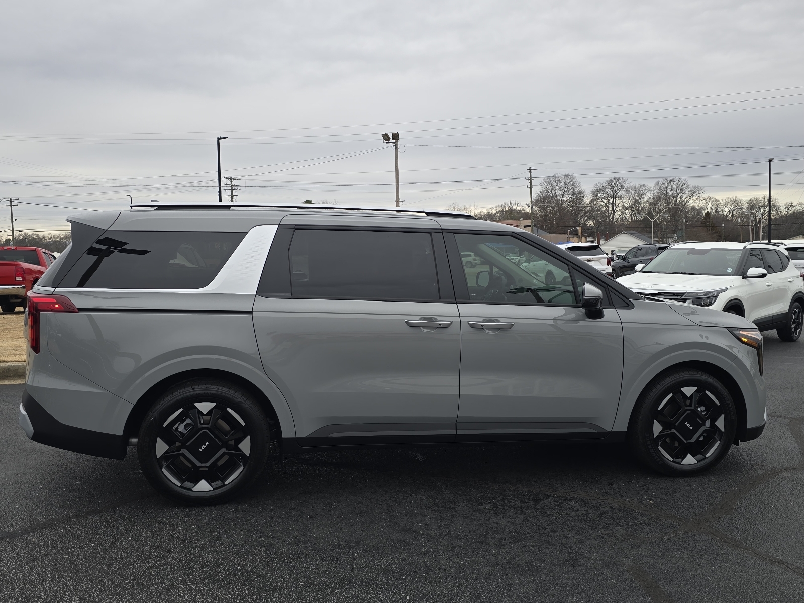 2026 Kia Carnival EX Ceramic Silver 3.51 Axle Ratio, 3rd row seats: split-bench, 4-Wheel Disc Brakes, 8 Speakers, ABS brakes, Air Conditioning, Alloy wheels, AM/FM radio: SiriusXM, Apple CarPlay & Android Auto, Artificial Leather Seat Trim, Auto High-beam Headlights, Auto-Dimming Mirror with HomeLink, Automatic temperature control, Brake assist, Bumpers: body-color, Carpeted Floor Mats (8-Passenger), Compass, Delay-off headlights, Driver door bin, Driver vanity mirror, Dual front impact airbags, Dual front side impact airbags, Electronic Stability Control, Emergency communication system, Exterior Parking Camera Rear, Four wheel independent suspension, Front anti-roll bar, Front Bucket Seats, Front Center Armrest, Front dual zone A/C, Front reading lights, Fully automatic headlights, Heated door mirrors, Heated Front Bucket Seats, Heated front seats, Illuminated entry, Knee airbag, Leather Shift Knob, Leather steering wheel, Low tire pressure warning, Memory seat, Navigation System, Occupant sensing airbag, Outside temperature display, Overhead airbag, Overhead console, Panic alarm, Passenger door bin, Passenger vanity mirror, Power door mirrors, Power driver seat, Power Liftgate, Power passenger seat, Power steering, Power windows, Radio: AM/FM/HD Audio System, Rear air conditioning, Rear anti-roll bar, Rear reading lights, Rear window defroster, Rear window wiper, Reclining 3rd row seat, Remote keyless entry, Security system, Speed control, Speed-sensing steering, Split folding rear seat, Spoiler, Steering wheel mounted audio controls, Tachometer, Telescoping steering wheel, Tilt steering wheel, Traction control, Trip computer, Turn signal indicator mirrors, Variably intermittent wipers, Wheels: 7.5J x 19Machine-Finished Alloy. 4D Passenger Van FWD 8-Speed Automatic V6 18/26 City/Highway MPG 18/26 City/Highway MPG Thank you for checking out our website at www.KiaOfGreer.com where we help you find the best vehicle that meets your needs wrapped in a deal you will not want to walk away from. If you have any questions please call us at 864-448-0347 or visit us in person at Fred Kia of Greer located at 14345 E. Wade Hampton Blvd Greer, SC 29651 to learn more! Qualifying New or Non-Certified Used Kia Vehicles bought and serviced here receive our FULL ANDERSON FAMILY PLAN at NO COST to YOU! Our full family plan includes: Peace of Mind 3-Day Vehicle Exchange*Lifetime Oil Changes*Service Loaners*Loyalty Discounts after 50,000 miles All prices exclude tax, tag,