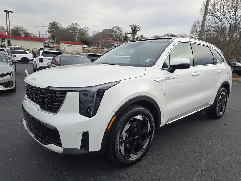 2026 Kia Sorento Hybrid EX Snow White 3rd row seats: split-bench, 4-Wheel Disc Brakes, 6 Speakers, ABS brakes, Air Conditioning, Alloy wheels, AM/FM radio: SiriusXM, Apple CarPlay & Android Auto, Auto High-beam Headlights, Auto-dimming Rear-View mirror, Automatic temperature control, Brake assist, Bumpers: body-color, Delay-off headlights, Driver door bin, Driver vanity mirror, Dual front impact airbags, Dual front side impact airbags, Electronic Stability Control, Emergency communication system: 911 Connect, Exterior Parking Camera Rear, Four wheel independent suspension, Front anti-roll bar, Front Bucket Seats, Front Center Armrest, Front dual zone A/C, Front fog lights, Front reading lights, Fully automatic headlights, Heated door mirrors, Heated Front Bucket Seats, Heated front seats, Illuminated entry, Knee airbag, Leather steering wheel, Low tire pressure warning, Navigation System, Occupant sensing airbag, Outside temperature display, Overhead airbag, Overhead console, Panic alarm, Passenger door bin, Passenger vanity mirror, Power door mirrors, Power driver seat, Power Liftgate, Power passenger seat, Power steering, Power windows, Radio data system, Radio: AM/FM/SiriusXM Audio System, Rear anti-roll bar, Rear reading lights, Rear seat center armrest, Rear side impact airbag, Rear window defroster, Rear window wiper, Remote keyless entry, Security system, Speed control, Speed-sensing steering, Split folding rear seat, Spoiler, Steering wheel mounted audio controls, SynTex Artificial Leather Seat Trim, Tachometer, Telescoping steering wheel, Tilt steering wheel, Traction control, Trip computer, Turn signal indicator mirrors, Variably intermittent wipers, Wheels: 19Machine-Finished Aero Alloy. 4D Sport Utility FWD 6-Speed Automatic 1.6L Turbo GDI 4-Cylinder 37/36 City/Highway MPG 37/36 City/Highway MPG Thank you for checking out our website at www.KiaOfGreer.com where we help you find the best vehicle that meets your needs wrapped in a deal you will not want to walk away from. If you have any questions please call us at 864-448-0347 or visit us in person at Fred Kia of Greer located at 14345 E. Wade Hampton Blvd Greer, SC 29651 to learn more! Qualifying New or Non-Certified Used Kia Vehicles bought and serviced here receive our FULL ANDERSON FAMILY PLAN at NO COST to YOU! Our full family plan includes: Peace of Mind 3-Day Vehicle Exchange*Lifetime Oil Changes*Service Loaners*Loyalty Discounts after 50,000 miles All prices exclude tax, tag, license,