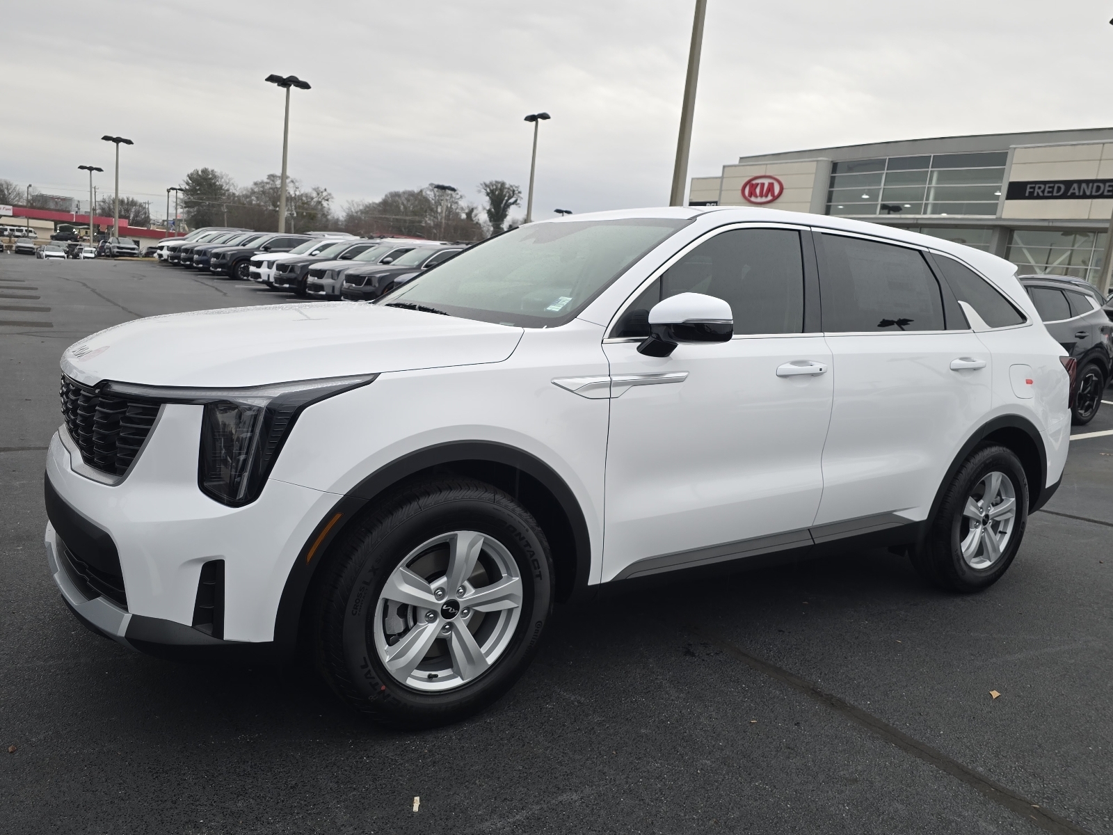 2026 Kia Sorento LX Glacial White Pearl 17Alloy Wheels, 3rd row seats: split-bench, 4-Wheel Disc Brakes, 6 Speakers, ABS brakes, Air Conditioning, Alloy wheels, AM/FM radio: SiriusXM, Apple CarPlay & Android Auto, Auto High-beam Headlights, Brake assist, Bumpers: body-color, Cloth Seat Trim, Delay-off headlights, Driver door bin, Driver vanity mirror, Dual front impact airbags, Dual front side impact airbags, Electronic Stability Control, Emergency communication system: 911 Connect, Exterior Parking Camera Rear, Four wheel independent suspension, Front anti-roll bar, Front Bucket Seats, Front Center Armrest, Front reading lights, Fully automatic headlights, Heated door mirrors, Illuminated entry, Knee airbag, Leather Shift Knob, Leather steering wheel, Low tire pressure warning, Occupant sensing airbag, Outside temperature display, Overhead airbag, Overhead console, Panic alarm, Passenger door bin, Passenger vanity mirror, Power door mirrors, Power steering, Power windows, Radio data system, Radio: AM/FM Standard Sound System, Rear anti-roll bar, Rear reading lights, Rear seat center armrest, Rear side impact airbag, Rear window defroster, Rear window wiper, Remote keyless entry, Security system, Speed control, Speed-sensing steering, Split folding rear seat, Spoiler, Steering wheel mounted audio controls, Tachometer, Telescoping steering wheel, Tilt steering wheel, Traction control, Trip computer, Turn signal indicator mirrors, Variably intermittent wipers. 4D Sport Utility FWD 8-Speed Automatic 2.5L I4 DGI DOHC 16V LEV3-SULEV30 191hp 23/31 City/Highway MPG 23/31 City/Highway MPG Thank you for checking out our website at www.KiaOfGreer.com where we help you find the best vehicle that meets your needs wrapped in a deal you will not want to walk away from. If you have any questions please call us at 864-448-0347 or visit us in person at Fred Kia of Greer located at 14345 E. Wade Hampton Blvd Greer, SC 29651 to learn more! Qualifying New or Non-Certified Used Kia Vehicles bought and serviced here receive our FULL ANDERSON FAMILY PLAN at NO COST to YOU! Our full family plan includes: Peace of Mind 3-Day Vehicle Exchange*Lifetime Oil Changes*Service Loaners*Loyalty Discounts after 50,000 miles All prices exclude tax, tag, license, title, and registration for your state; and our admin ($499) fees. All vehicle internet pricing is subject to change and requires standard financing. From time to time in the transfer of data on the internet, there are errors. Dea
