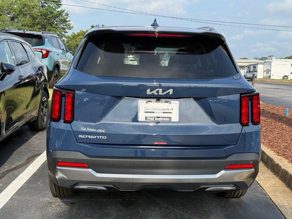 2025 Kia Sorento S Midnight Lake Blue 3rd row seats: split-bench, 4-Wheel Disc Brakes, 6 Speakers, ABS brakes, Air Conditioning, Alloy wheels, AM/FM radio: SiriusXM, Apple CarPlay & Android Auto, Auto High-beam Headlights, Auto-Dimming Mirror w/HomeLink, Automatic temperature control, Brake assist, Bumpers: body-color, Cargo Tray, Carpeted Floor Mats, Delay-off headlights, Driver door bin, Driver vanity mirror, Dual front impact airbags, Dual front side impact airbags, Electronic Stability Control, Emergency communication system: 911 Connect, Exterior Parking Camera Rear, Four wheel independent suspension, Front anti-roll bar, Front Bucket Seats, Front Center Armrest, Front dual zone A/C, Front reading lights, Fully automatic headlights, Heated door mirrors, Heated Front Bucket Seats, Heated front seats, Illuminated entry, Knee airbag, Leather Shift Knob, Leather steering wheel, LED Interior Lighting, Low tire pressure warning, Navigation System, Occupant sensing airbag, Outside temperature display, Overhead airbag, Overhead console, Panic alarm, Panoramic Power Sunroof w/Power Sunshade, Panoramic Sunroof Package, Passenger door bin, Passenger vanity mirror, Power door mirrors, Power driver seat, Power steering, Power windows, Radio data system, Radio: AM/FM Standard Sound System, Rear anti-roll bar, Rear reading lights, Rear seat center armrest, Rear side impact airbag, Rear window defroster, Rear window wiper, Remote keyless entry, Security system, Speed control, Speed-sensing steering, Split folding rear seat, Spoiler, Steering wheel mounted audio controls, SynTex Artificial Leather Seat Trim, Tachometer, Telescoping steering wheel, Tilt steering wheel, Traction control, Trip computer, Turn signal indicator mirrors, Variably intermittent wipers, Wheels: 18Gloss Black Alloy. 4D Sport Utility FWD 8-Speed Automatic 2.5L I4 DGI DOHC 16V LEV3-SULEV30 191hp 23/31 City/Highway MPG 23/31 City/Highway MPG Thank you for checking out our website at www.KiaOfGreer.com where we help you find the best vehicle that meets your needs wrapped in a deal you will not want to walk away from. If you have any questions please call us at 864-448-0347 or visit us in person at Fred Kia of Greer located at 14345 E. Wade Hampton Blvd Greer, SC 29651 to learn more! Qualifying New or Non-Certified Used Kia Vehicles bought and serviced here receive our FULL ANDERSON FAMILY PLAN at NO COST to YOU! Our full family plan includes: Peace of Mind 3-Day Vehicle Exchange*Lifetime Oil Chan