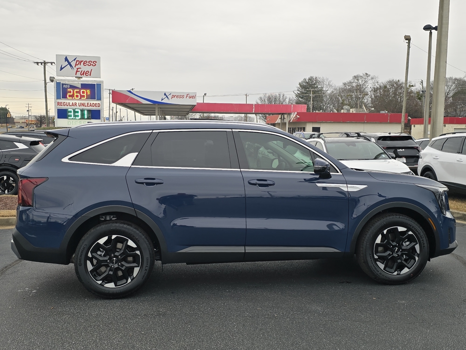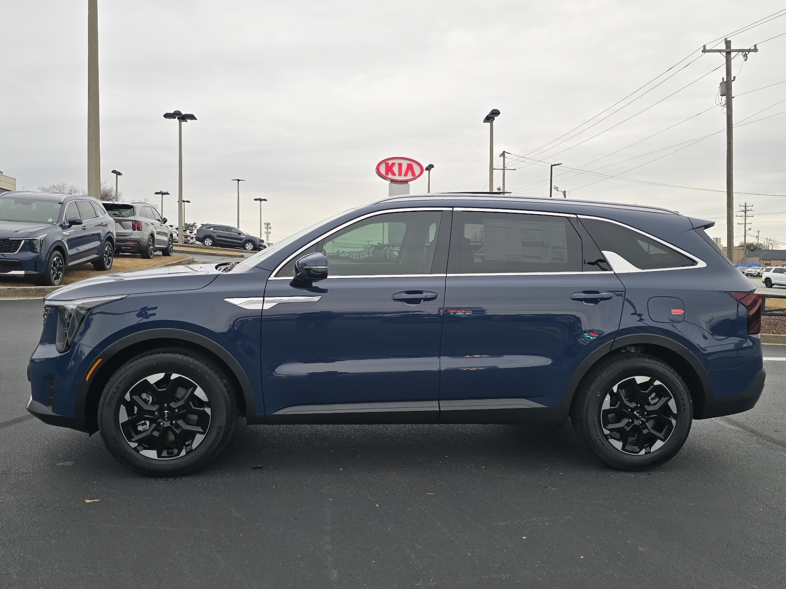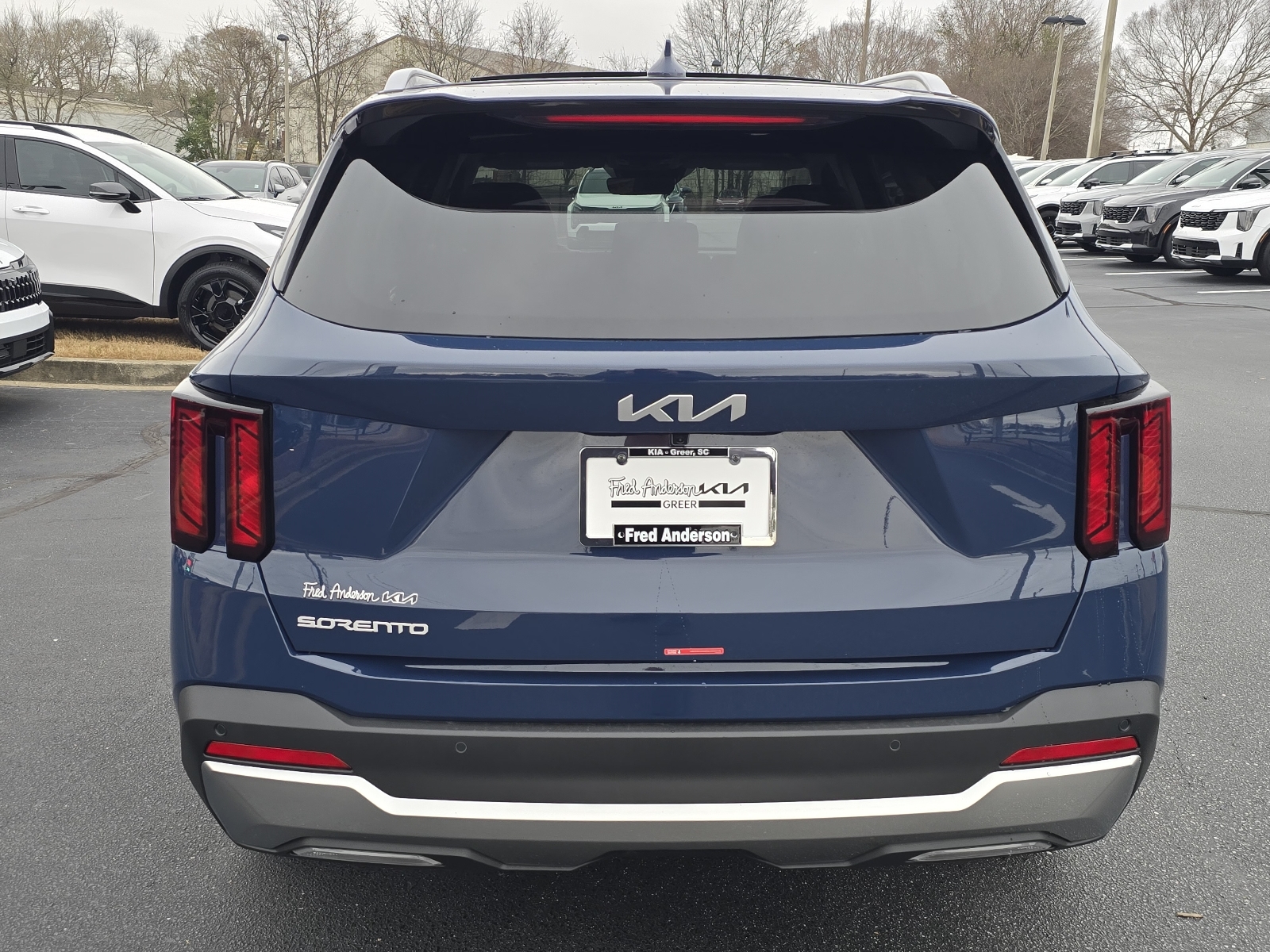 2026 Kia Sorento S Midnight Lake Blue 3rd row seats: split-bench, 4-Wheel Disc Brakes, 6 Speakers, ABS brakes, Air Conditioning, Alloy wheels, AM/FM radio: SiriusXM, Apple CarPlay & Android Auto, Auto High-beam Headlights, Auto-Dimming Mirror w/HomeLink, Automatic temperature control, Brake assist, Bumpers: body-color, Carpeted Floor Mats, Delay-off headlights, Driver door bin, Driver vanity mirror, Dual front impact airbags, Dual front side impact airbags, Electronic Stability Control, Emergency communication system: 911 Connect, Exterior Parking Camera Rear, Four wheel independent suspension, Front anti-roll bar, Front Bucket Seats, Front Center Armrest, Front dual zone A/C, Front reading lights, Full-Length One-Touch Panoroof w/Sliding Sunshade, Fully automatic headlights, Heated door mirrors, Heated Front Bucket Seats, Heated front seats, Illuminated entry, Knee airbag, Leather Shift Knob, Leather steering wheel, LED Interior Lighting, Low tire pressure warning, Occupant sensing airbag, Outside temperature display, Overhead airbag, Overhead console, Panic alarm, Passenger door bin, Passenger vanity mirror, Power door mirrors, Power driver seat, Power steering, Power windows, Radio data system, Radio: AM/FM Standard Sound System, Rear anti-roll bar, Rear reading lights, Rear seat center armrest, Rear side impact airbag, Rear window defroster, Rear window wiper, Remote keyless entry, S Panoramic Sunroof Package, Security system, Speed control, Speed-sensing steering, Split folding rear seat, Spoiler, Steering wheel mounted audio controls, SynTex Artificial Leather Seat Trim, Tachometer, Telescoping steering wheel, Tilt steering wheel, Traction control, Trip computer, Turn signal indicator mirrors, Variably intermittent wipers, Wheels: 18Gloss Black Alloy. 4D Sport Utility FWD 8-Speed Automatic 2.5L I4 DGI DOHC 16V LEV3-SULEV30 191hp 23/31 City/Highway MPG 23/31 City/Highway MPG Thank you for checking out our website at www.KiaOfGreer.com where we help you find the best vehicle that meets your needs wrapped in a deal you will not want to walk away from. If you have any questions please call us at 864-448-0347 or visit us in person at Fred Kia of Greer located at 14345 E. Wade Hampton Blvd Greer, SC 29651 to learn more! Qualifying New or Non-Certified Used Kia Vehicles bought and serviced here receive our FULL ANDERSON FAMILY PLAN at NO COST to YOU! Our full family plan includes: Peace of Mind 3-Day Vehicle Exchange*Lifetime Oil Changes*Service Loaners*