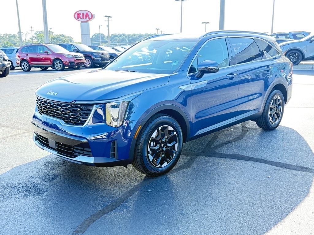 2025 Kia Sorento S Midnight Lake Blue 3rd row seats: split-bench, 4-Wheel Disc Brakes, 6 Speakers, ABS brakes, Air Conditioning, Alloy wheels, AM/FM radio: SiriusXM, Apple CarPlay & Android Auto, Auto High-beam Headlights, Auto-Dimming Mirror w/HomeLink, Automatic temperature control, Brake assist, Bumpers: body-color, Cargo Net, Carpeted Floor Mats, Delay-off headlights, Driver door bin, Driver vanity mirror, Dual front impact airbags, Dual front side impact airbags, Electronic Stability Control, Emergency communication system: 911 Connect, Exterior Parking Camera Rear, Four wheel independent suspension, Front anti-roll bar, Front Bucket Seats, Front Center Armrest, Front dual zone A/C, Front reading lights, Fully automatic headlights, Heated door mirrors, Heated Front Bucket Seats, Heated front seats, Illuminated entry, Knee airbag, Leather Shift Knob, Leather steering wheel, LED Interior Lighting, Low tire pressure warning, Navigation System, Occupant sensing airbag, Outside temperature display, Overhead airbag, Overhead console, Panic alarm, Panoramic Power Sunroof w/Power Sunshade, Panoramic Sunroof Package, Passenger door bin, Passenger vanity mirror, Power door mirrors, Power driver seat, Power steering, Power windows, Radio data system, Radio: AM/FM Standard Sound System, Rear anti-roll bar, Rear reading lights, Rear seat center armrest, Rear side impact airbag, Rear window defroster, Rear window wiper, Remote keyless entry, Security system, Speed control, Speed-sensing steering, Split folding rear seat, Spoiler, Steering wheel mounted audio controls, SynTex Artificial Leather Seat Trim, Tachometer, Telescoping steering wheel, Tilt steering wheel, Traction control, Trip computer, Turn signal indicator mirrors, Variably intermittent wipers, Wheels: 18Gloss Black Alloy. 4D Sport Utility FWD 8-Speed Automatic 2.5L I4 DGI DOHC 16V LEV3-SULEV30 191hp 23/31 City/Highway MPG 23/31 City/Highway MPG Thank you for checking out our website at www.KiaOfGreer.com where we help you find the best vehicle that meets your needs wrapped in a deal you will not want to walk away from. If you have any questions please call us at 864-448-0347 or visit us in person at Fred Kia of Greer located at 14345 E. Wade Hampton Blvd Greer, SC 29651 to learn more! Qualifying New or Non-Certified Used Kia Vehicles bought and serviced here receive our FULL ANDERSON FAMILY PLAN at NO COST to YOU! Our full family plan includes: Peace of Mind 3-Day Vehicle Exchange*Lifetime Oil Chang