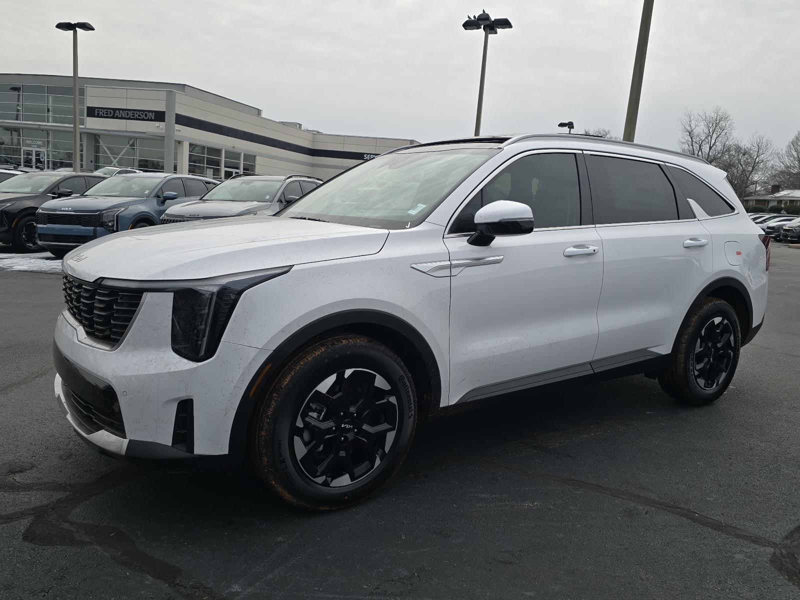 2026 Kia Sorento S Glacial White Pearl 3rd row seats: split-bench, 4-Wheel Disc Brakes, 6 Speakers, ABS brakes, Air Conditioning, Alloy wheels, AM/FM radio: SiriusXM, Apple CarPlay & Android Auto, Auto High-beam Headlights, Automatic temperature control, Brake assist, Bumpers: body-color, Delay-off headlights, Driver door bin, Driver vanity mirror, Dual front impact airbags, Dual front side impact airbags, Electronic Stability Control, Emergency communication system: 911 Connect, Exterior Parking Camera Rear, Four wheel independent suspension, Front anti-roll bar, Front Bucket Seats, Front Center Armrest, Front dual zone A/C, Front reading lights, Fully automatic headlights, Heated door mirrors, Heated Front Bucket Seats, Heated front seats, Illuminated entry, Knee airbag, Leather Shift Knob, Leather steering wheel, Low tire pressure warning, Occupant sensing airbag, Outside temperature display, Overhead airbag, Overhead console, Panic alarm, Passenger door bin, Passenger vanity mirror, Power door mirrors, Power driver seat, Power steering, Power windows, Radio data system, Radio: AM/FM Standard Sound System, Rear anti-roll bar, Rear reading lights, Rear seat center armrest, Rear side impact airbag, Rear window defroster, Rear window wiper, Remote keyless entry, Security system, Speed control, Speed-sensing steering, Split folding rear seat, Spoiler, Steering wheel mounted audio controls, SynTex Artificial Leather Seat Trim, Tachometer, Telescoping steering wheel, Tilt steering wheel, Traction control, Trip computer, Turn signal indicator mirrors, Variably intermittent wipers, Wheels: 18Gloss Black Alloy. 4D Sport Utility FWD 8-Speed Automatic 2.5L I4 DGI DOHC 16V LEV3-SULEV30 191hp 23/31 City/Highway MPG 23/31 City/Highway MPG Thank you for checking out our website at www.KiaOfGreer.com where we help you find the best vehicle that meets your needs wrapped in a deal you will not want to walk away from. If you have any questions please call us at 864-448-0347 or visit us in person at Fred Kia of Greer located at 14345 E. Wade Hampton Blvd Greer, SC 29651 to learn more! Qualifying New or Non-Certified Used Kia Vehicles bought and serviced here receive our FULL ANDERSON FAMILY PLAN at NO COST to YOU! Our full family plan includes: Peace of Mind 3-Day Vehicle Exchange*Lifetime Oil Changes*Service Loaners*Loyalty Discounts after 50,000 miles All prices exclude tax, tag, license, title, and registration for your state; and our admin ($499) fees. All vehicle i