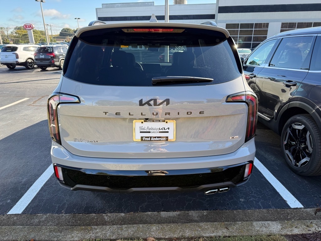 2025 Kia Telluride SX-Prestige X-Pro Wolf Gray 10 Speakers, 3rd row seats: split-bench, 4-Wheel Disc Brakes, ABS brakes, Air Conditioning, Alloy wheels, AM/FM radio: SiriusXM, Apple CarPlay & Android Auto, Auto High-beam Headlights, Auto-dimming Rear-View mirror, Auto-leveling suspension, Automatic temperature control, Brake assist, Bumpers: body-color, Carpeted Floor Mats, Compass, Delay-off headlights, Driver door bin, Driver vanity mirror, Dual front impact airbags, Dual front side impact airbags, Electronic Stability Control, Emergency communication system: 911 Connect, Exterior Parking Camera Rear, Folding Cargo Tray, Four wheel independent suspension, Front anti-roll bar, Front Bucket Seats, Front Center Armrest, Front dual zone A/C, Front fog lights, Front reading lights, Fully automatic headlights, Garage door transmitter: HomeLink, harman/kardon� Speakers, Heads-Up Display, Heated & Ventilated Front Bucket Seats, Heated door mirrors, Heated front seats, Heated rear seats, Heated steering wheel, Illuminated entry, Knee airbag, Leather Shift Knob, Leather steering wheel, Low tire pressure warning, Memory seat, Nappa Leather Seat Trim, Navigation System, Occupant sensing airbag, Outside temperature display, Overhead airbag, Overhead console, Panic alarm, Passenger door bin, Passenger vanity mirror, Power door mirrors, Power driver seat, Power Liftgate, Power moonroof, Power passenger seat, Power steering, Power windows, Radio data system, Radio: AM/FM Harman Kardon Audio System, Rain sensing wipers, Rear air conditioning, Rear anti-roll bar, Rear audio controls, Rear reading lights, Rear side impact airbag, Rear window defroster, Rear window wiper, Reclining 3rd row seat, Remote keyless entry, Security system, Speed control, Speed-sensing steering, Split folding rear seat, Spoiler, Steering wheel mounted audio controls, Tachometer, Telescoping steering wheel, Tilt steering wheel, Traction control, Trip computer, Turn signal indicator mirrors, Variably intermittent wipers, Ventilated front seats, Ventilated rear seats, Wheels: 18x 7.5Black Finish X-PRO Exclusive. 4D Sport Utility AWD 8-Speed Automatic 3.8L V6 DOHC 18/23 City/Highway MPG Thank you for checking out our website at www.KiaOfGreer.com where we help you find the best vehicle that meets your needs wrapped in a deal you will not want to walk away from. If you have any questions please call us at 864-448-0347 or visit us in person at Fred Kia of Greer located at 14345 E. Wade Hampton Blvd