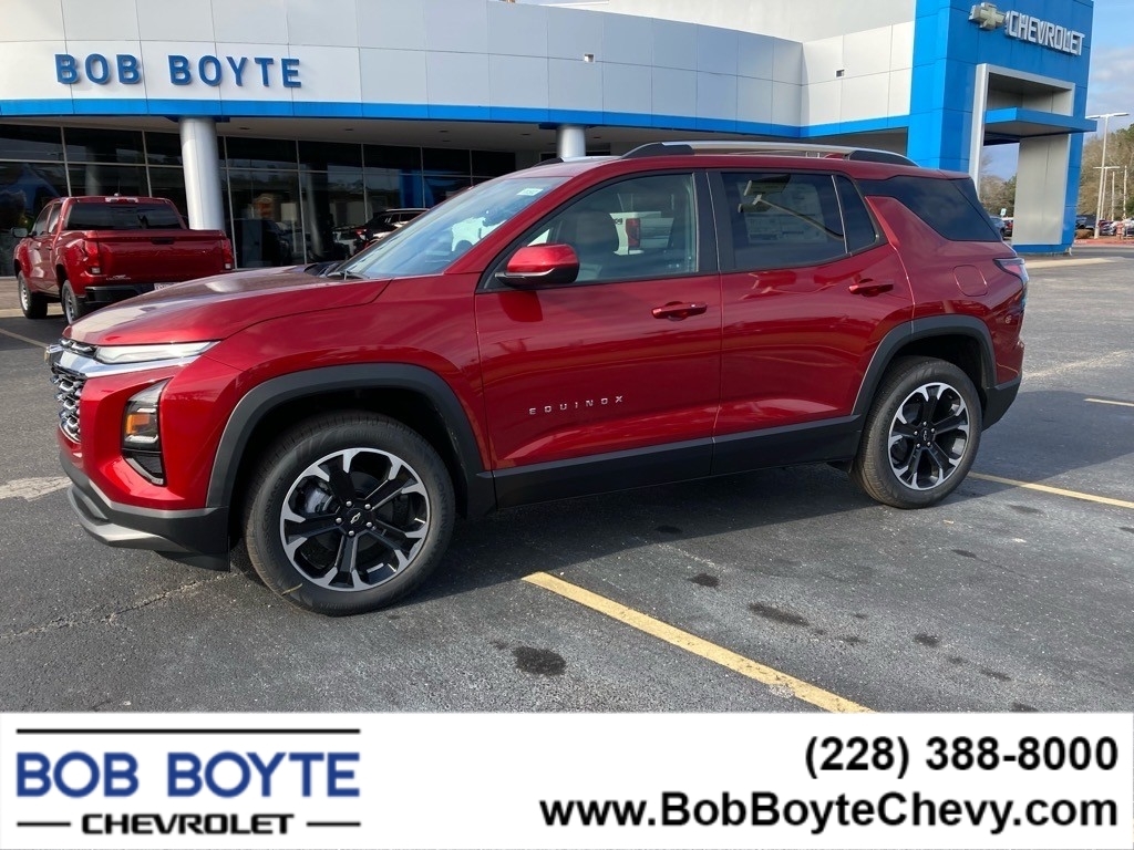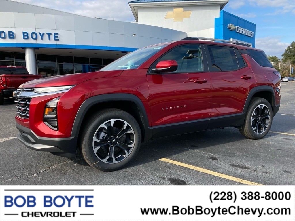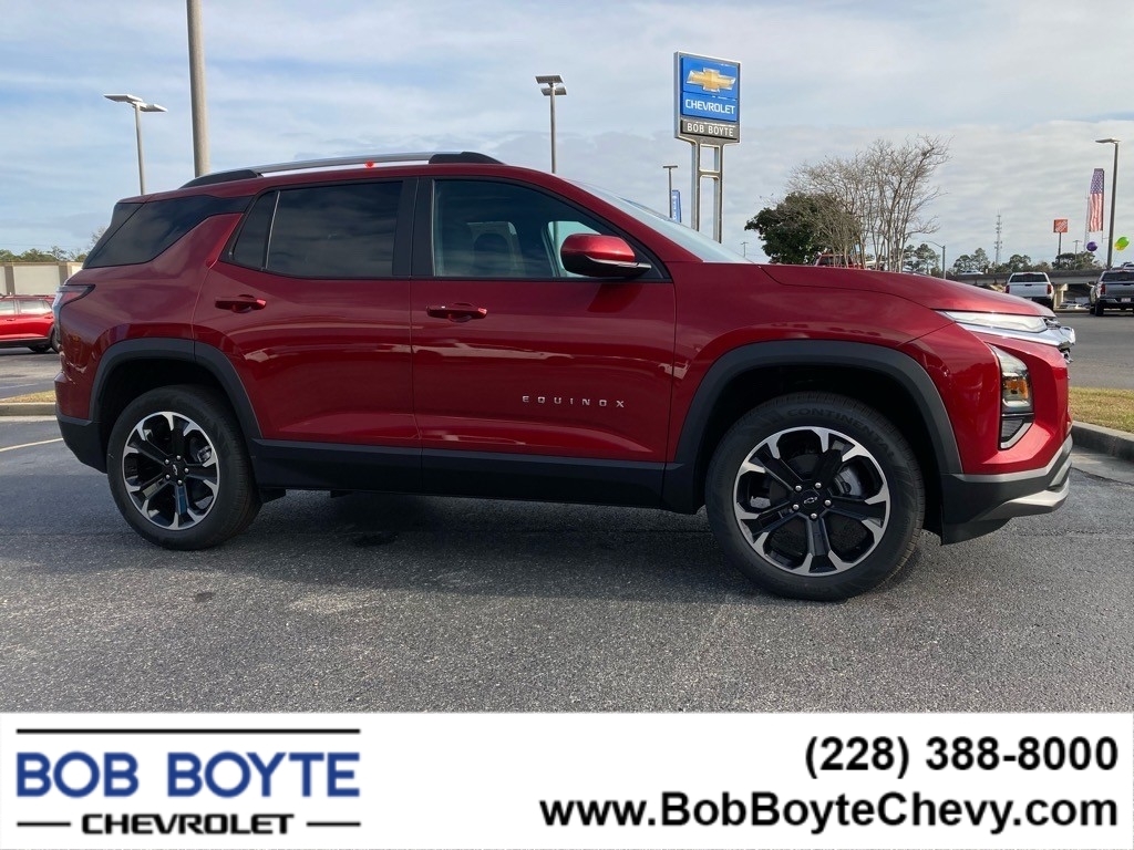 2025 Chevrolet Equinox Radiant Red Tintcoat LT 1.5L DOHC CVT FWD 4D Sport Utility Bring Us All Offers On This Vehicle, Financing is available for everyone, Chevrolet Dealer Serving Gulfport-Biloxi, 2-Way Power Driver Lumbar Control Seat Adjuster, 6 Speakers, AM/FM radio: SiriusXM, AutoSense Hands-Free Power Programmable Liftgate, Brake assist, Cabin Humidity & Windshield Sensor, Convenience Package II, Driver 8-Way Power Seat Adjuster, Dual-Zone Automatic Climate Control, Electronic Stability Control, Evotex Seat Trim, Heated Wiper Park, Illuminated entry, Intermittent Front Rain-Sensing Wipers, Navigation System, Overhead Sunglass Storage, Panic alarm, Power steering, Power windows, Premium audio system: Chevrolet Infotainment 3, Programmable Universal Home Remote, Radio data system, Radio: 11.3Diagonal Advanced Color LCD Display, Remote keyless entry, Security system, SiriusXM, Steering wheel mounted audio controls, Wheels: 17Grazen Metallic Machined-Face Aluminum, Wireless Charging for Devices. 26/28 City/Highway MPG Bob Boyte Chevrolet is a large Metro Gulfport-Biloxi MS New Car Super Store serving residents of Gulfport, DIberville, Ocean Springs, St Martin, Gulf Hills, Gautier, Pascagoula, Long Beach, Kiln, Bay St Louis, Waveland, Diamondhead and the Mississippi Gulf Coast. Bob Boyte also serves Gulf Coast Residents in Grand Bay, Bayou La Batre, Theodore and Mobile AL. As well as our friends and neighbors in Slidell, Covington and Mandeville, LA. Call Bob Boyte Chevrolet today at 228-2274078 for more information. Buy with confidence. Our Auto Finance Center Staff works with all credit types from good to bad, including High Risk Credit, Low Credit and even No Credit. Family-owned and locally operated. Get Pre-Approved at: https://www.bobboytechevy.com/get-pre-approved.html.