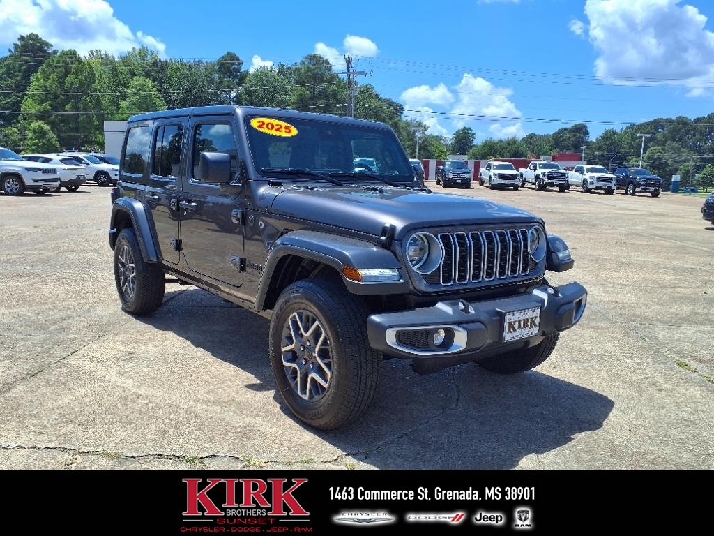 SummaryOur experienced Kirk Brothers CDJR of Sunset team is excited to assist you in your next vehicle purchase. Welcome to the best source for online deals. At Kirk Brothers CDJR of Sunset we understand that delivering top quality service is the only way to earn business. We promise to make your next car buying experience efficient and relaxed. Kirk Brothers CDJR of Sunset mission is to ensure all our customers have a positive auto buying experience and are completely satisfied with their new vehicle.Vehicle DetailsExperience the epitome of rugged elegance with the 2025 Jeep Wrangler Sahara. This iconic SUV is engineered for those who refuse to compromise on adventure or style. Equipped with a robust 4WD system, the Jeep Wrangler Sahara is ready to tackle any terrain, from rocky trails to city streets, delivering unmatched versatility for all your journeys. Under the hood, the powerful V6, 3.6L engine offers exceptional performance, ensuring a smooth yet exhilarating ride. The automatic climate control system keeps the cabin comfortable, regardless of the weather outside, making every drive a pleasure. Designed with the modern driver in mind, this model comes with advanced connectivity features, including Hands-Free Bluetooth, Android Auto, and Apple CarPlay. These integrations allow you to stay connected and entertained, offering seamless access to your favorite apps, music, and navigation tools. The Off-Road Package enhances your vehicle's capability, providing additional tools and features to conquer challenging landscapes with confidence. The 2025 Jeep Wrangler Sahara merges classic design with cutting-edge technology, embodying the spirit of adventure while providing the comfort and connectivity todays drivers demand. Discover the perfect blend of tradition and innovation in this remarkable SUV.EquipmentThis mid-size suv offers Apple CarPlay for seamless connectivity. The Jeep Wrangler offers Android Auto for seamless smartphone integration. This unit offers Automatic Climate Control for personalized comfort. Keep your hands warm all winter with a heated steering wheel in it . This vehicles Forward Collision Warning feature alerts drivers to potential front-end collisions. See whats behind you with the back up camera on this Jeep Wrangler. An off-road package is equipped on the Jeep Wrangler. This mid-size suv has automated speed control that adjusts to maintain a safe following distance, enhancing