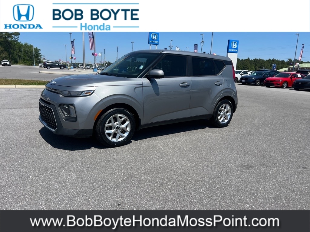 2022 Kia Soul LX Steel Gray 4D Hatchback FWD 2.0L I4 DOHC CVT Bring Us All Offers On This Vehicle, Never A Rental, Local Trade, Used Car Dealer Pascagoula MS, Used Car Dealer Near Gulfport MS, 16x 6.5Alloy Wheels, 6 Speakers, Blind Spot Collision Warning, Brake assist, Driver Attention Warning, Electronic Stability Control, Exterior Parking Camera Rear, Forward Collision Avoidance Assist, Fully automatic headlights, Illuminated entry, Lane Change Assist, Lane Keeping Assist, Panic alarm, Radio: AM/FM/MP3 Audio System, Rear Cross-Traffic Collision Avoidance Assist, Remote keyless entry, Speed control, Steering wheel mounted audio controls, Technology Package, Woven & Tricot Cloth Seat Trim. This vehicle has been through an extensive multi-point inspection by an ASE Certified Technician. All necessary services have been done for the appropriate mileage interval as deemed necessary. We have also reconditioned this vehicle inside and out to provide you with as near a new car experience as can be expected from a vehicle of this year and mileage. Buy with confidence. Family-owned and locally operated. Get Pre-Approved at https://www.bobboytehondamosspoint.com/get-pre-qualified.html Free Vehicle History report. Large Mississippi Gulf Coast Used Car Super Store serving residents of Pascagoula, Biloxi, Gulfport, DIberville, MS, as well as Mobile, AL and the entire Gulf Coast. Call Bob Boyte Honda Moss Point today at 228-202-0200. 29/35 City/Highway MPG