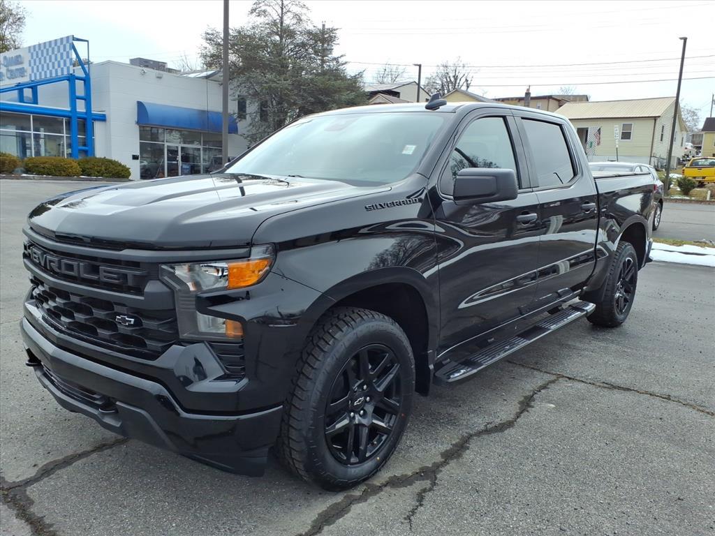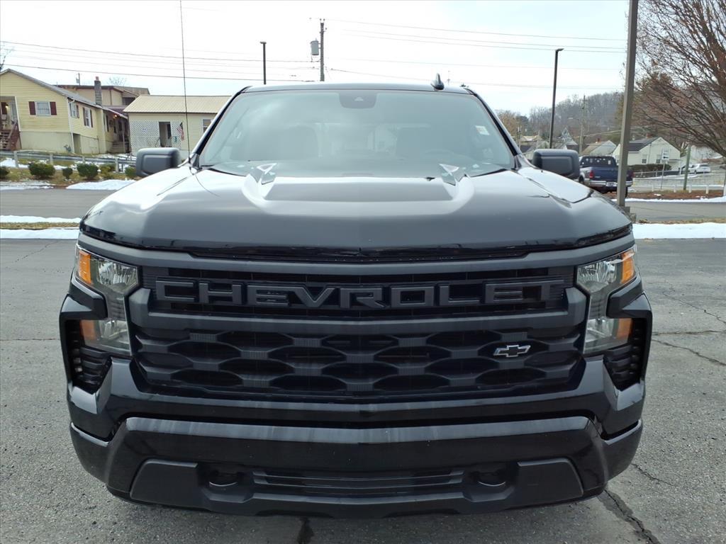 Black 2023 Chevrolet Silverado 1500 Custom 4WD 8-Speed Automatic 2.7L Turbo 8-Speed Automatic, 4WD, Black Cloth, 10-Way Power Driver Seat w/Lumbar, 120-Volt Bed Mounted Power Outlet, 120-Volt Instrument Panel Power Outlet, 3.5 Monochromatic Display Driver Info Center, 6 Rectangular Black Tubular Assist Steps (LPO), Black Name Plates (LPO), Bluetooth For Phone, Chevrolet Connected Access Capable, Color-Keyed Carpeting Floor Covering, Compass, Custom Convenience Package, Custom Value Package, Dark Essentials Package (LPO), Deep-Tinted Glass, Dual Rear USB Ports (Charge Only), Electric Rear-Window Defogger, Electrical Steering Column Lock, Electronic Cruise Control, EZ Lift Power Lock & Release Tailgate, Front Frame-Mounted Black Recovery Hooks, Front Rubberized Vinyl Floor Mats, HD Rear Vision Camera, High Capacity Suspension Package, Hitch Guidance, Integrated Trailer Brake Controller, LED Cargo Area Lighting, Manual Tilt Wheel Steering Column, OnStar & Chevrolet Connected Services Capable, Power Front Windows w/Driver Express Up/Down, Power Front Windows w/Passenger Express Down, Power Rear Windows w/Express Down, Preferred Equipment Group 1CX, Rear 60/40 Folding Bench Seat (Folds Up), Rear Rubberized-Vinyl Floor Mats, Remote Keyless Entry, Remote Vehicle Starter System, SiriusXM Radio, Standard Tailgate, Theft Deterrent System (Unauthorized Entry), Trailering Package, Wi-Fi Hot Spot Capable, Wireless Phone Projection.Recent Arrival!