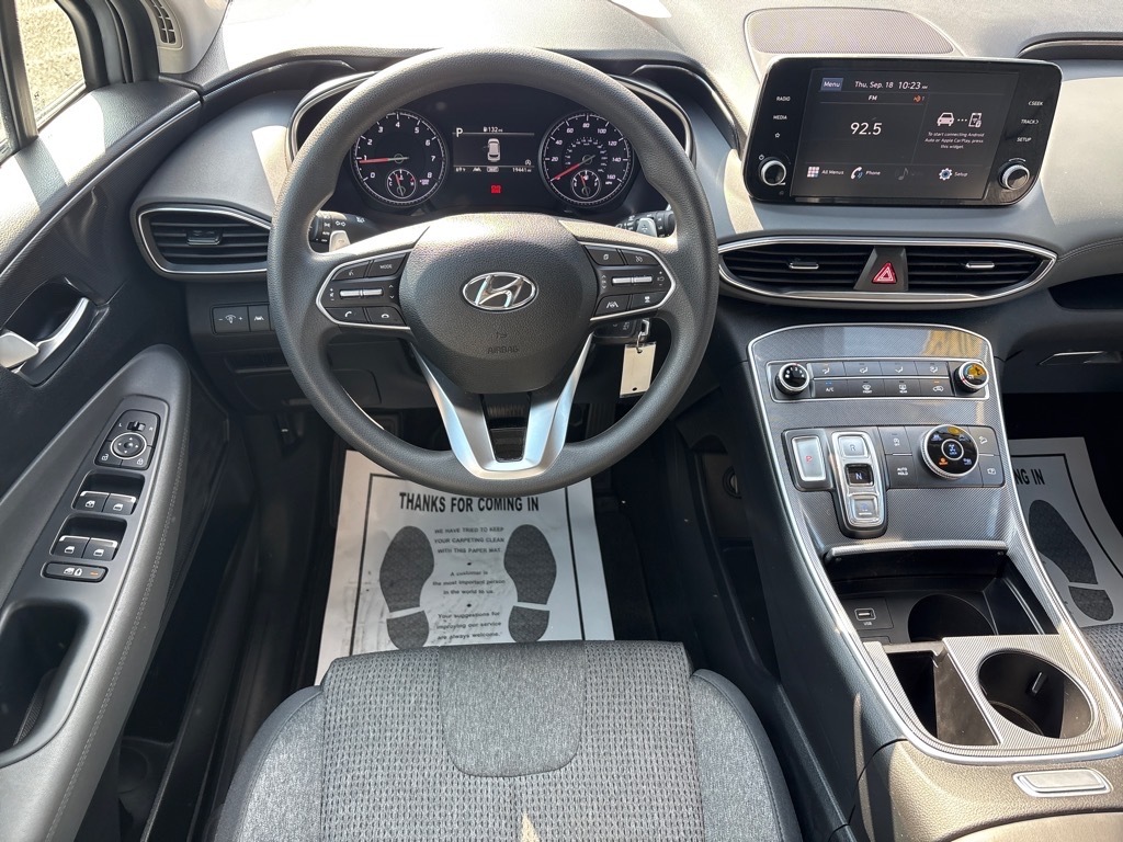 LOCAL TRADE, 2023 SANTA FE, 1 OWNER CLEAN CARFAX, THIS SANTA FE ALL WHEEL DRIVE LOOKS LIKE IT JUST ROLLED OFF THE SHOW ROOM FLOOR, IT NEEDS NOTHING BUT A NEW OWNER Welcome to your online shopping experience with Mahon Motors, formerly Egolf Motors - same great people, just a new name. Were family-owned and here to make your car buying experience simple, transparent, and fast. Shop our hand-picked selection of quality pre-owned vehicles, find your perfect match, and shop smart, ride happy. Check out all these great options Option Group 01, 18x 7.5J Alloy Wheels, 4-Wheel Disc Brakes, 6 Speakers, ABS brakes, Air Conditioning, Alloy wheels, AM/FM radio, Apple CarPlay & Android Auto, Auto High-beam Headlights, Axle Ratio: 4.081, Brake assist, Bumper Applique, Bumpers: body-color, Cargo Cover/Screen, Carpeted Floor Mats, Delay-off headlights, Driver door bin, Driver vanity mirror, Dual front impact airbags, Dual front side impact airbags, Electronic Stability Control, Exterior Parking Camera Rear, Four wheel independent suspension, Front anti-roll bar, Front Bucket Seats, Front Center Armrest, Front reading lights, Fully automatic headlights, Illuminated entry, Low tire pressure warning, Occupant sensing airbag, Outside temperature display, Overhead airbag, Overhead console, Panic alarm, Passenger door bin, Passenger vanity mirror, Power door mirrors, Power steering, Power windows, Radio: AM/FM Display Audio, Rear anti-roll bar, Rear seat center armrest, Rear window defroster, Rear window wiper, Remote keyless entry, Security system, Speed control, Speed-sensing steering, Split folding rear seat, Spoiler, Stain-Resistant Cloth Seat Trim, Steering wheel mounted audio controls, Tachometer, Telescoping steering wheel, Tilt steering wheel, Traction control, Trip computer, and Variably intermittent wipers. Shimmering Silver Pearl AWD 8-Speed Automatic with SHIFTRONIC 2.5L I4 Odometer is 18567 miles below market average!