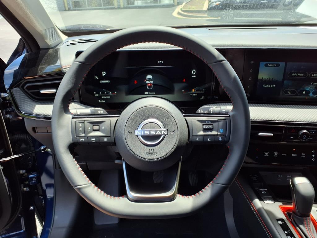 Welcome to Carolina Nissan. The 2025 Nissan Kicks SR FWD is a vehicle that is sure to turn heads. This crossover has a sport/deep blue exterior and a 2.0 liter 4 cylinder engine with fuel injection. It has a fuel economy of 28 mpg in the city and 35 mpg on the highway, making it an efficient choice for your daily commute. It also has a crash test rating of 4 out of 5 stars, making it safe for all passengers. The vehicle also comes with a number of features such as touch screen display, Bluetooth audio connection, blind spot sensor, hill start assist, center console with faux leather trim, Bluetooth phone connectivity, and leather seats. With its combination of style, performance, and safety, the 2025 Nissan Kicks SR FWD is sure to be a great choice for anyone looking for a reliable car. Contact Details: Carolina Nissan, 1329 Huffman Mill Rd, Burlington, NC, 27215, sales@carolinanissan.com, (336) 584-0201. Carolina Nissan is family owned and operated. The founder Charles Crenshaw, born in Kings Mountain and raised in Alamance county North Carolina and a sergeant in the Marine Corps, began his career in 1959 working for Atwater Ford in Burlington. He worked for the Atwaters until 1977, at that point he went into business for himself, starting a Datsun dealership in Sanford, NC. In the winter of 1982 he had the opportunity to return to his home in Burlington, NC and he and Terry Crenshaw have been o