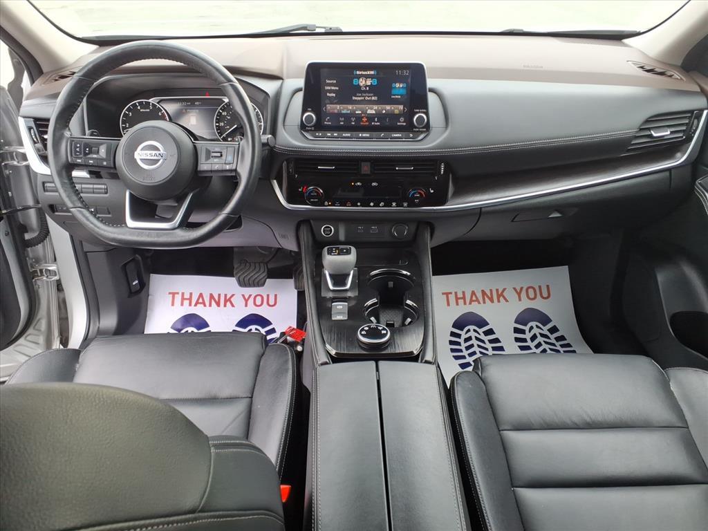 CARFAX One-Owner.Elevate your everyday adventures in this sophisticated and versatile 2021 Nissan Rogue SL AWD! Finished in a brilliant Brilliant Silver Metallic with a premium Charcoal leather-appointed interior, this modern SUV is designed for those who demand both style and substance. With only 51,696 miles and a CARFAX One-Owner history, this Rogue is a standout choice.Premium Interior & Luxury: Step into a driver-centric cabin featuring Heated Front Bucket Seats, a Heated Leather-Wrapped Steering Wheel, and a Power Moonroof. The Dual-Zone Automatic Climate Control and Rear Air Conditioning ensure everyone stays comfortable, while the Power Liftgate makes loading cargo effortless. Premium touches like Memory Seats and an Auto-dimming Rear-View Mirror add to the executive feel.Advanced Technology & Safety: Drive with total confidence thanks to Nissan's ProPILOT Assist and a full suite of safety features. This Rogue is equipped with Auto High-beam Headlights, Blind Spot Warning, Rear Parking Sensors, and an Exterior Parking Camera Rear. Stay seamlessly connected with NissanConnect featuring Apple CarPlay and Android Auto integration displayed on a crisp touchscreen.Confident Performance: Powered by a responsive 2.5L I4 DOHC engine and a smooth CVT with Xtronic, this Rogue delivers a refined and efficient ride. The advanced AWD system and Four-wheel Independent Suspension provide confident handling in all weather conditions. You'll enjoy impressive fuel economy with an EPA-estimated 25 MPG city and 32 MPG highway.Exceptional Value: This vehicle is priced below market average and has been meticulously maintained. It features stylish 19-inch Aluminum Alloy Wheels and a sleek Roof Rack for all your gear.This 2021 Brilliant Silver Metallic Nissan Rogue SL AWD is well equipped and includes these features and benefits:19 Aluminum Alloy Wheels, 4-Wheel Disc Brakes, 5.604 Axle Ratio, 6 Speakers, ABS brakes, Air Conditioning, Alloy wheels, AM/FM Radio, AM/FM radio, Auto High-beam Headlights, Auto-dimming Rear-View mirror, Automatic temperature control, Black Splash Guards (Set of 4), Brake assist, Bumpers: body-color, Chrome Rear Bumper Protector, Delay-off headlights, Driver door bin, Driver vanity mirror, Dual front impact airbags, Dual front side impact airbags, Electronic Stability Control, Emergency communication system: NissanConnect Services, Exterior Parking Camera Rear, First Aid Kit, Floor Mats w/2-