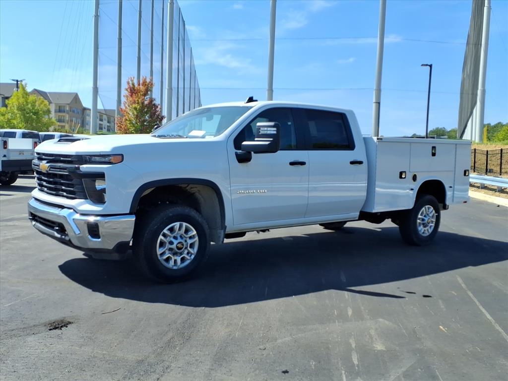 2025 Chevrolet Silverado 2500HD Work Truck Summit White 6.6L V8 RWD 10-Speed Automatic 8FT Knapheide Service Body Installed Commercial Upfits: Manufacturer: Knapheide Body Type: Service Truck Body Line: Steel Service Body Body Model: 696 Body Material: Steel Body Height: 40Body Width: 78Body Length: 97.25Body Inside Width: 49Bumper Material: Galva-Grip Bumper Width: 78Compartment Description: (2) Adjustable Divider Shelves and Dividers, in The Street and Curb Side Front Vertical Compartments, (1) Adjustable Divider Shelf and Dividers in The Street and Curb Side Full Height Rear Vertical Compartments, (1) Adjustable Divider Shelf and Divide Compartment Depth: 14.5Lighting Type: LED Lighting Description: Surface Mount S/T/T and B/U Light Lighting Location: Exterior Tailgate Type: Slam Lock Camera Description: Factory Backup Camera Hitch Type: Receiver Hitch Description: Receiver Tube with Hitch Insert Hitch Class: V Hitch Size: 2.5Hitch Capacity: 16K Trailer Plug Type: 7-Way Steel Service Body Features: With a rugged steel construction and external storage for your tools and equipment, the Service Body is a key component in your day-to-day productivity. The external compartments offer protection from outside elements and allow technicians to access their equipment without having to climb into the truck bed. Staying organized both on and between job sites is important. Get maximum efficiency with a Knapheide Service Body. The 2025 Chevrolet Silverado 2500HD Work Truck is a RWD Crew Cab built for tough commercial demands. Equipped with a 6.6L V8, 10-speed automatic transmission, and 3.73 rear axle ratio, this platform offers strong, reliable performance for hauling and daily worksite use. This unit features an 8FT Knapheide Service Body, making it upfit ready and ideal for fleet operations. Inside, it includes Apple CarPlay / Android Auto, Bluetooth, Backup Camera, Remote Keyless Entry, Cruise Control, and a Touchscreen Radio. Additional work-focused options include the