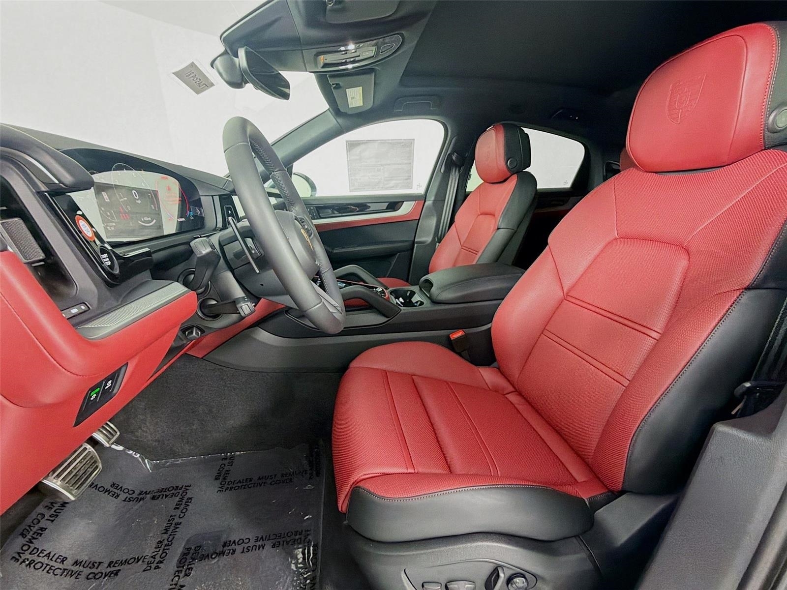 Dual front airbags, front seat mounted side impact airbags, rear outboard seat side-impact airbags, four-wheel disc brakes with anti-lock, Porsche stability management, anti-slip regulation, automatic brake differential, trailer stability management, roll-over sensor, and multi-collision braking. Cayenne S adds braking readiness function, brake assist, ParkAssist front/rear, Bluetooth® hands-free mobile phone connection, and Porsche Communication Management (PCM) with hard drive navigation. Cayenne Turbo adds LED headlamps with Porsche Dynamic Lighting System, fog lights, LED daytime running lights, automatic headlamps, remote central locking system, tire pressure monitoring system and four-door side-impact protection beams. Cayenne Turbo S adds Porsche torque vectoring plus, Porsche dynamic chassis control, tire sealing compound and electric compressor, and Porsche Ceramic Composite Brakes.