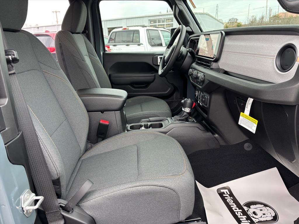 Anvil Clear Coat 2026 Jeep Wrangler Sport 4WD 8-Speed Automatic 2.0L I4 DOHC INFORMATION ABOUT THIS VEHICLE AND ITS FEATURES:. Quick Order Package 22B Sport, 12.3Touchscreen Display, 3.45 Overall Top Gear Ratio, 4-Wheel Disc Brakes, 4G LTE Wi-Fi Hot Spot, 8 Speakers, ABS brakes, Air Conditioning, AM/FM radio: SiriusXM with 360L, Apple CarPlay, Apple CarPlay/Android Auto, Aux Battery, Brake assist, Cloth Low-Back Bucket Seats, Compass, Connectivity - US/Canada, Delay-off headlights, Driver door bin, Driver vanity mirror, Dual front impact airbags, Dual front side impact airbags, Electronic Stability Control, For More Info, Call 800-643-2112, Front anti-roll bar, Front Bucket Seats, Front Center Armrest w/Storage, Front fog lights, Front reading lights, Google Android Auto, Illuminated entry, Integrated Center Stack Radio, Integrated roll-over protection, Low tire pressure warning, Myflexcare Service Plan, Non-Lock Fuel Cap Without Discriminator, Normal Duty Suspension, Occupant sensing airbag, Outside temperature display, Overhead airbag, Panic alarm, ParkView Rear Back-Up Camera, Passenger door bin, Passenger vanity mirror, Power steering, Power windows, Radio data system, Radio: Uconnect 5 with 12.3Display, Rear anti-roll bar, Rear reading lights, Remote keyless entry, SiriusXM Radio Service, SiriusXM with 360L, Speed control, Steering wheel mounted audio controls, Stop-Start Dual Battery System, Tachometer, Telescoping steering wheel, Tilt steering wheel, Traction control, Trip computer, Variably intermittent wipers, and Wheels: 17x 7.5Black Steel Styled.