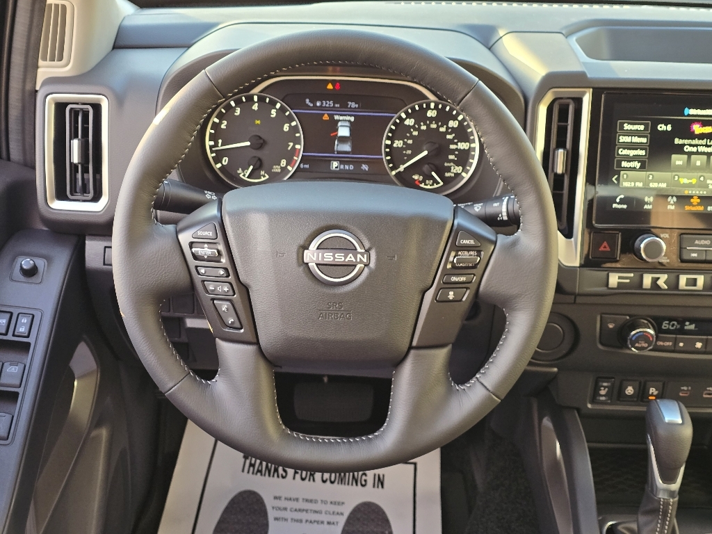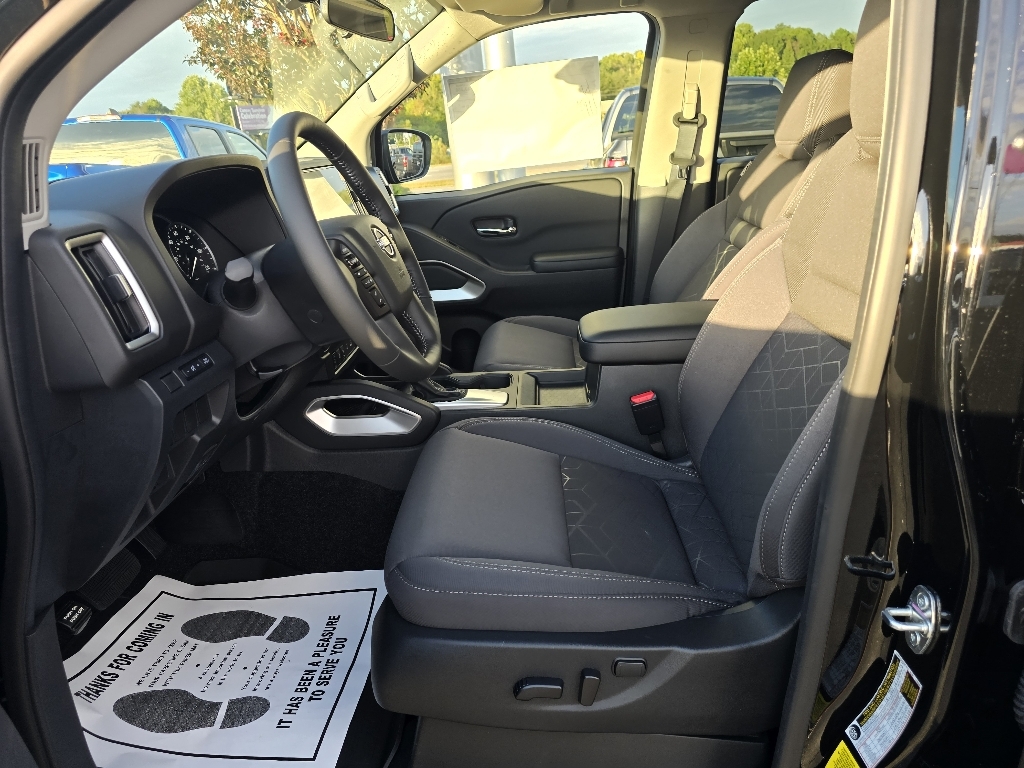 Super Black 2026 Nissan Frontier SV RWD 9-Speed Automatic with Overdrive 3.8L DI DOHC 24V V6 INFORMATION ABOUT THIS VEHICLE AND ITS FEATURES:. All-Weather Content Package (Heated Front Seats, Heated Leather Steering Wheel, HVAC - Dual-Zone Front Auto A/C, and Remote Engine Starter), Tow Package, 17Alloy Wheels, 17Machined & Painted Alloy Wheels, 3.692 Axle Ratio, 4-Wheel Disc Brakes, 6 Speakers, ABS brakes, Air Conditioning, All Season Floor Mats, Alloy wheels, AM/FM radio: SiriusXM, Anti-whiplash front head restraints, Auto High-beam Headlights, Blind Spot Warning, Brake assist, Bumpers: body-color, Delay-off headlights, Driver door bin, Driver vanity mirror, Drop-In Bed Liner & Bumper Step, Dual front impact airbags, Dual front side impact airbags, Electronic Stability Control, Emergency communication system, Front anti-roll bar, Front Bucket Seats, Front Center Armrest, Front reading lights, Front wheel independent suspension, Fully automatic headlights, Illuminated entry, Knee airbag, Low tire pressure warning, Occupant sensing airbag, Overhead airbag, Overhead console, Panic alarm, Passenger door bin, Passenger vanity mirror, Power door mirrors, Power driver seat, Power steering, Power windows, Premium Cloth Seat Trim, Radio data system, Radio: SXM/AM/FM/AUX/USB Audio System, Rear anti-roll bar, Rear seat center armrest, Rear side impact airbag, Rear step bumper, Remote keyless entry, Security system, Speed control, Speed-sensing steering, Splash Guards, Split folding rear seat, Steering wheel mounted audio controls, Tachometer, Telescoping steering wheel, Tilt steering wheel, Tow/Haul Mode Switch, Traction control, Trip computer, Variably intermittent wipers, Voltmeter, and Wireless Apple CarPlay/Wireless Android Auto. Price includes: $2500 - Nissan Customer Cash. Exp. 03/02/2026