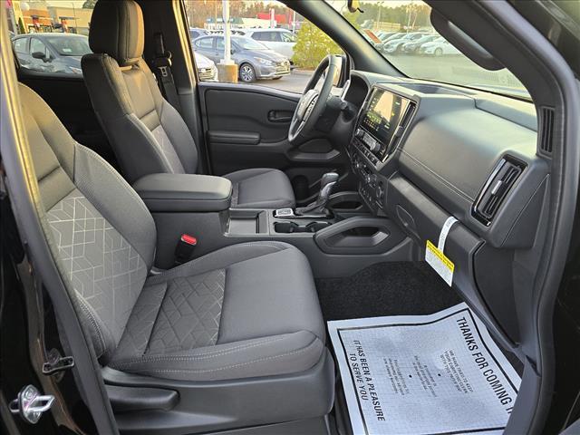 Super Black 2026 Nissan Frontier SV 4WD 9-Speed Automatic with Overdrive 3.8L DI DOHC 24V V6 INFORMATION ABOUT THIS VEHICLE AND ITS FEATURES:, 4WD. All-Weather Content Package (Heated Front Seats, Heated Leather Steering Wheel, HVAC - Dual-Zone Front Auto A/C, and Remote Engine Starter), Dark Armor Package (Dark FRONTIER Tailgate Lettering, Dark Grill Surround/Mesh/Inner Fascia, Dark Mirror Caps, and Wheels: 17Dark), Tow Package, 4WD, 17Alloy Wheels, 3.692 Axle Ratio, 4-Wheel Disc Brakes, 6 Speakers, ABS brakes, Air Conditioning, All Season Floor Mats, Alloy wheels, AM/FM radio: SiriusXM, Anti-whiplash front head restraints, Auto High-beam Headlights, Blind Spot Warning, Brake assist, Bumpers: body-color, Delay-off headlights, Driver door bin, Driver vanity mirror, Drop-In Bed Liner & Bumper Step, Dual front impact airbags, Dual front side impact airbags, Electronic Stability Control, Electronic Tailgate Lock, Emergency communication system, Front anti-roll bar, Front Bucket Seats, Front Center Armrest, Front reading lights, Front wheel independent suspension, Fully automatic headlights, Illuminated entry, Knee airbag, Low tire pressure warning, Occupant sensing airbag, Overhead airbag, Overhead console, Panic alarm, Passenger door bin, Passenger vanity mirror, Power door mirrors, Power driver seat, Power steering, Power windows, Premium Cloth Seat Trim, Radio data system, Radio: SXM/AM/FM/AUX/USB Audio System, Rear anti-roll bar, Rear seat center armrest, Rear side impact airbag, Rear step bumper, Remote keyless entry, Security system, Speed control, Speed-sensing steering, Splash Guards, Split folding rear seat, Steering wheel mounted audio controls, Tachometer, Telescoping steering wheel, Tilt steering wheel, Tow/Haul Mode Switch, Traction control, Trip computer, Variably intermittent wipers, Voltmeter, and Wireless Apple CarPlay/Wireless Android Auto. Price includes: $2500 - Nissan Customer Cash. Exp. 01/05/2026