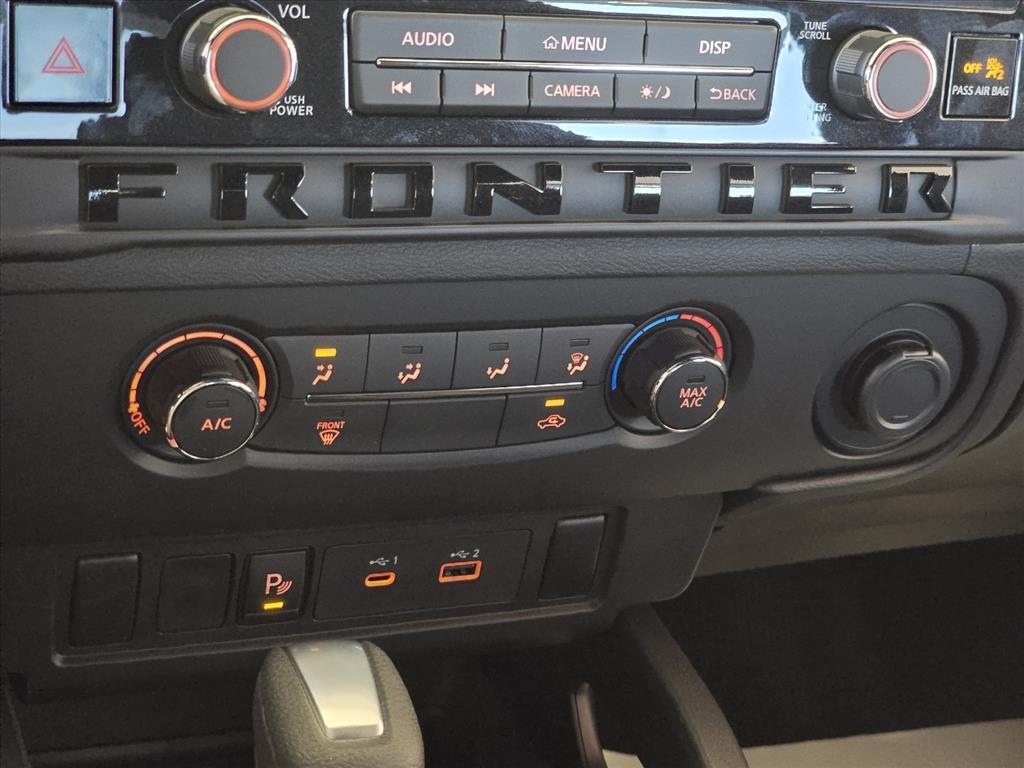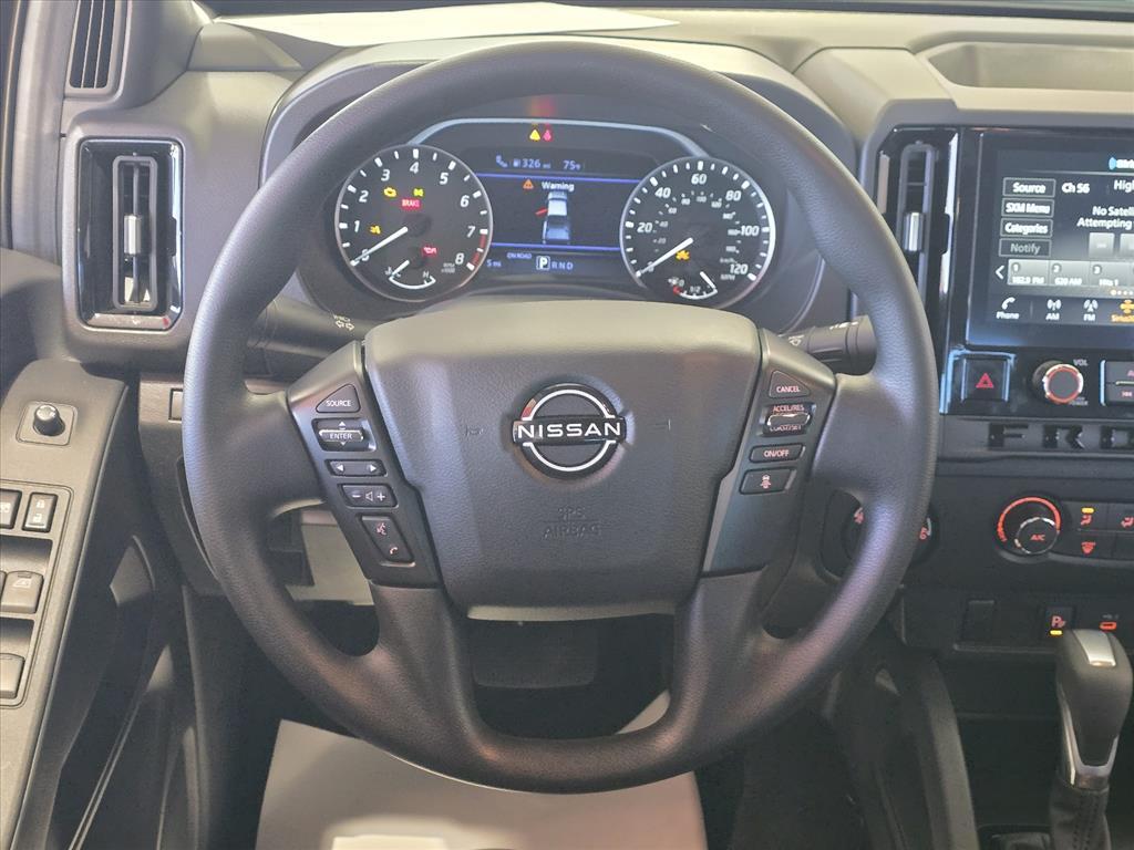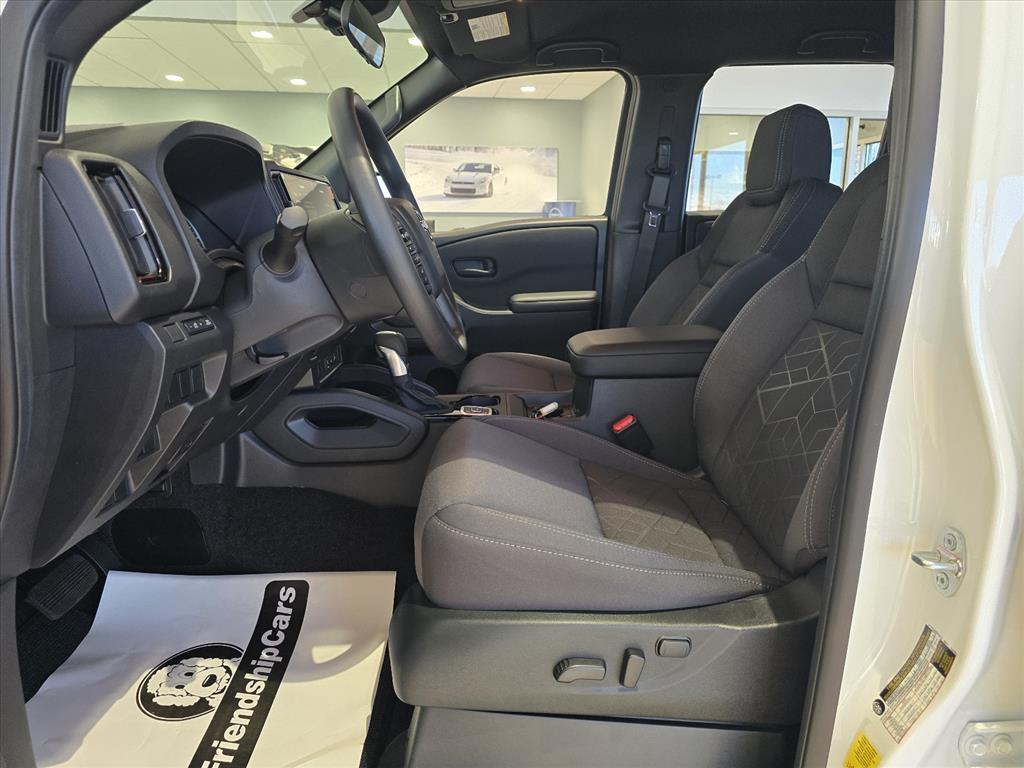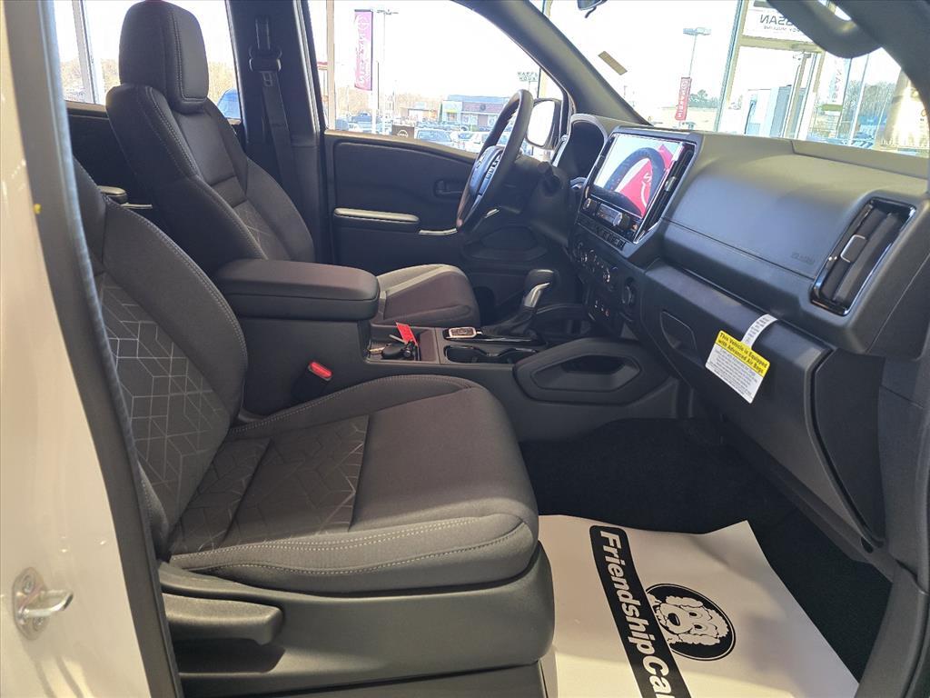 Glacier White 2026 Nissan Frontier SV 4WD 9-Speed Automatic with Overdrive 3.8L DI DOHC 24V V6 INFORMATION ABOUT THIS VEHICLE AND ITS FEATURES:, 4WD. Dark Armor Package (Dark FRONTIER Tailgate Lettering, Dark Grill Surround/Mesh/Inner Fascia, Dark Mirror Caps, and Wheels: 17Dark), Tow Package, 4WD, 17Alloy Wheels, 3.692 Axle Ratio, 4-Wheel Disc Brakes, 6 Speakers, ABS brakes, Air Conditioning, Alloy wheels, AM/FM radio: SiriusXM, Anti-whiplash front head restraints, Auto High-beam Headlights, Blind Spot Warning, Brake assist, Bumpers: body-color, Carpeted Floor Mats, Delay-off headlights, Driver door bin, Driver vanity mirror, Drop-In Bed Liner & Bumper Step, Dual front impact airbags, Dual front side impact airbags, Electronic Stability Control, Emergency communication system, Front anti-roll bar, Front Bucket Seats, Front Center Armrest, Front reading lights, Front wheel independent suspension, Fully automatic headlights, Illuminated entry, Knee airbag, Low tire pressure warning, Occupant sensing airbag, Overhead airbag, Overhead console, Panic alarm, Passenger door bin, Passenger vanity mirror, Power door mirrors, Power driver seat, Power steering, Power windows, Premium Cloth Seat Trim, Radio data system, Radio: SXM/AM/FM/AUX/USB Audio System, Rear anti-roll bar, Rear seat center armrest, Rear side impact airbag, Rear step bumper, Remote Engine Start, Remote keyless entry, Security system, Speed control, Speed-sensing steering, Splash Guards, Split folding rear seat, Steering wheel mounted audio controls, Tachometer, Telescoping steering wheel, Tilt steering wheel, Tow/Haul Mode Switch, Traction control, Trip computer, Variably intermittent wipers, Voltmeter, and Wireless Apple CarPlay/Wireless Android Auto. Price includes: $2500 - Nissan Customer Cash. Exp. 01/05/2026